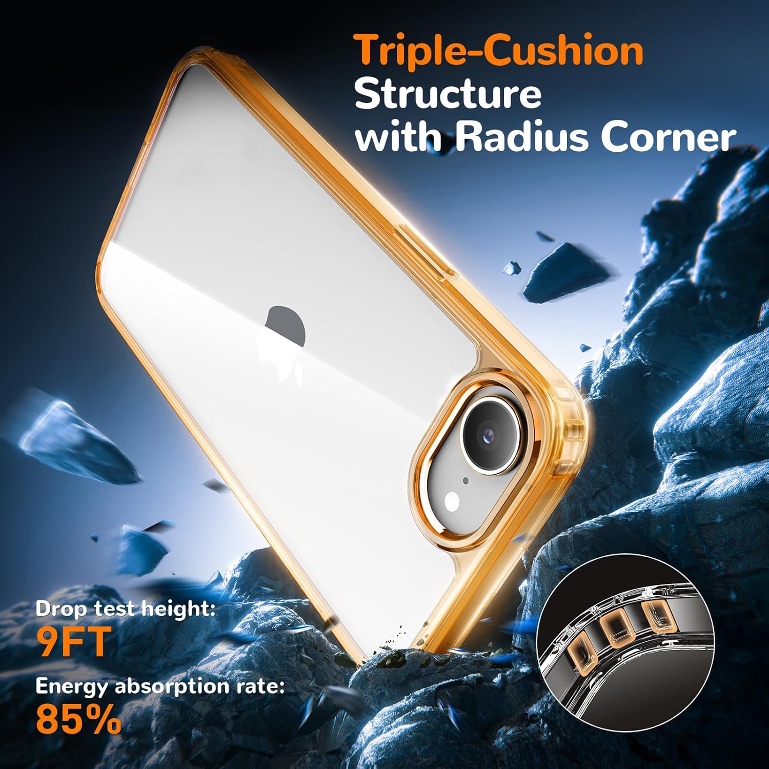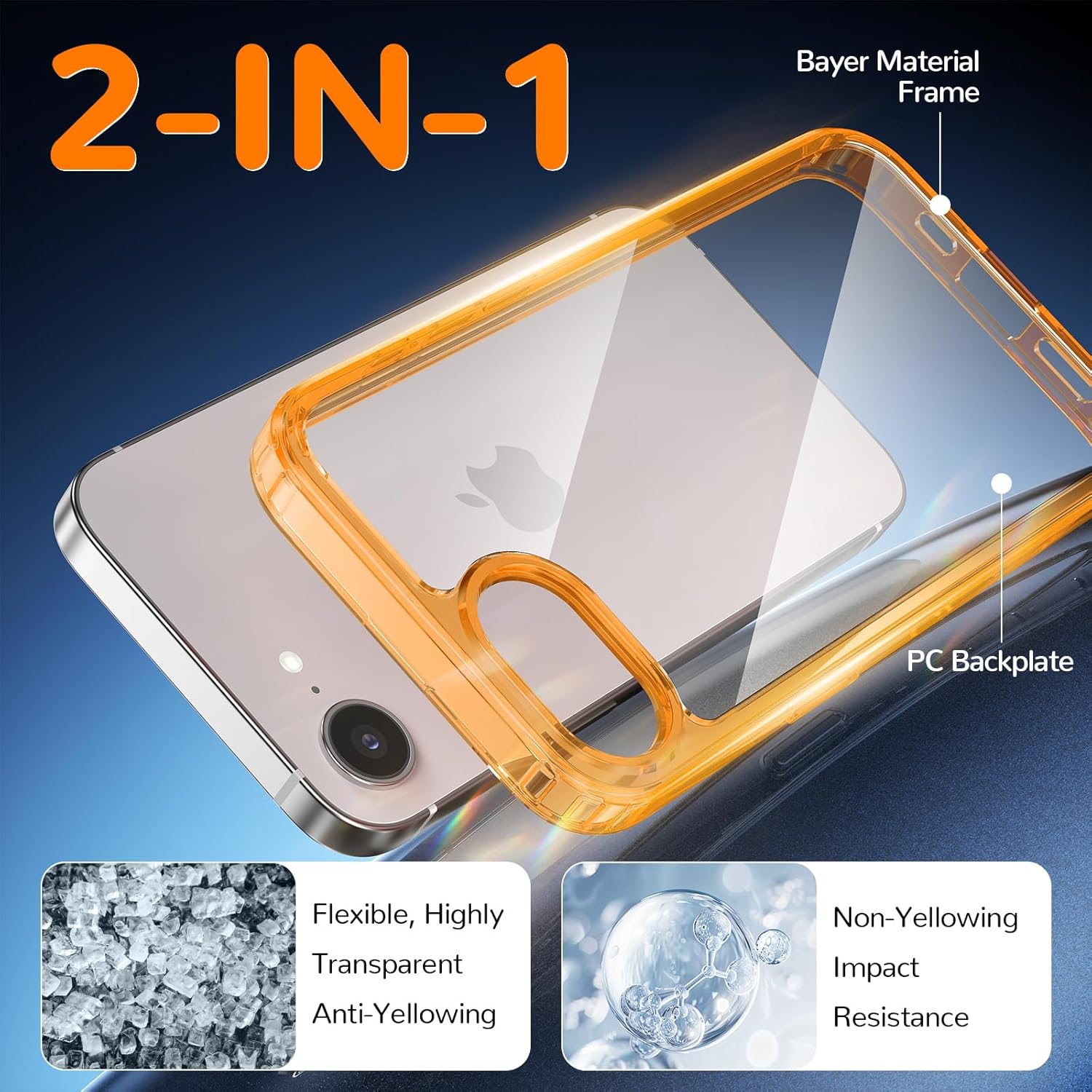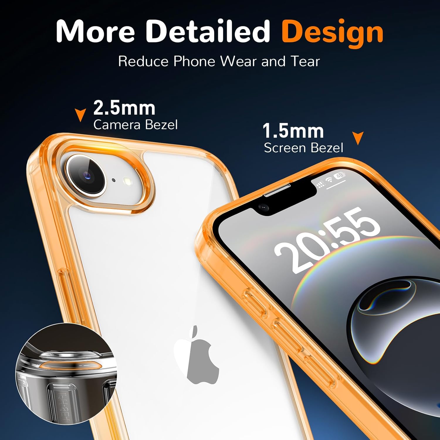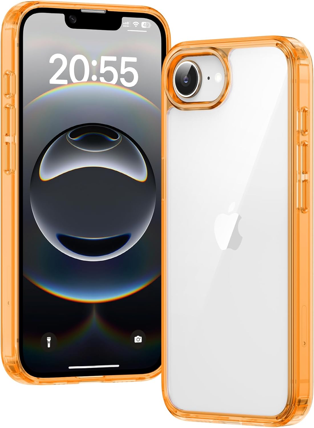 Калъф за iPhone 16E, първокласен прозрачен калъф за мобилен телефон, мек TPU прозрачен, устойчив на надраскване, удароустойчив защитен калъф (оранжев)