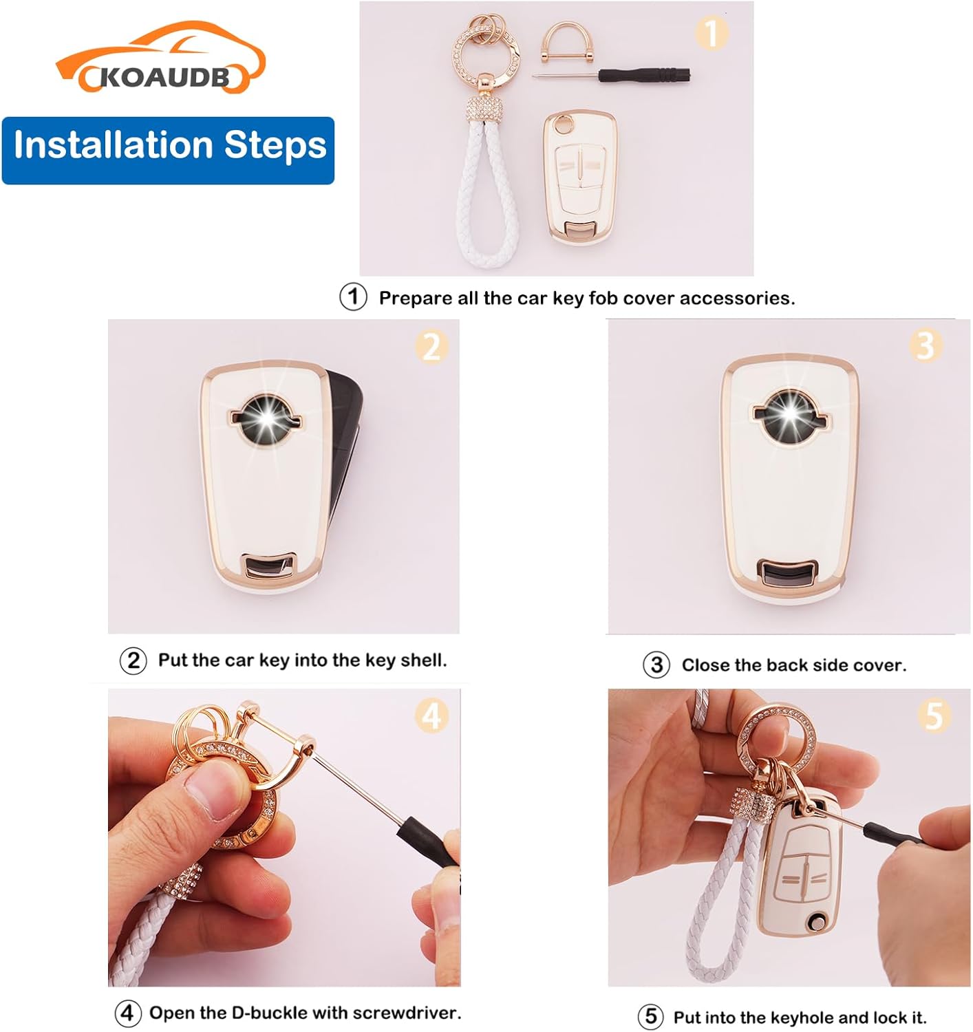 • 【ОПАКОВКА】Този комплект калъфи за автомобилни ключове се предлага с TPU калъф за ключове за кола (ключодържателят не е включен), 1 катарама против загубване, 1 лъскав ключодържател за кола, 3 малки ключодържателя и отвертка. Той може да придаде луксозен и готин вид на ключовете на колата ви, което го прави чудесен подарък за вашите приятели или семейство за Коледа, Деня на благодарността или рождени дни.