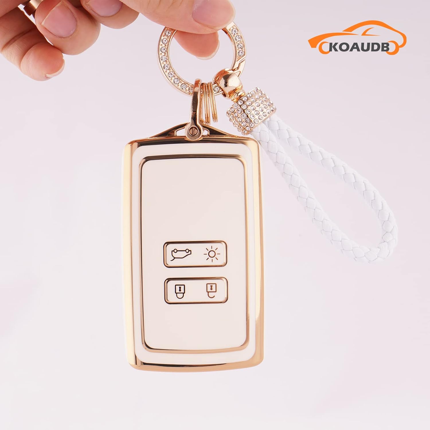 Калъф за ключ за кола, подходящ за Clio, Megane, Koleos, Kadjar, Talisman, Captur, Espace, Dacia, Duster, 4 бутона, TPU калъф за ключ с ключодържател (заден капак).