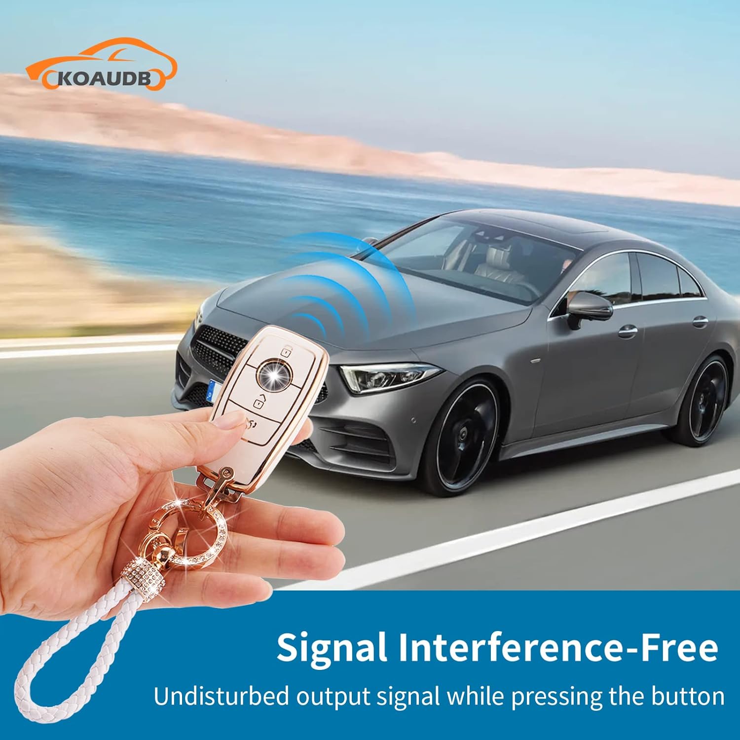 • 【БЕЗОПАСЕН МАТЕРИАЛ】 Нашият ключодържател е изработен от мек и тънък TPU с гладка повърхност, която е издръжлива, устойчива на надраскване, отблъскваща замърсявания и дъжд, за да защити напълно вашия ключодържател. Освен това, лъскавият ключодържател от цинкова сплав ви предпазва от загуба, когато го носите.