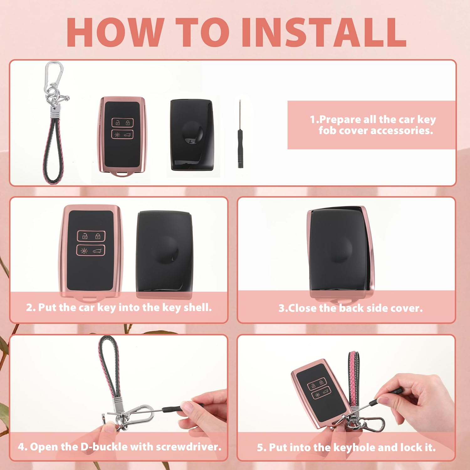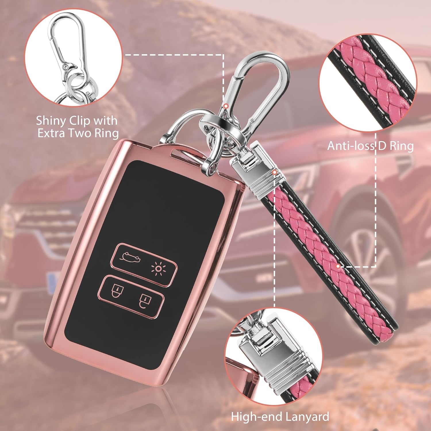 Калъфът за ключ за кола е съвместим с Renault Koleos Kadjar Talisman 2016+, Renault Captur Espace 5 Master Bus Clio Megane Scenic 4 Grand Scenic (IV/4), Zoe- Dacia Duster 2 (2018) и др. 4-бутонно дистанционно управление с интелигентен ключодържател.