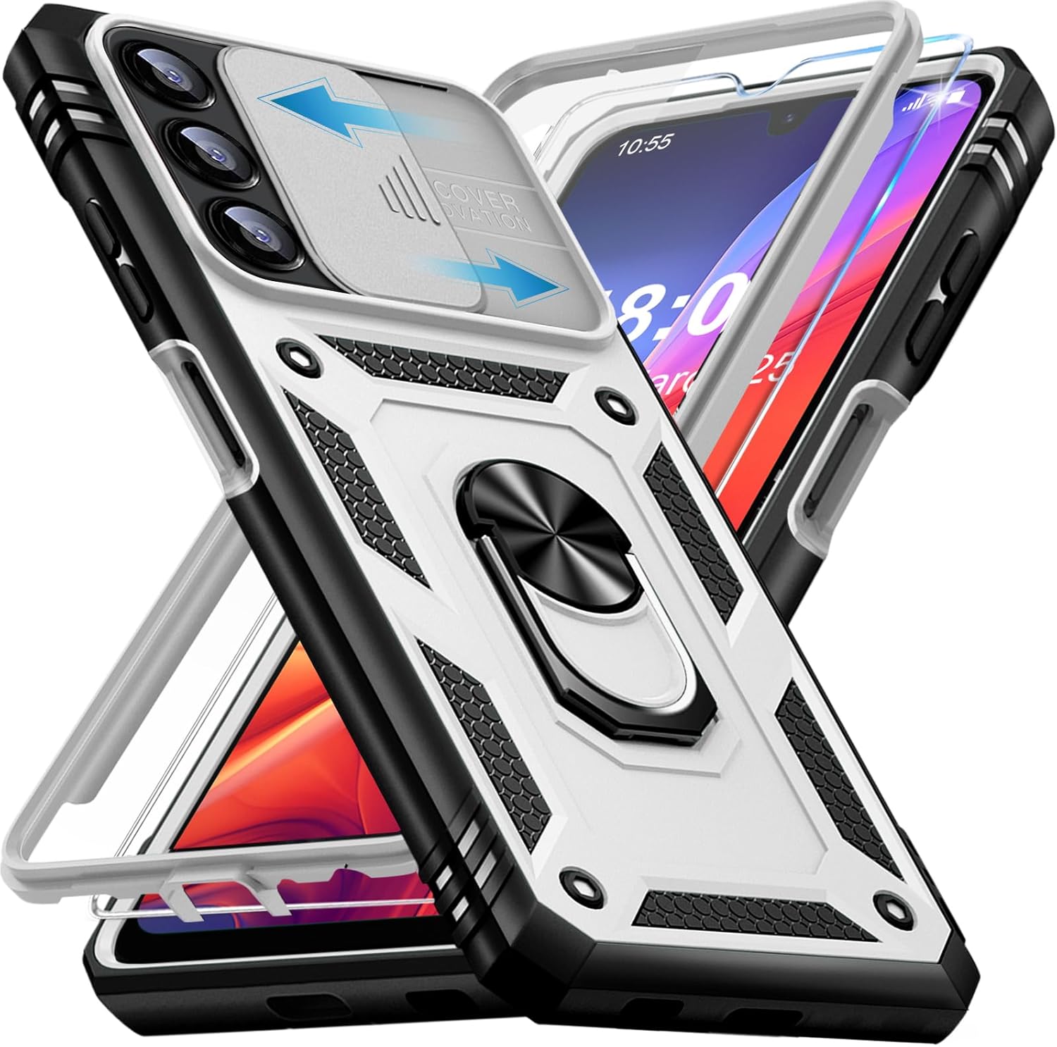 Калъф за мобилен телефон Giyer за Samsung Galaxy A13 4G с протектор за екрана, защитен калъф за Galaxy A13 4G със защита на камерата, въртящ се на 360° метален пръстен, стойка, удароустойчива броня за A13 4G 6.5 инча