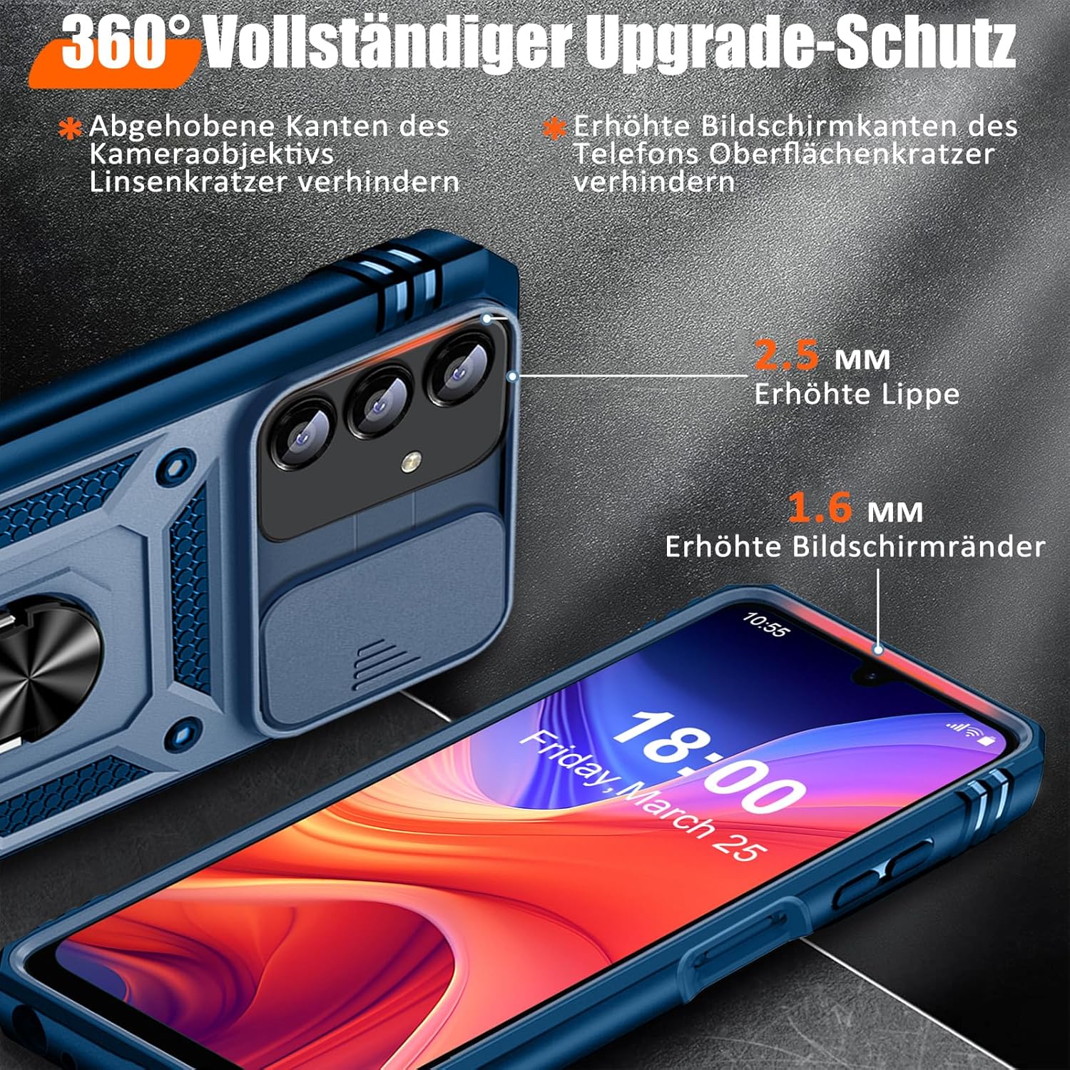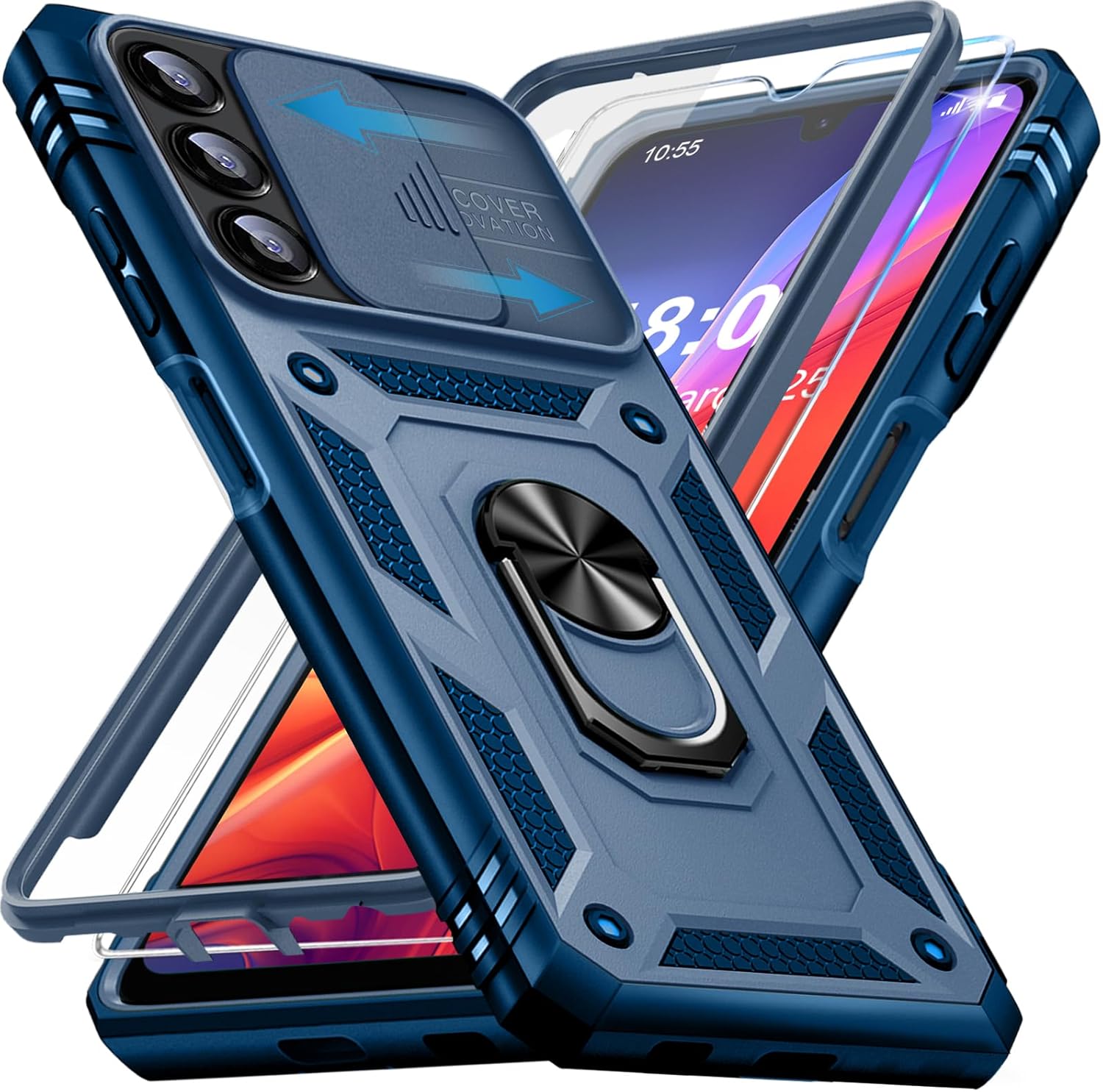 Калъф за мобилен телефон Giyer за Samsung Galaxy A13 4G с протектор за екрана, защитен калъф за Galaxy A13 4G със защита на камерата, въртящ се на 360° метален пръстен, стойка, удароустойчива броня за A13 4G 6.5 инча