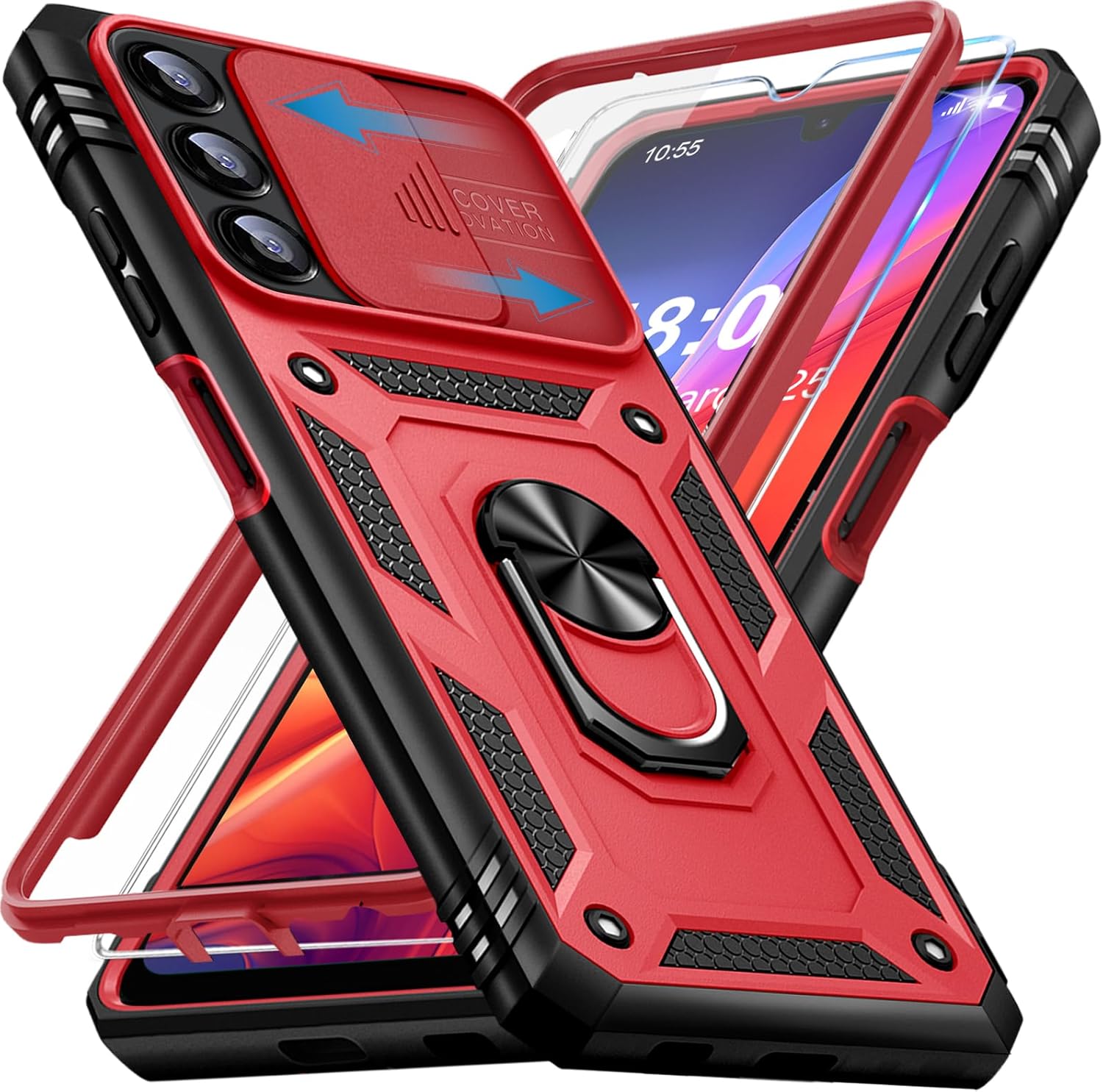 Калъф за мобилен телефон Giyer за Samsung Galaxy A13 5G с протектор за екрана, защитен калъф за Galaxy A13 5G със защита на камерата, въртящ се на 360° метален пръстен, удароустойчив, брониран, за A13 5G