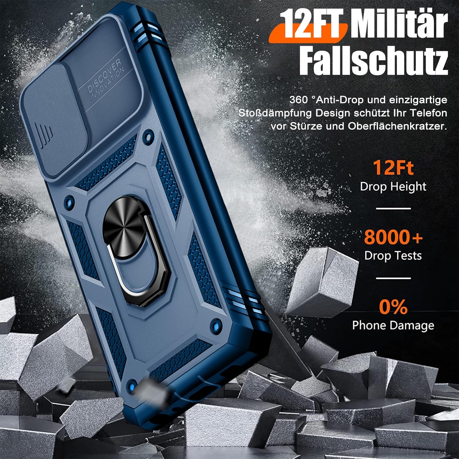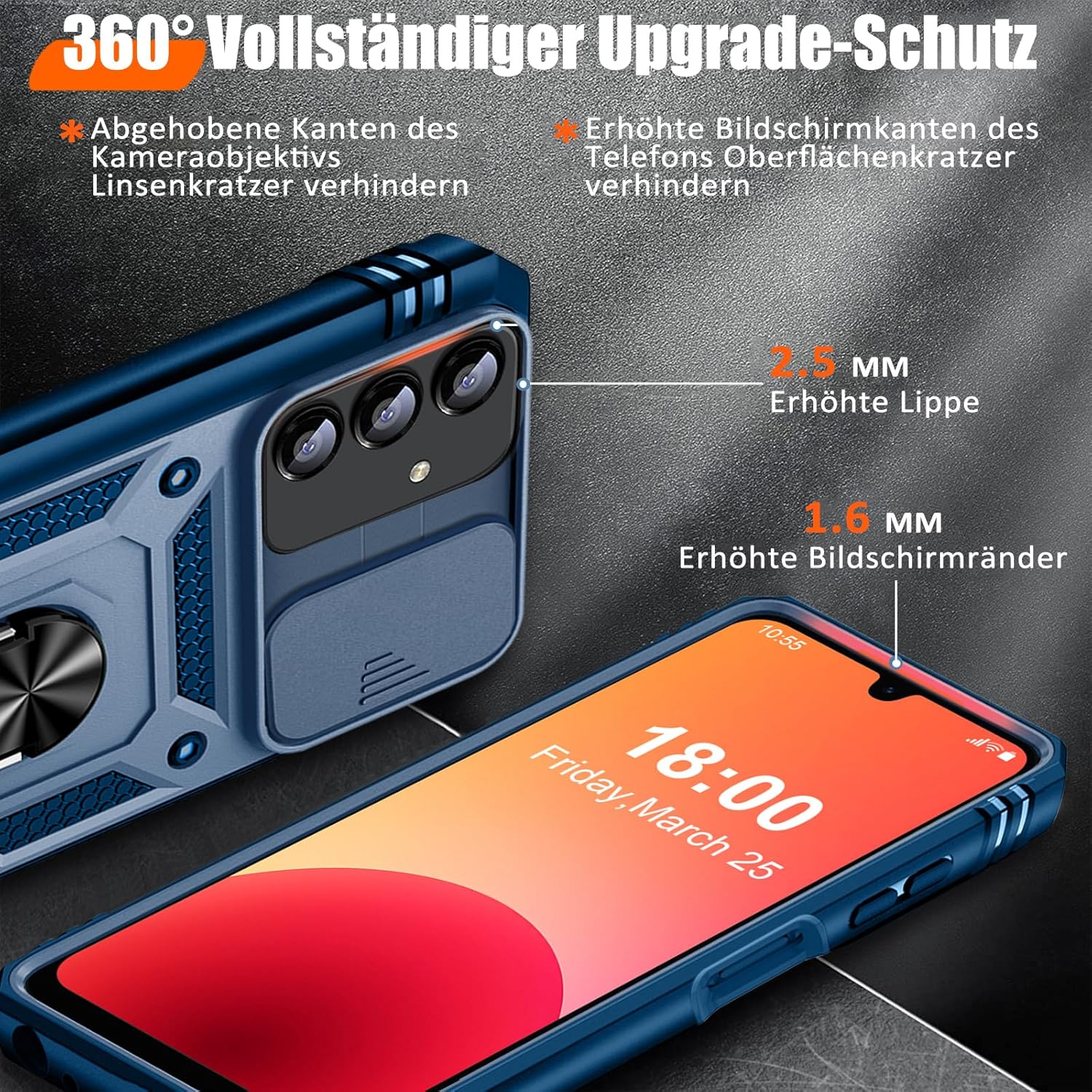 • Защита от военно ниво: калъфът за Galaxy A53 5G използва уникален TPU с ръбове в комбинация с вградени PC 2-в-1 затваряния, за да предпази телефона ви от падания, драскотини и удари. Защитата от военно ниво с технология с въздушна възглавница осигурява цялостна защита за вашето оборудване. Дизайн с плъзгач на обектива: Повдигната рамка за защита на камерата. Капачката покрива обектива и го предпазва от прах и драскотини.