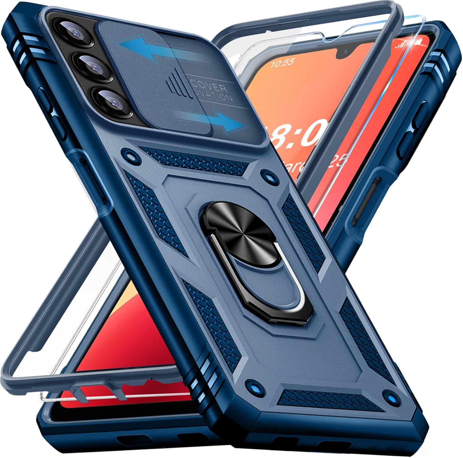 Калъф за мобилен телефон Giyer за Samsung Galaxy A14 5G с протектор за екрана, защитен калъф за Galaxy A14 5G със защита на камерата, въртящ се на 360° метален пръстен, стойка, удароустойчива броня за A14 5G 6.8 инча
