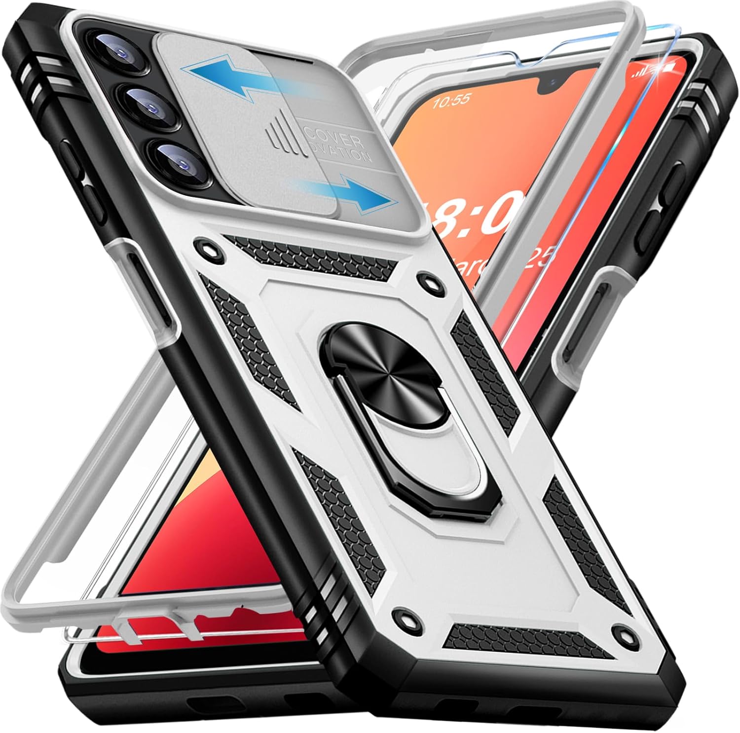 Калъф за мобилен телефон Giyer за Samsung Galaxy A14 5G с протектор за екрана, защитен калъф за Galaxy A14 5G със защита на камерата, въртящ се на 360° метален пръстен, стойка, удароустойчива броня за A14 5G 6.8 инча