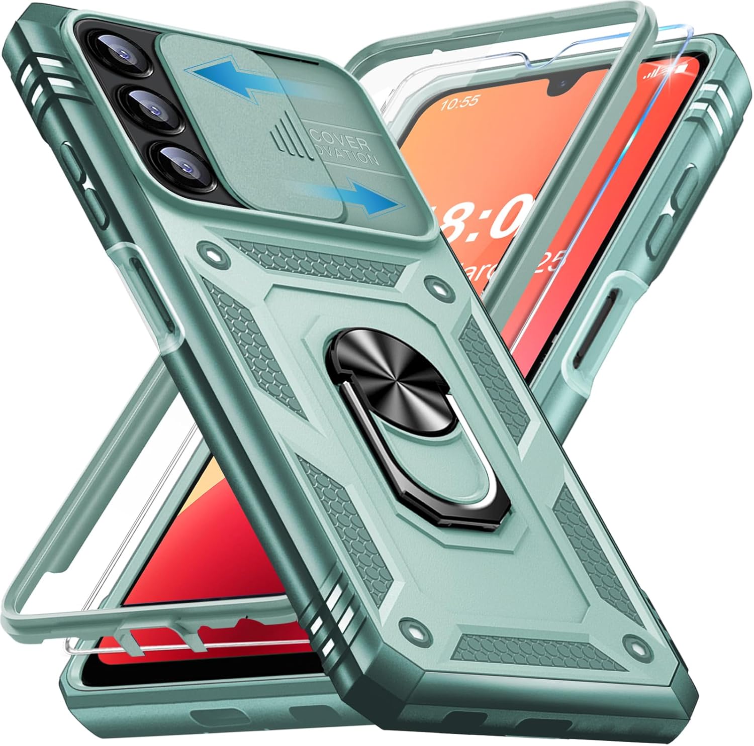 Калъф за мобилен телефон Giyer за Samsung Galaxy A14 5G с протектор за екрана, защитен калъф за Galaxy A14 5G със защита на камерата, въртяща се на 360° метална стойка с пръстен, удароустойчива броня A14 5G 6.8 инча