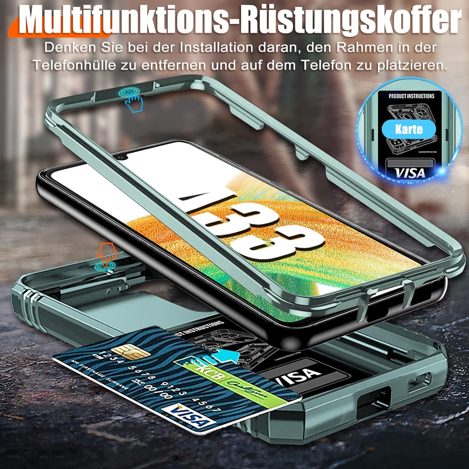 • Съвместимост: Кейс Giyer, съвместим със Samsung Galaxy A53 5G (не A52/A52S) и протектор за екран от закалено стъкло, 1 брой. Моля, свалете калъфа на телефона по време на безжично зареждане. Удароустойчива защита. Кейс за мобилен телефон, незалепващ, с пръстови отпечатъци, абсорбиращ удари, предпазващ от падане ръб, с функция за стойка, устойчив на надраскване.