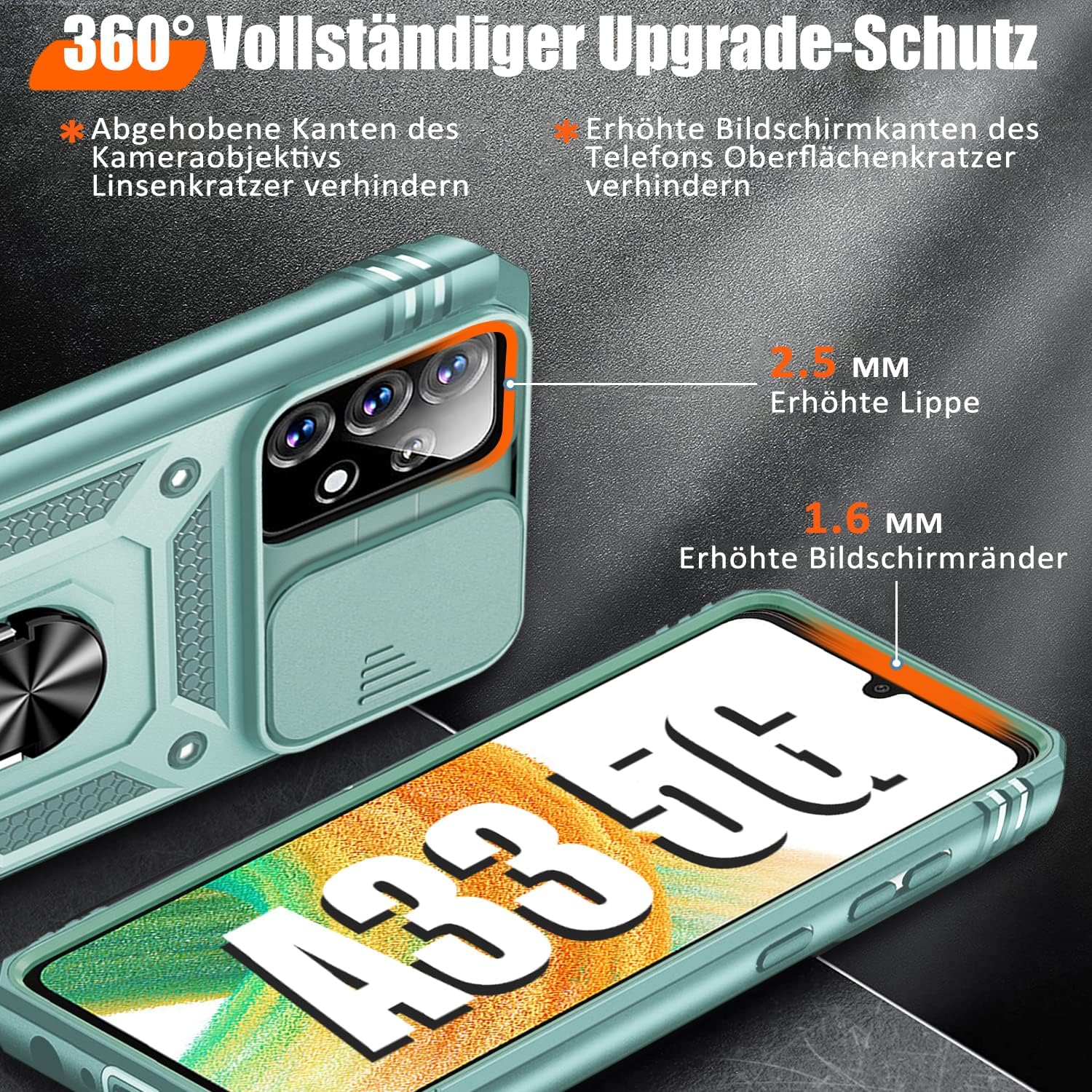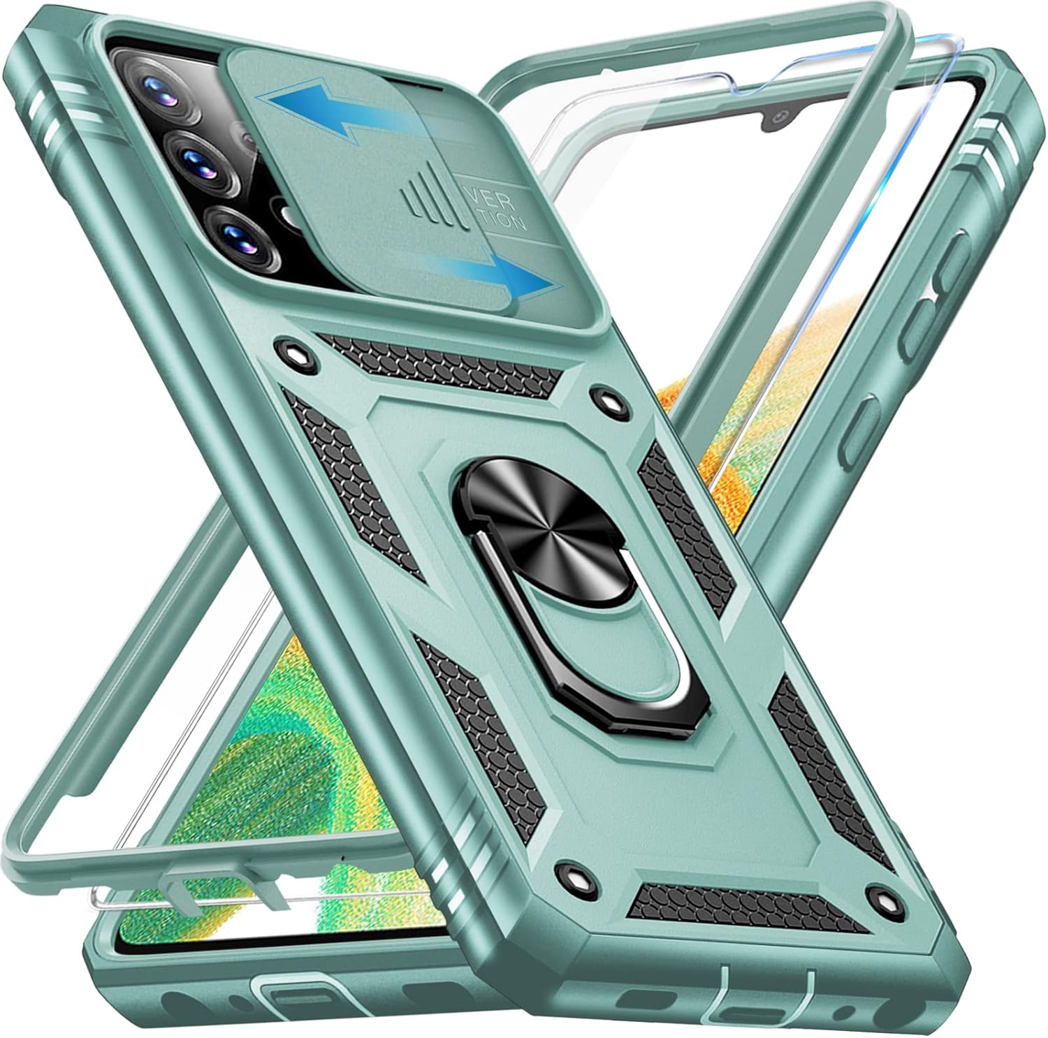 Калъф за мобилен телефон Giyer за Samsung Galaxy A33 5G с протектор за екрана, защитен калъф за Galaxy A33 5G със защита на камерата, въртяща се на 360° метална стойка с пръстен, удароустойчива броня A33 5G 6.4 инча