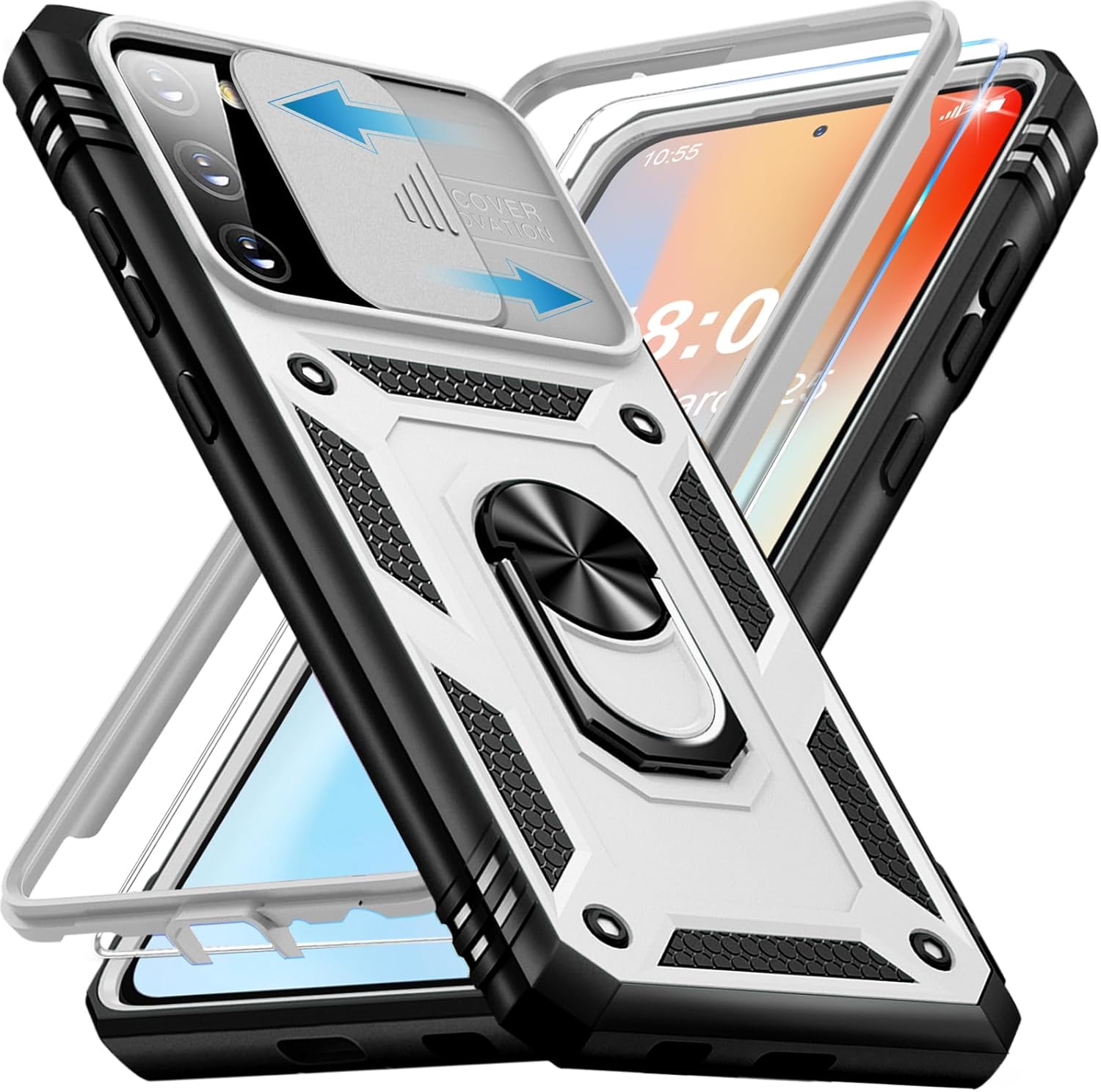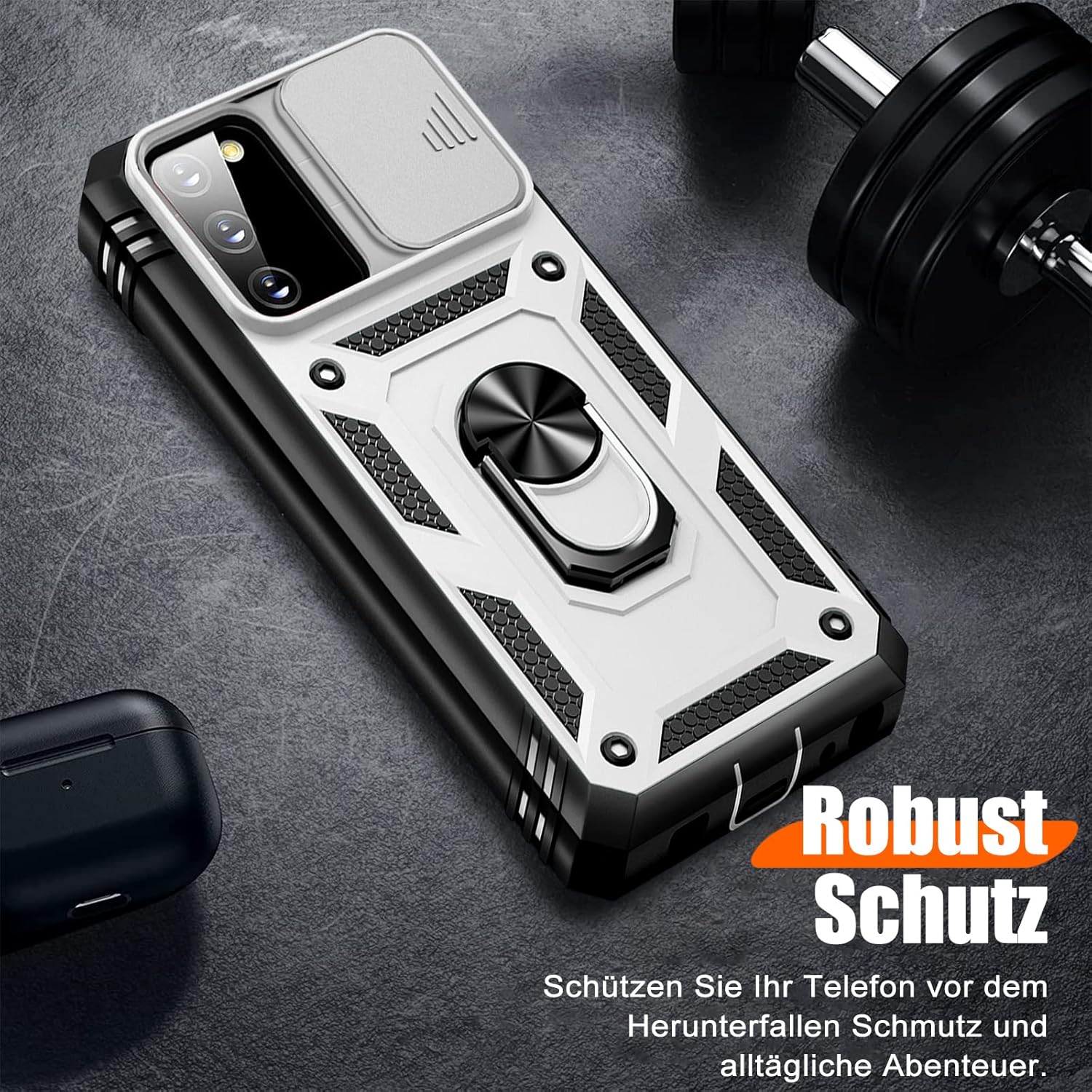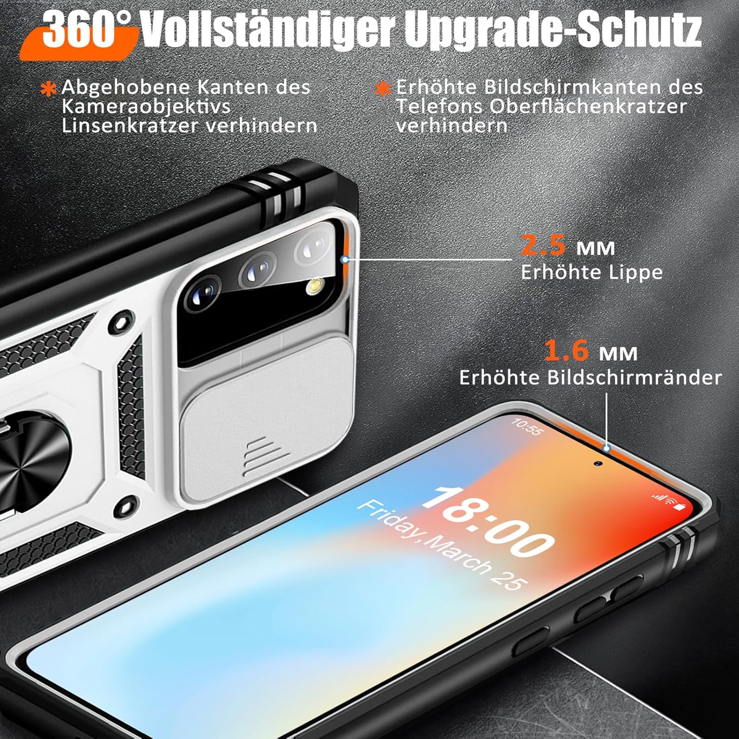 Калъф за мобилен телефон Giyer за Samsung Galaxy S20 FE с протектор за екрана, защитен калъф със защита на камерата, въртяща се на 360° метална стойка с пръстен, удароустойчив калъф за S20 FE 6.5 инча (бял)