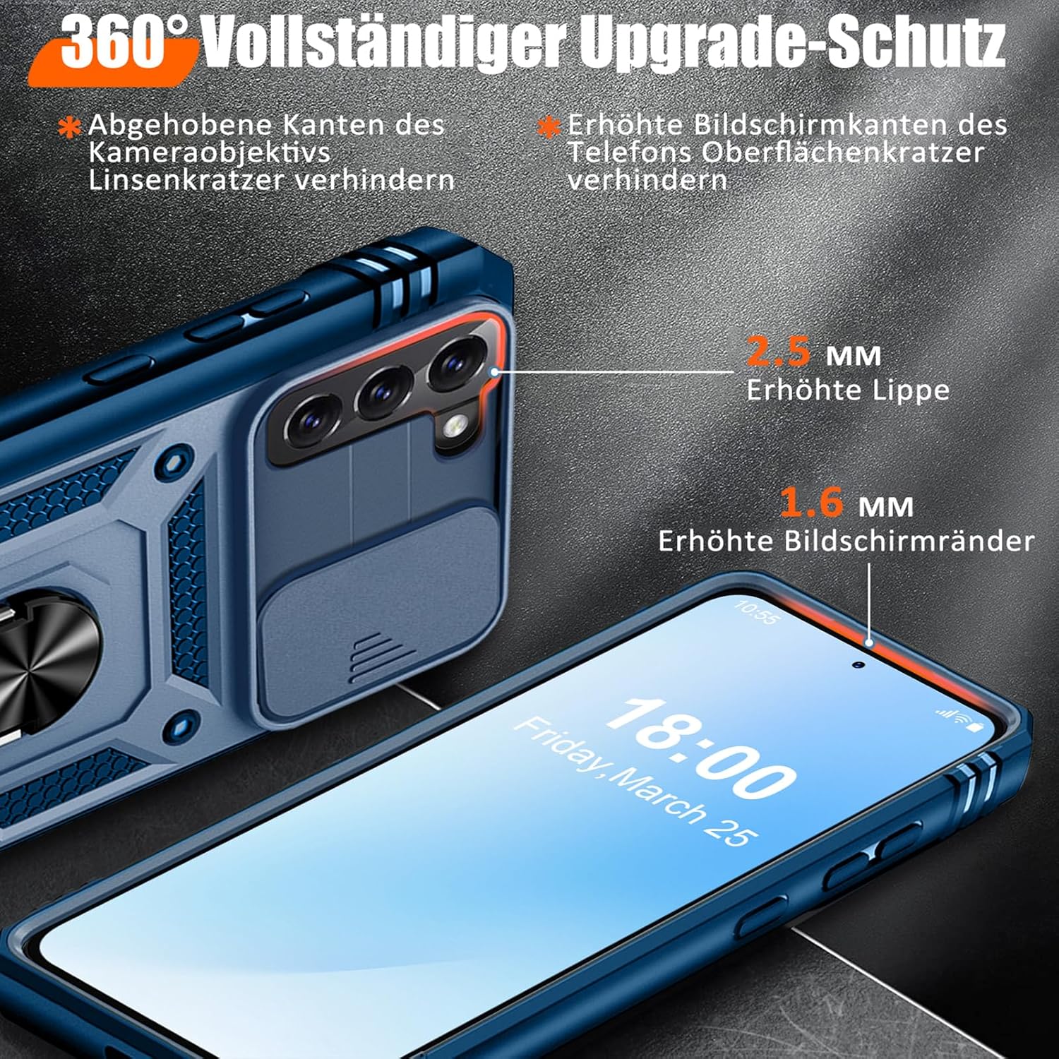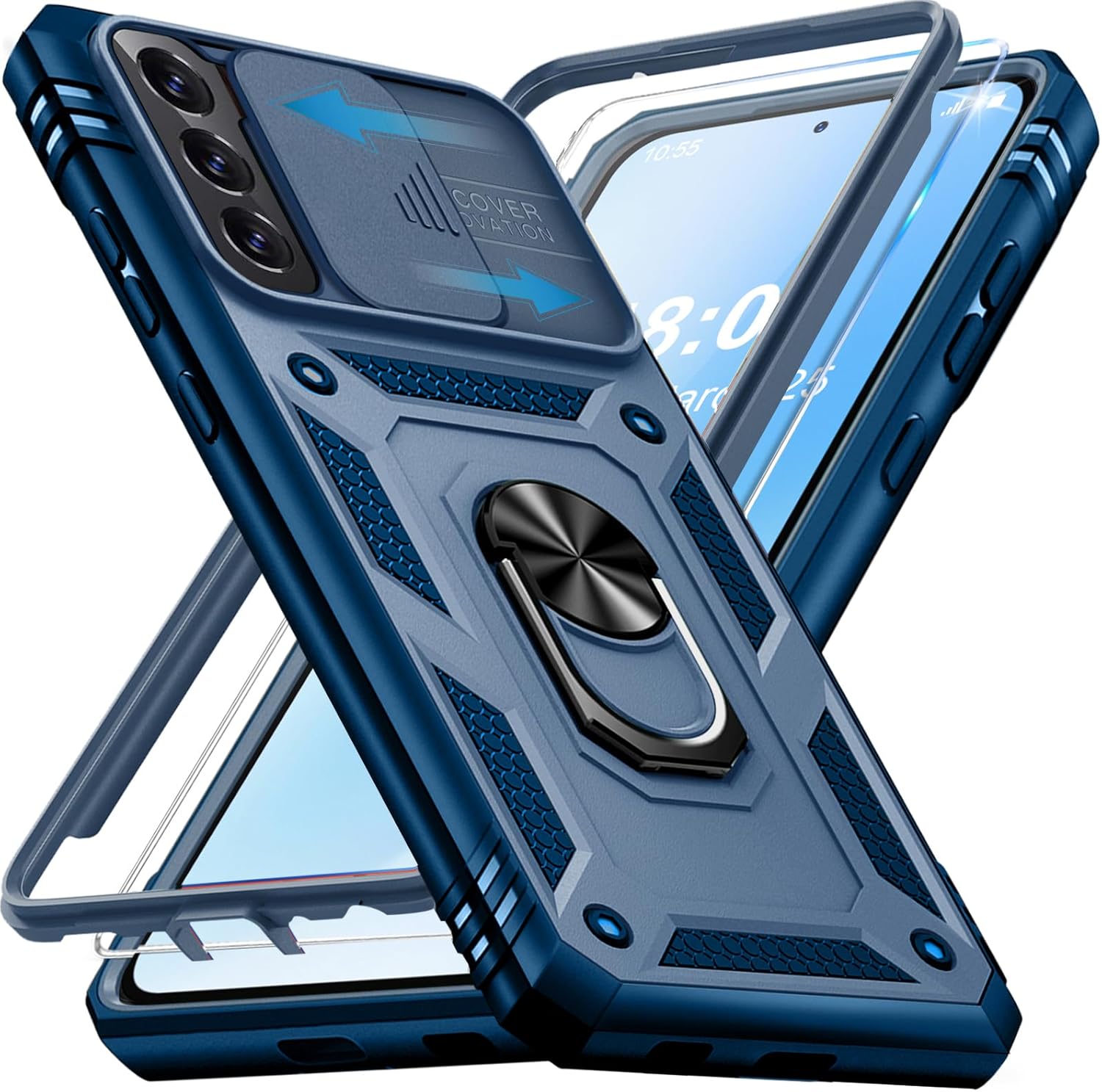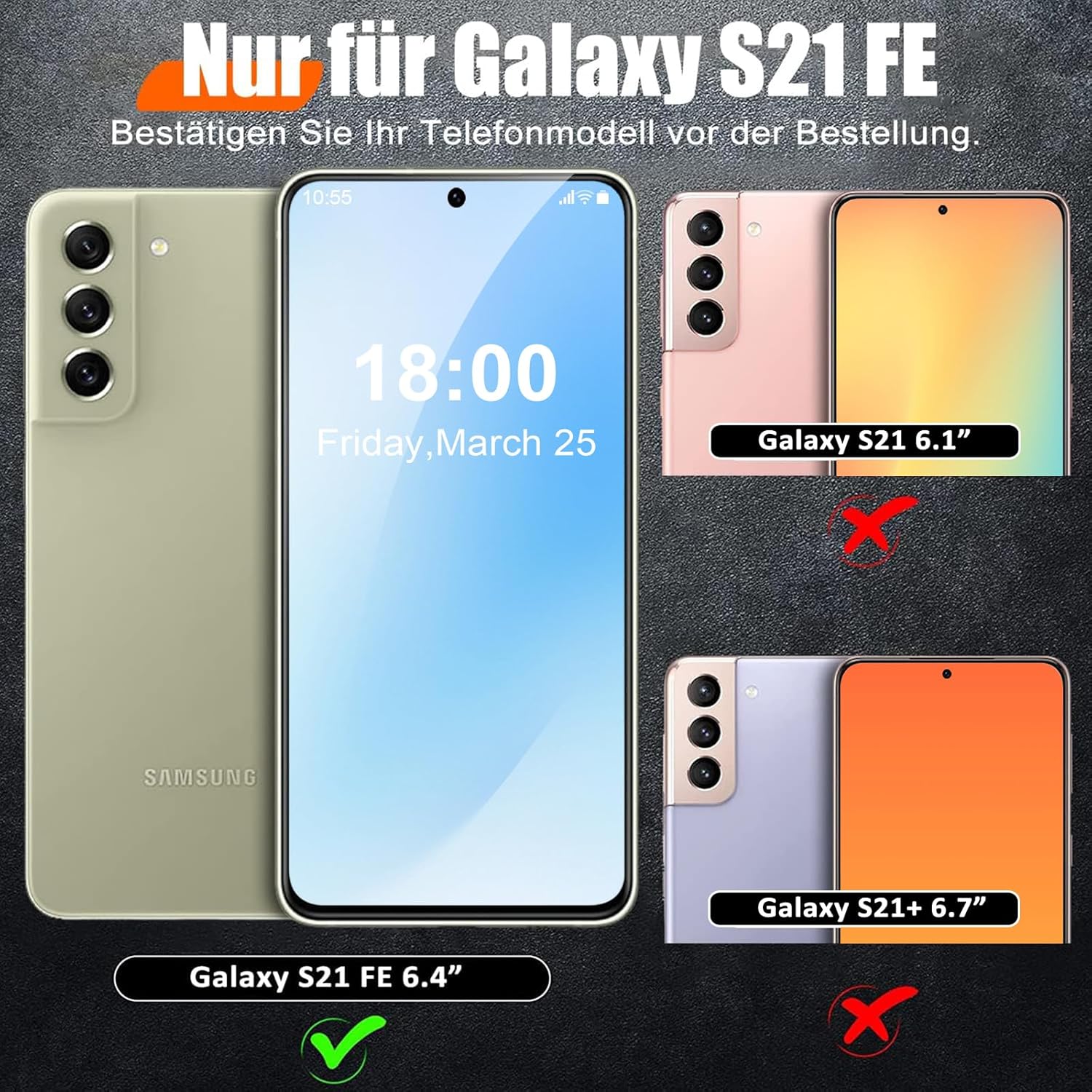 Калъф за мобилен телефон Giyer за Samsung Galaxy S21 FE 5G с протектор за екрана, защитен калъф за Galaxy S21 FE със защита на камерата, въртящ се на 360° метален пръстен, стойка, удароустойчива броня, S21 FE 6.4 инча