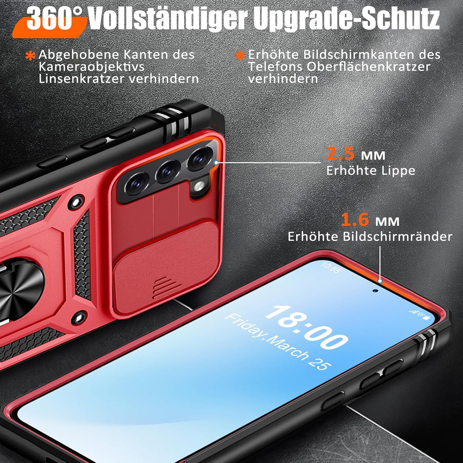 • Защита от военен клас: калъфът за Galaxy S25 използва уникален TPU с ръбове в комбинация с вградени PC 2-в-1 затваряния, за да предпази телефона ви от падания, драскотини и удари. Защитата от военен клас с технология с въздушна възглавница осигурява цялостна защита за вашето оборудване. Дизайн с плъзгач на обектива: Повдигната рамка за защита на камерата. Капачката покрива обектива и го предпазва от прах и драскотини.