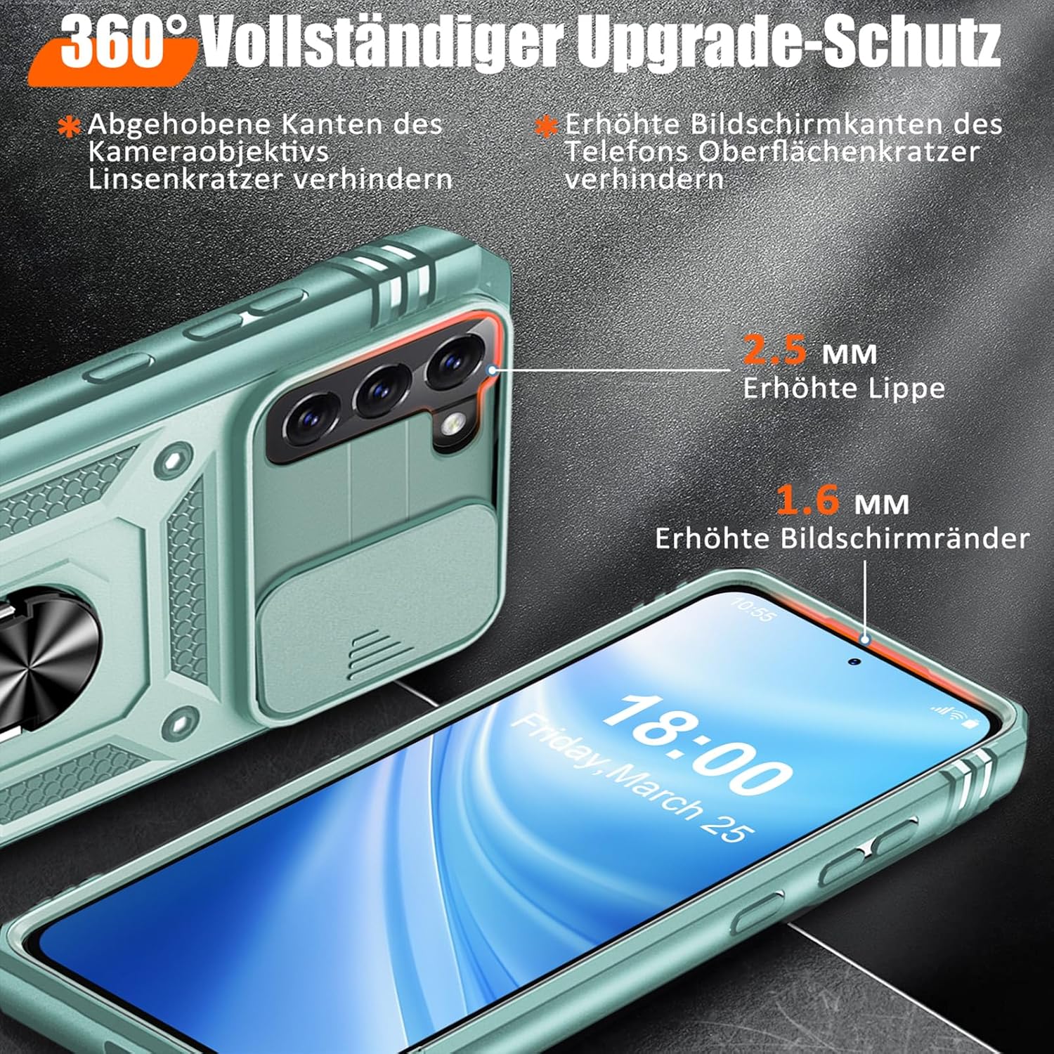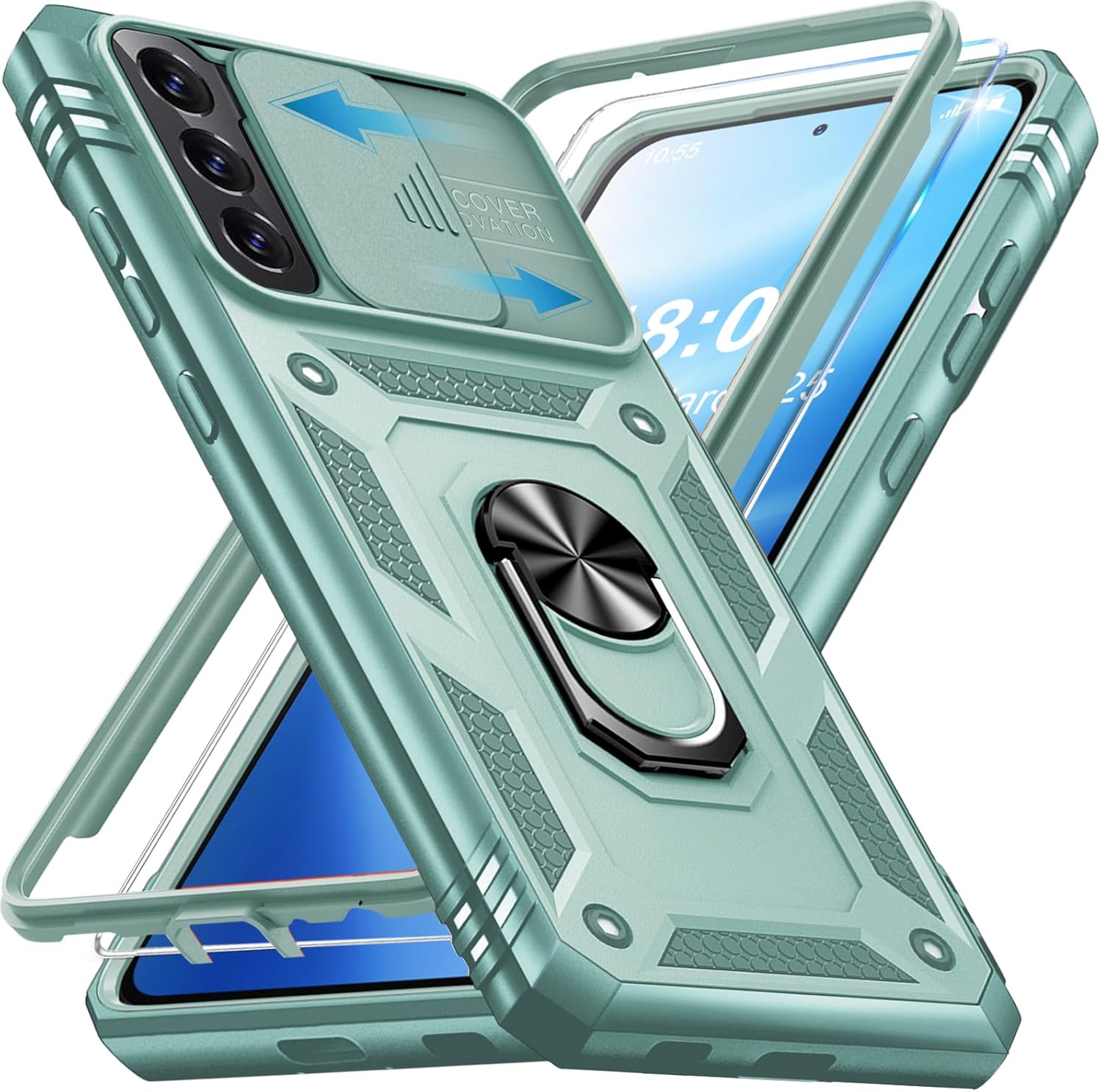 Калъф за мобилен телефон Giyer за Samsung Galaxy S22 5G с протектор за екрана, защитен калъф със защита на камерата, въртяща се на 360° метална стойка с пръстен, удароустойчив калъф-бумпер за S22 5G 6.1 инча (ментов)