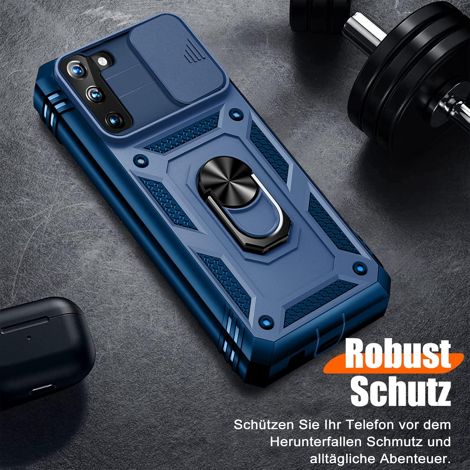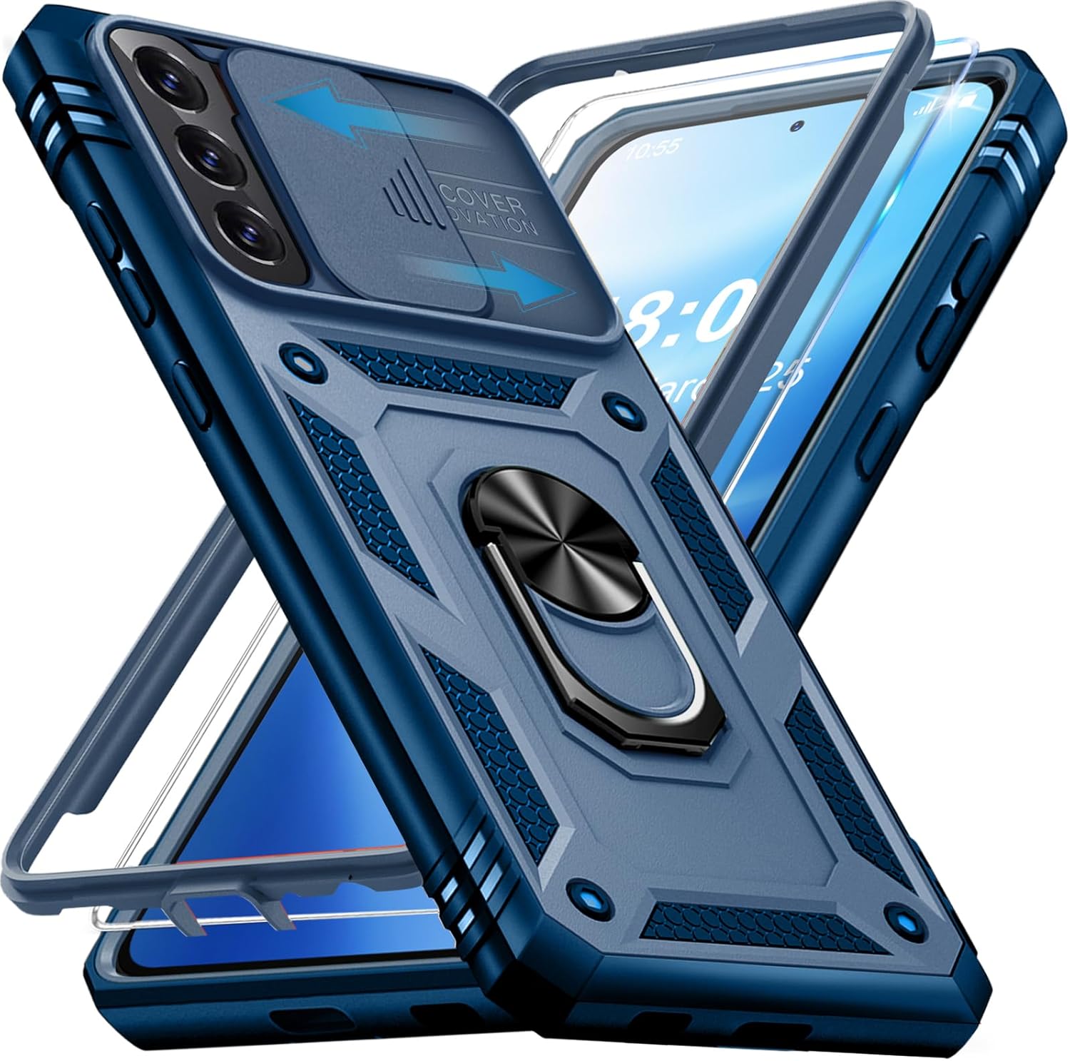 Калъф за мобилен телефон Giyer за Samsung Galaxy S22 5G с протектор за екрана, защитен калъф със защита на камерата, въртяща се на 360° метална стойка с пръстен, удароустойчив калъф-бумпер за S22 5G 6.1 инча (син)