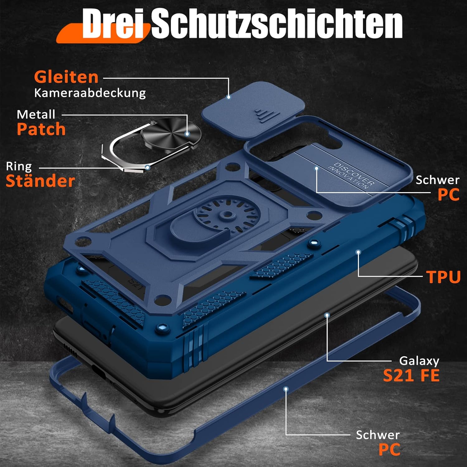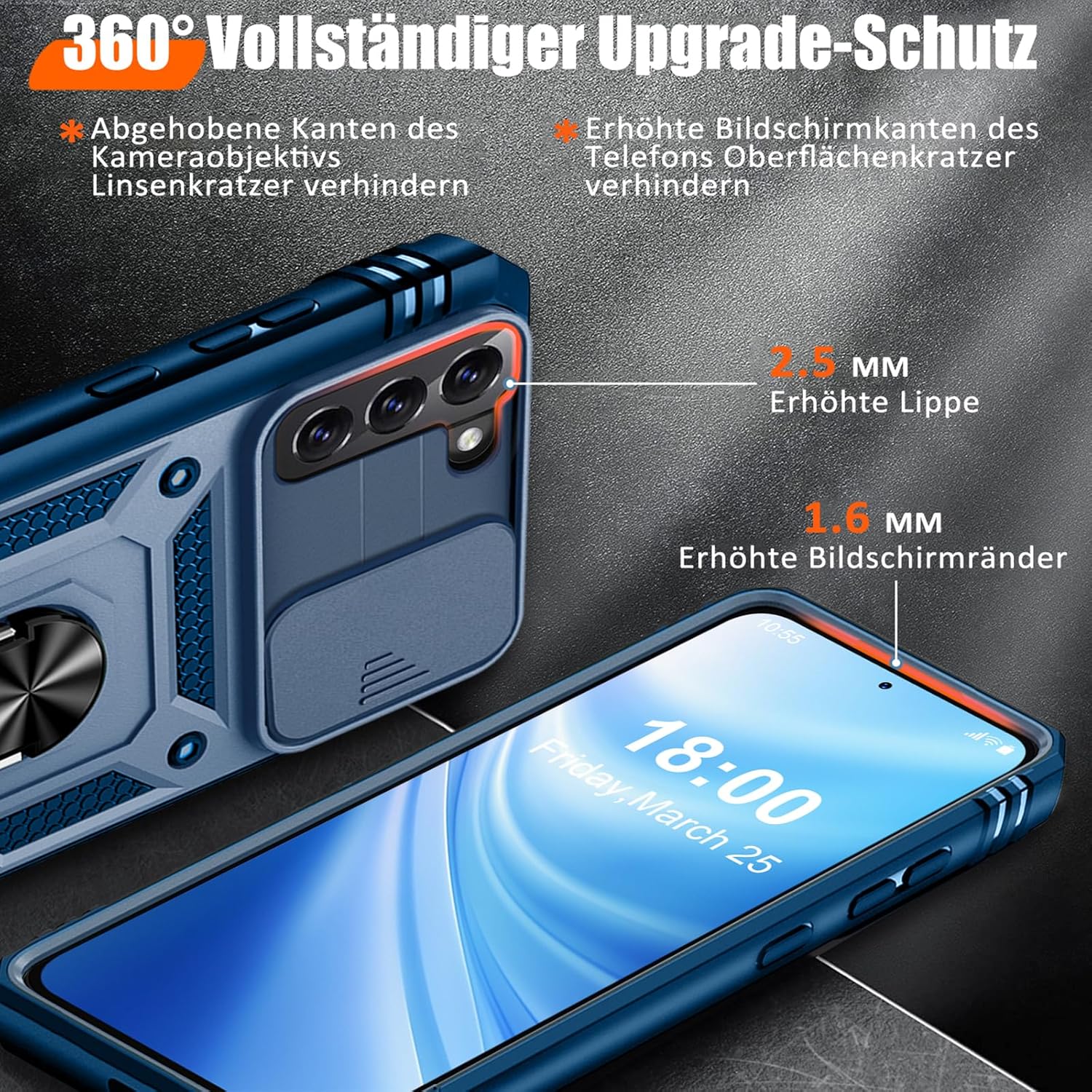 • Защита от военен клас: калъфът за Galaxy S25 използва уникален TPU с ръбове в комбинация с вградени PC 2-в-1 затваряния, за да предпази телефона ви от падания, драскотини и удари. Защитата от военен клас с технология с въздушна възглавница осигурява цялостна защита за вашето оборудване. Дизайн с плъзгач на обектива: Повдигната рамка за защита на камерата. Капачката покрива обектива и го предпазва от прах и драскотини.
