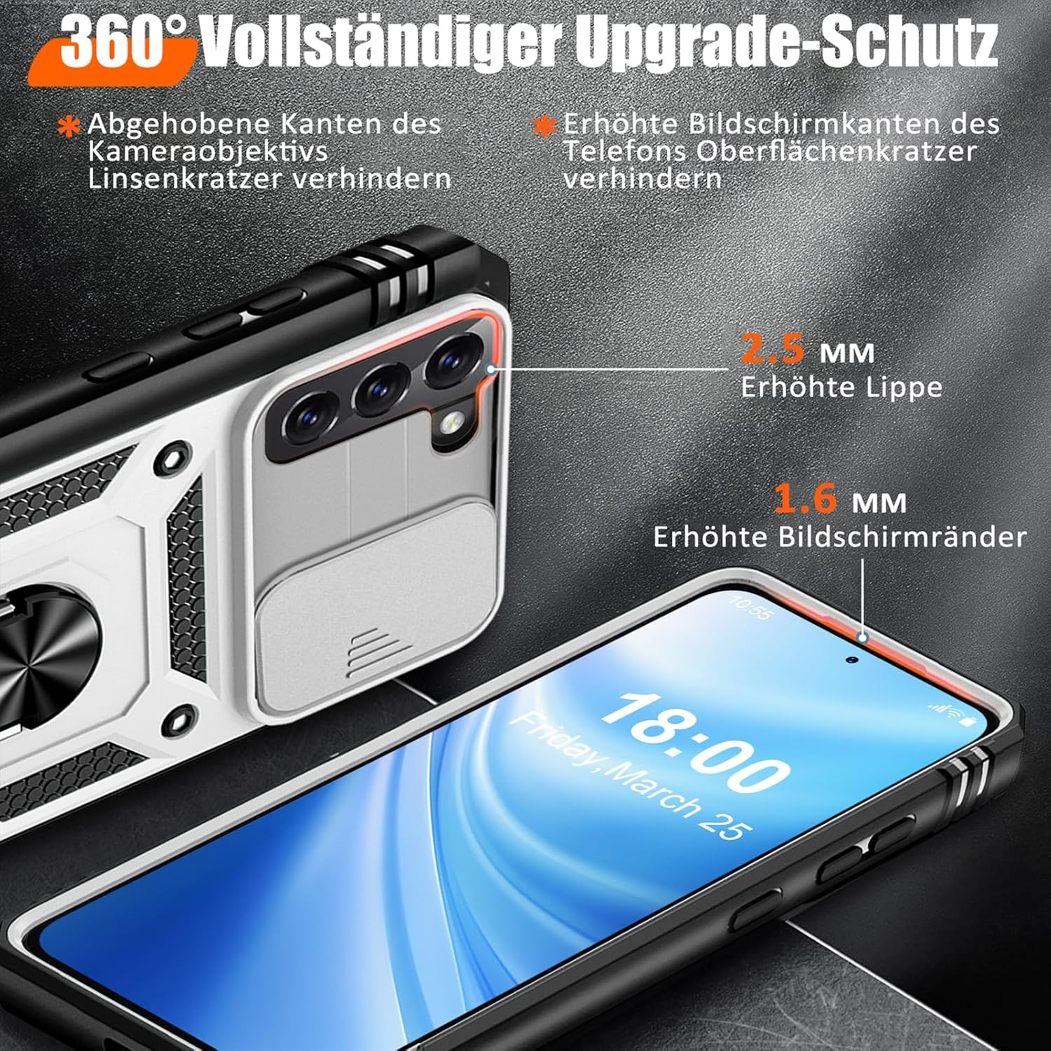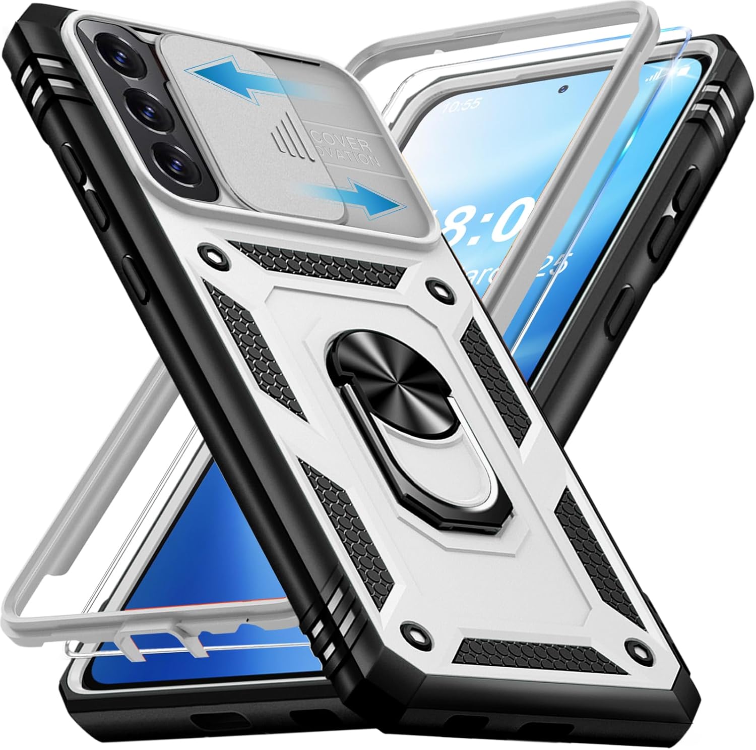 Калъф за мобилен телефон Giyer за Samsung Galaxy S22 5G с протектор за екрана, защитен калъф със защита на камерата, въртяща се на 360° метална стойка с пръстен, удароустойчив калъф-бумпер за S22 5G 6.1 инча