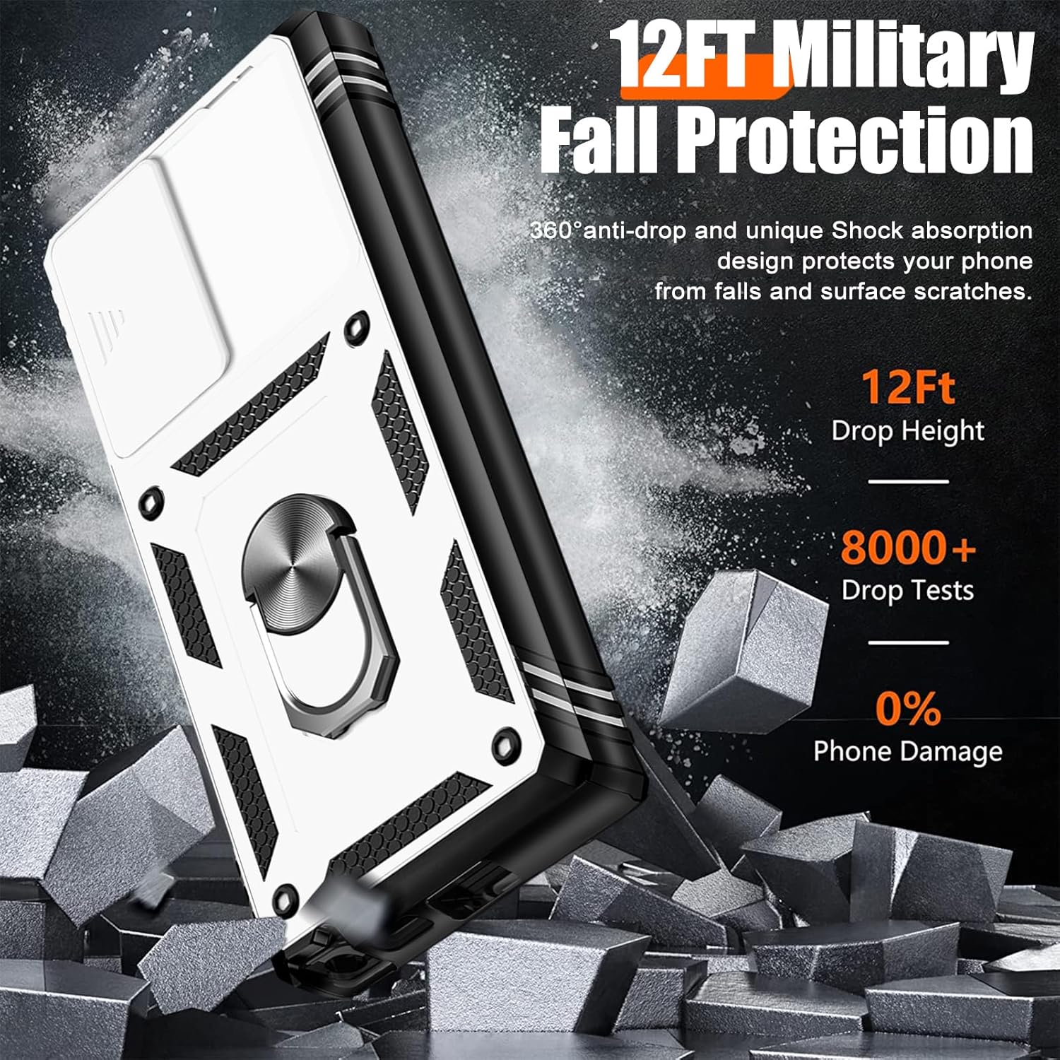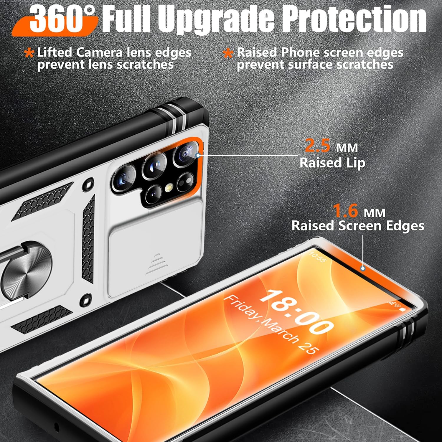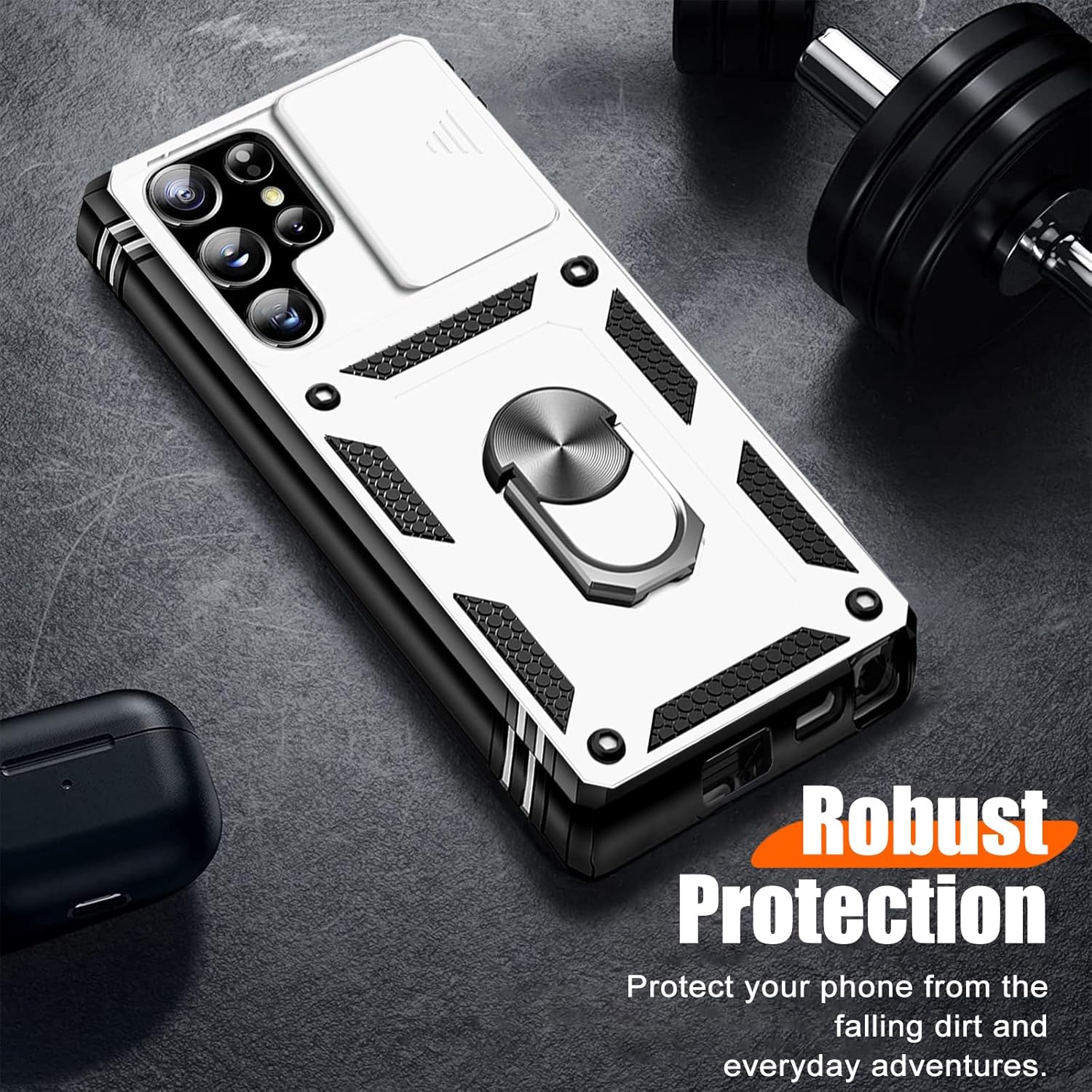 Калъф за мобилен телефон Giyer за Samsung Galaxy S22 Ultra със защита на камерата, метален пръстен, стойка, удароустойчив, защитен калъф за Samsung S22 Ultra 6.8 инча (бял)