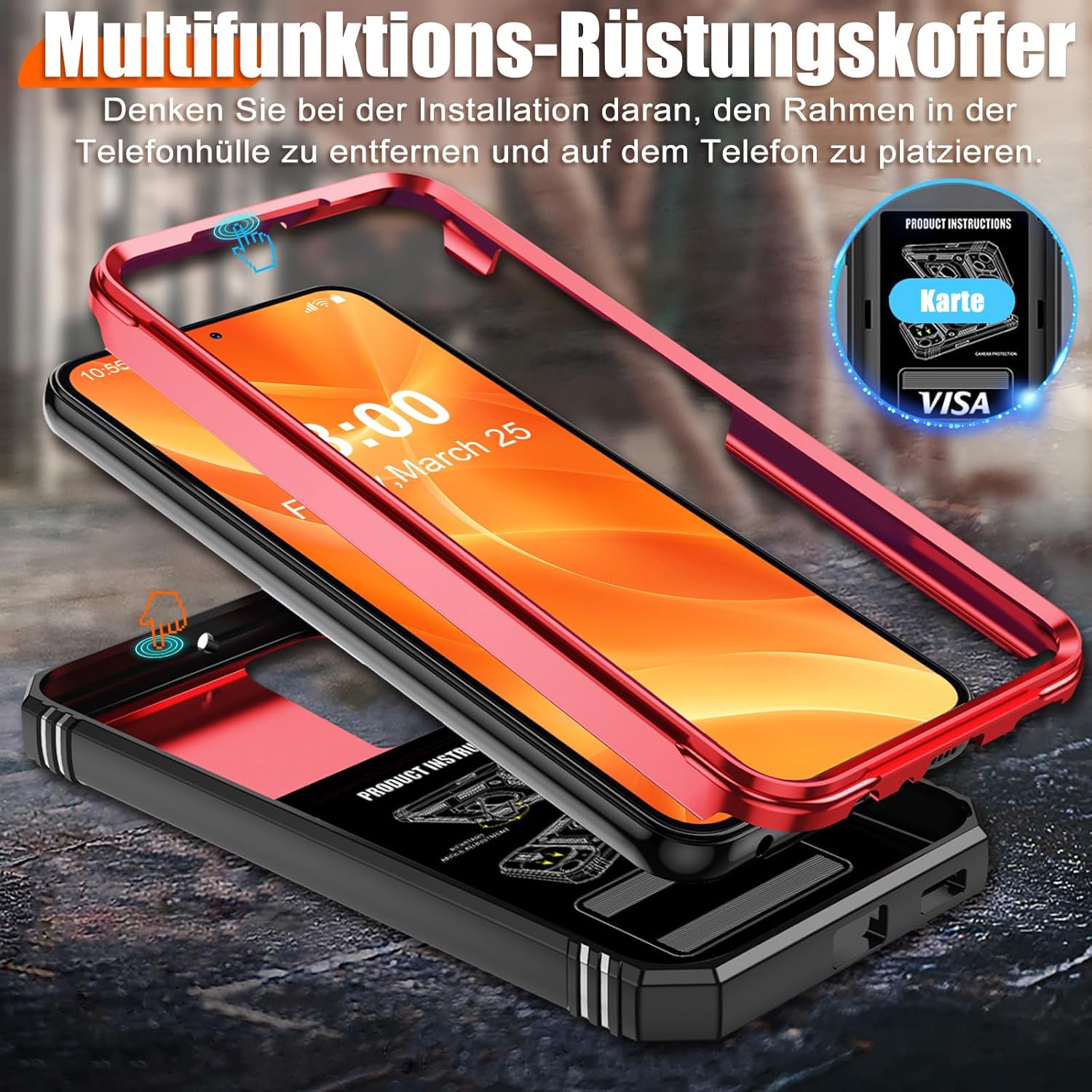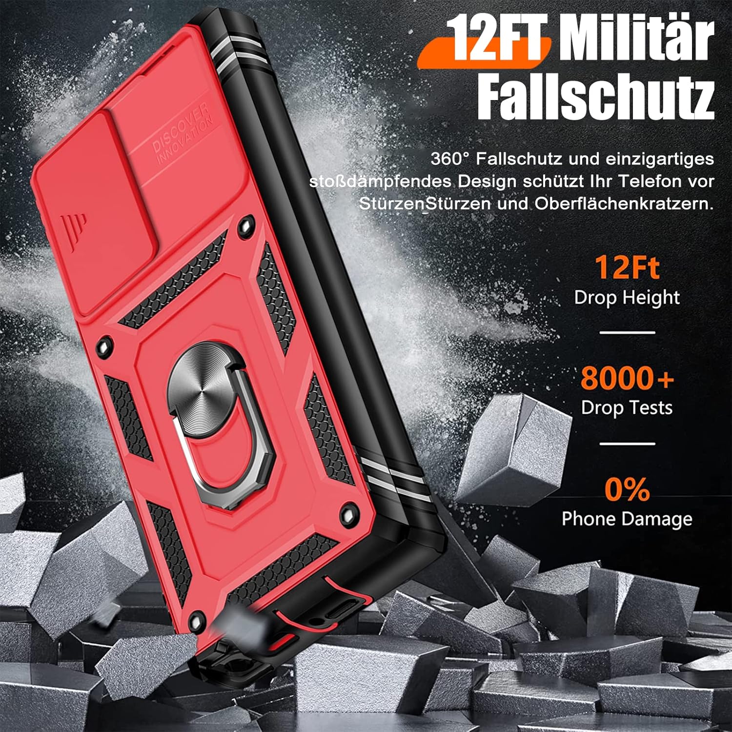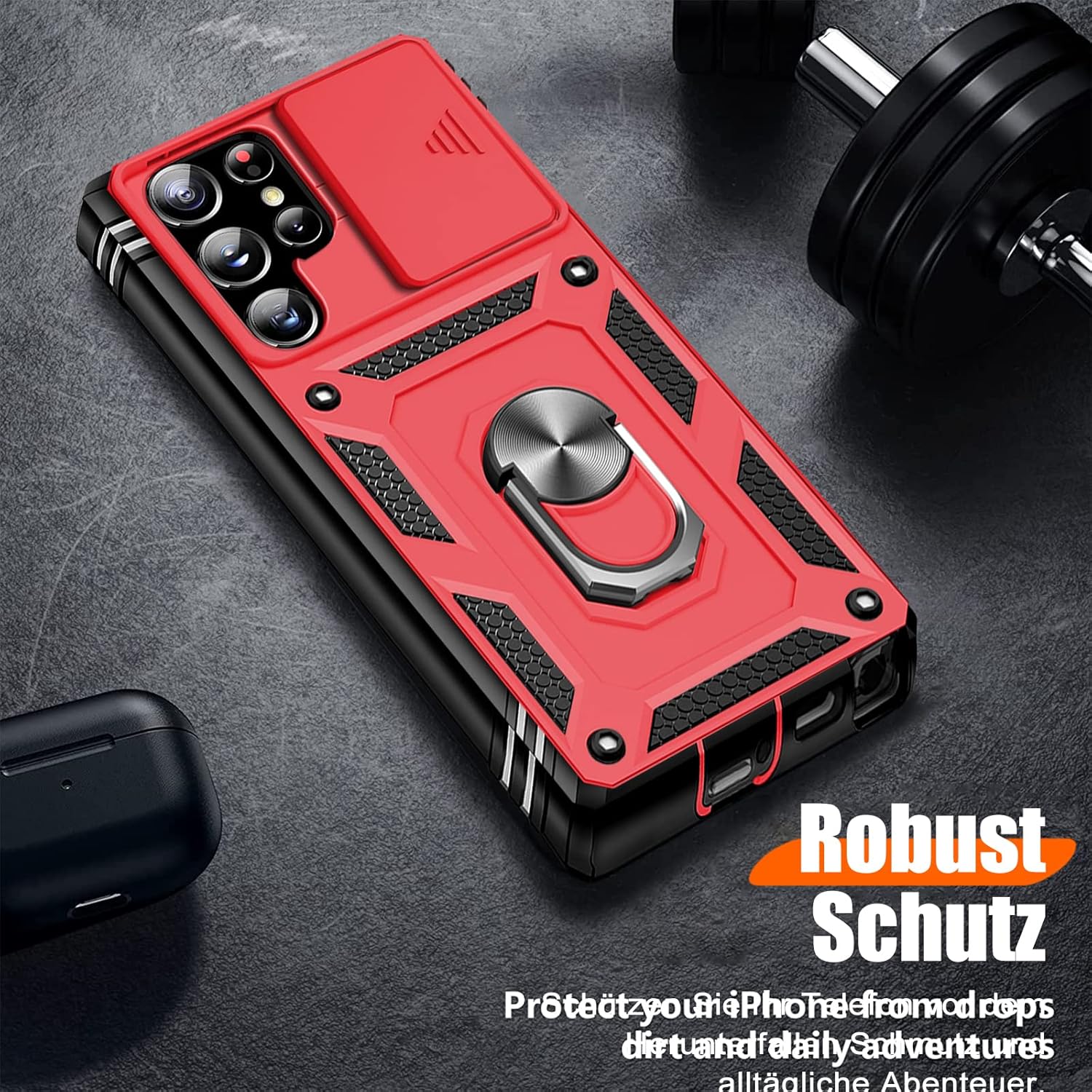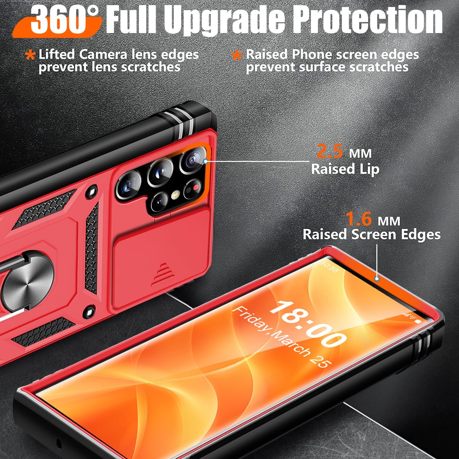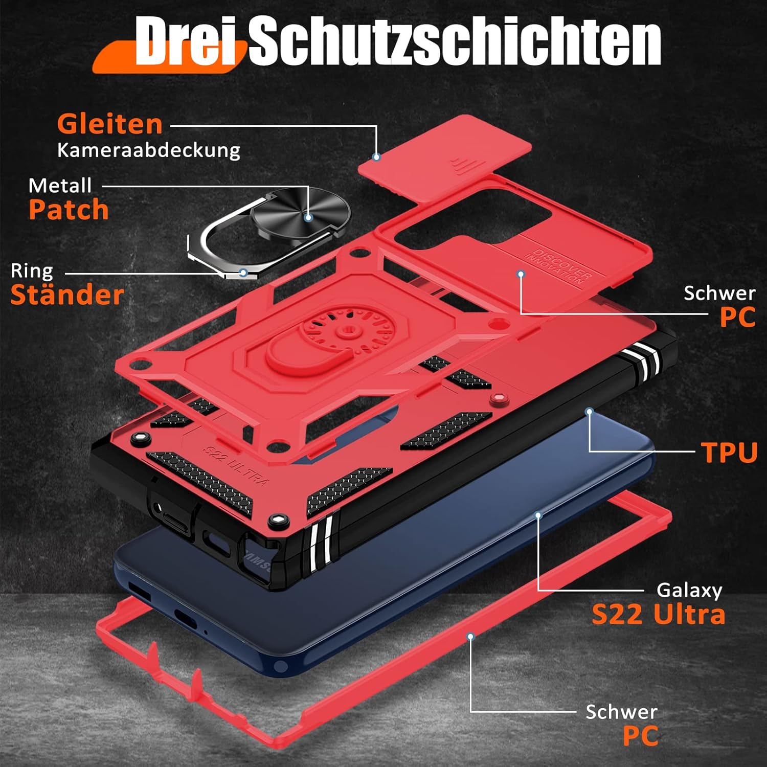 Калъф за мобилен телефон Giyer за Samsung Galaxy S22 Ultra със защита на камерата, метален пръстен, стойка, удароустойчив, защитен калъф за Samsung S22 Ultra 6.8 инча (червен)