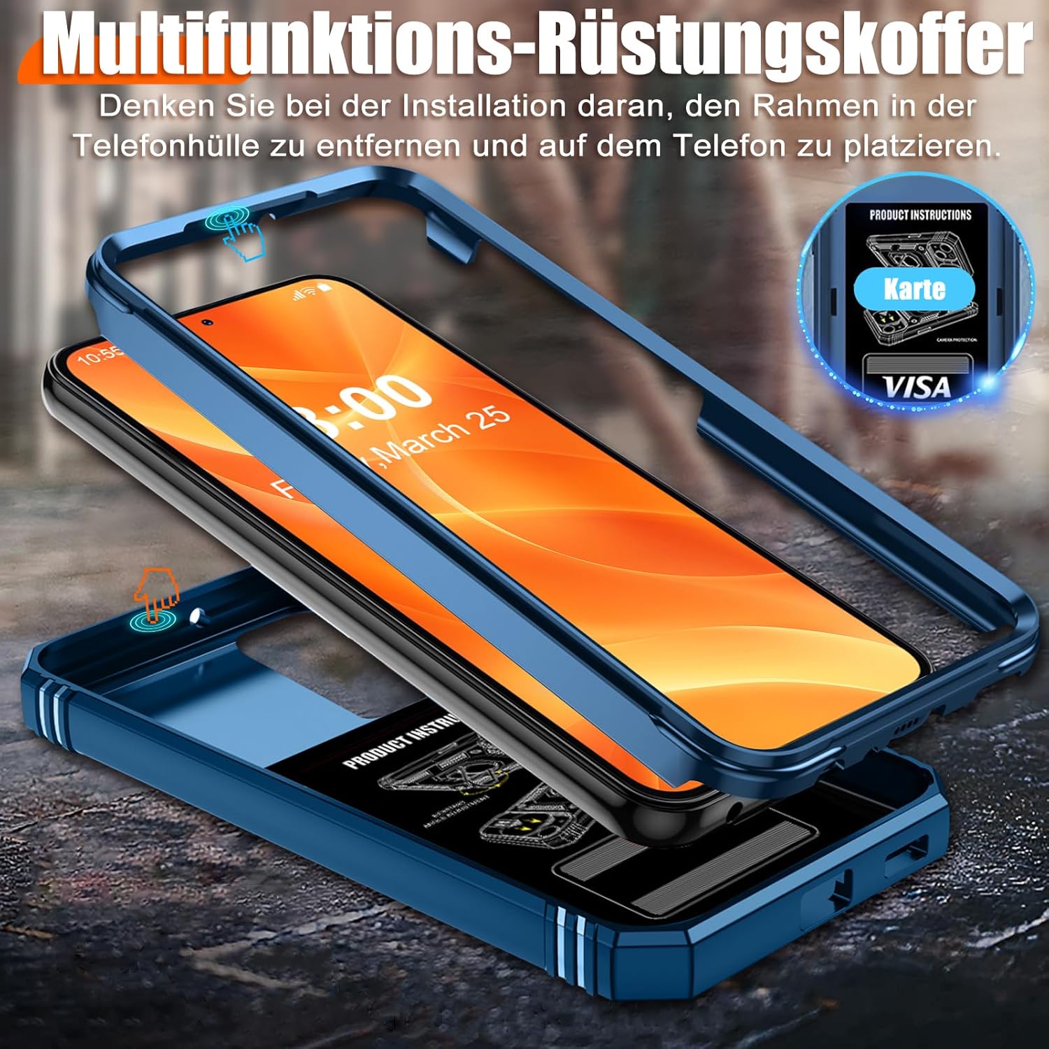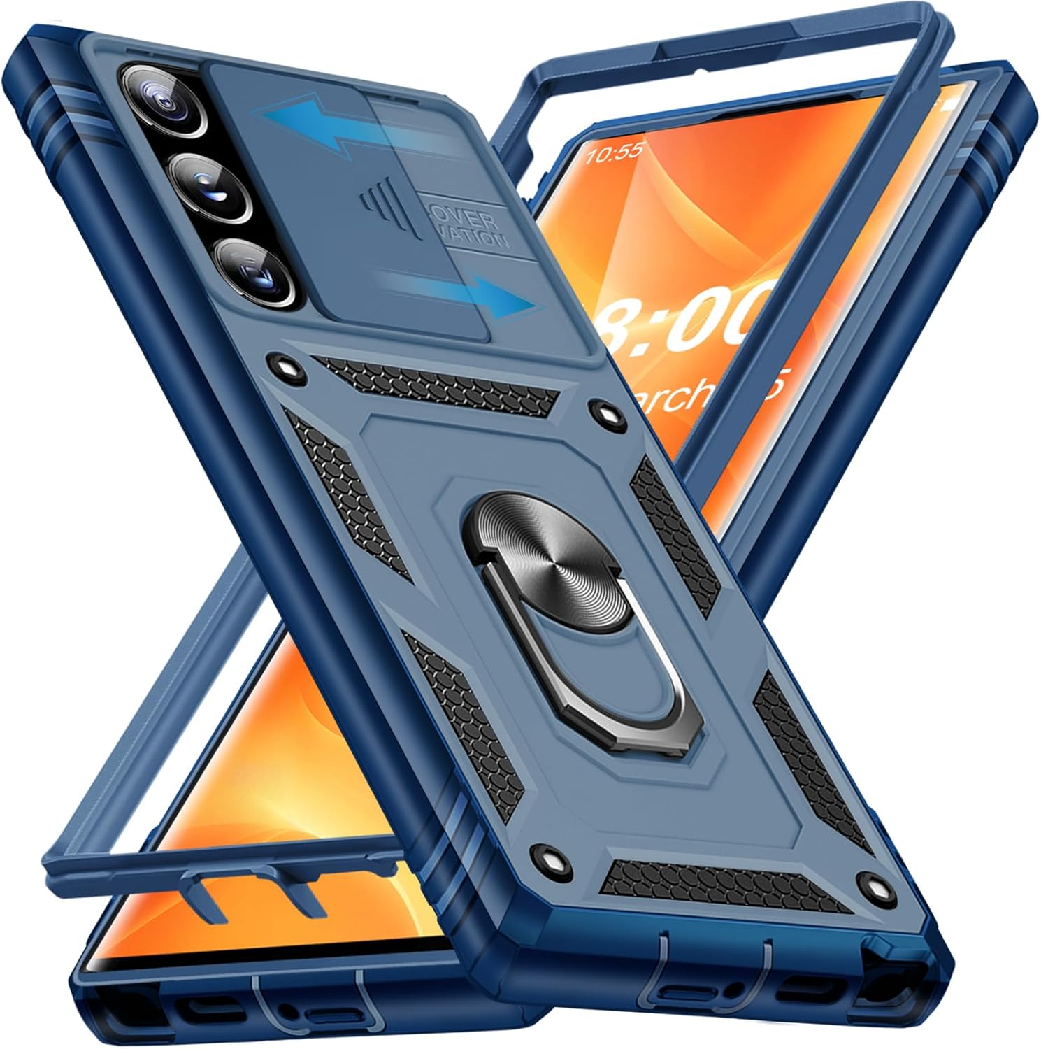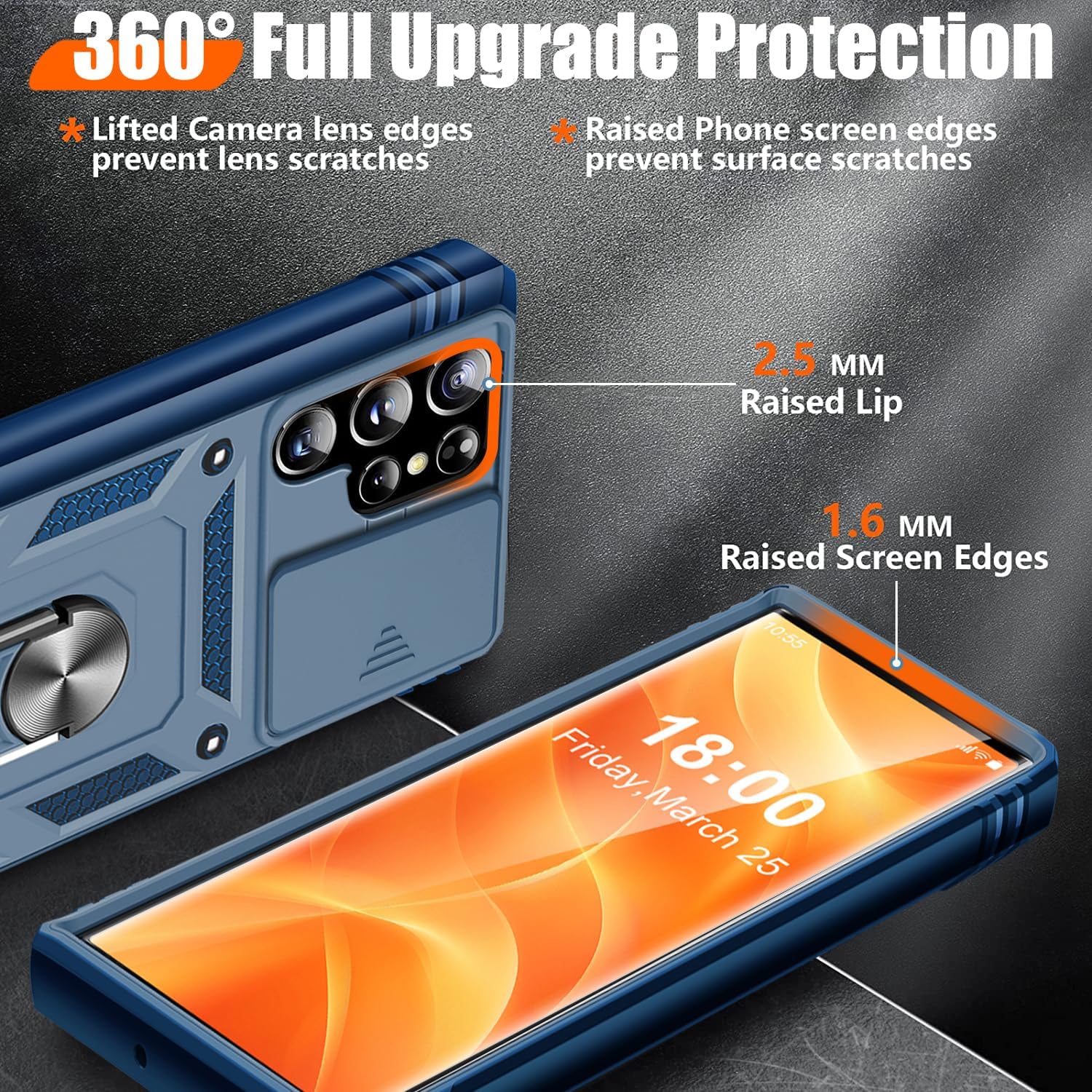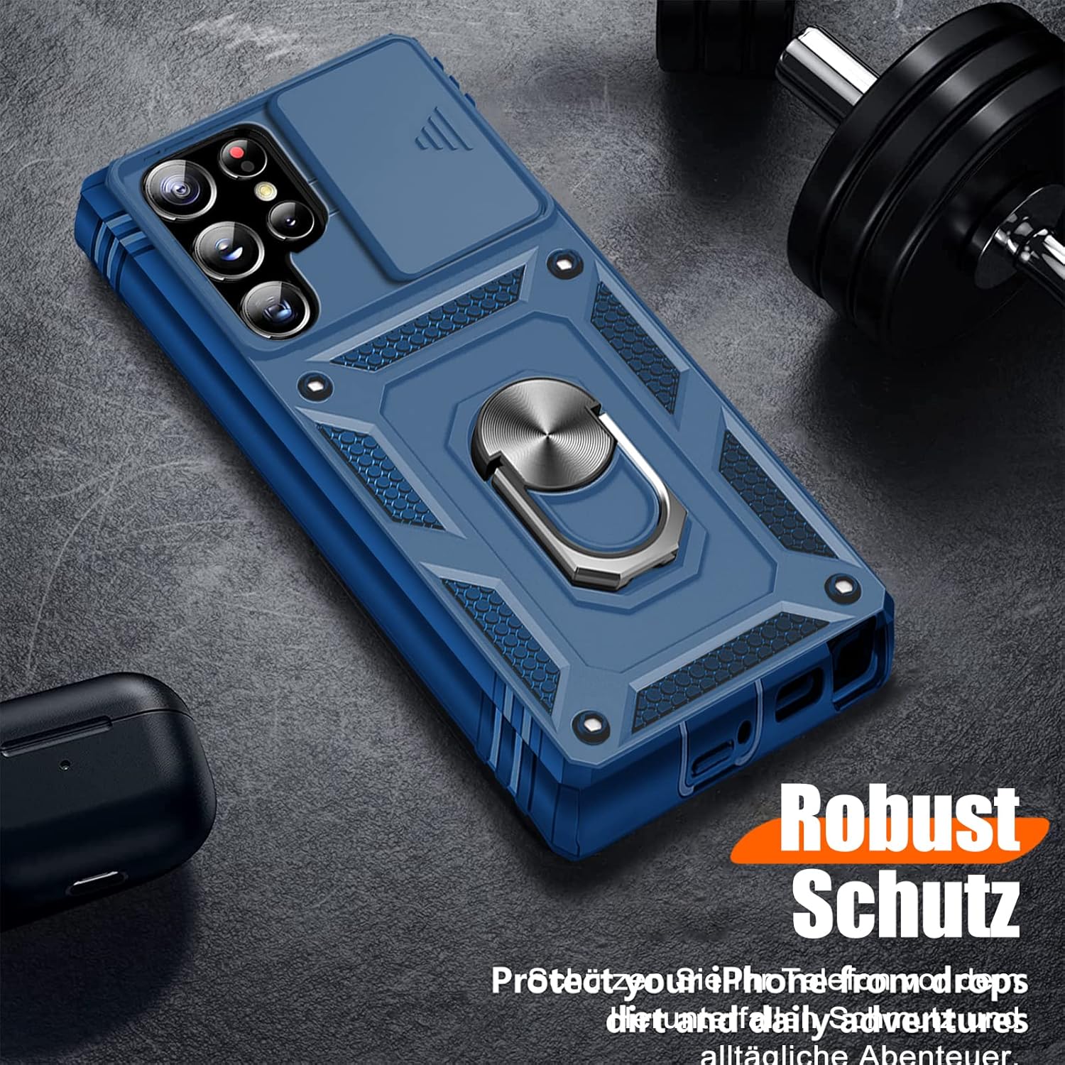 Калъф за мобилен телефон Giyer за Samsung Galaxy S22 Ultra със защита на камерата, метален пръстен, стойка, удароустойчив, защитен калъф за Samsung S22 Ultra 6.8 инча (син)