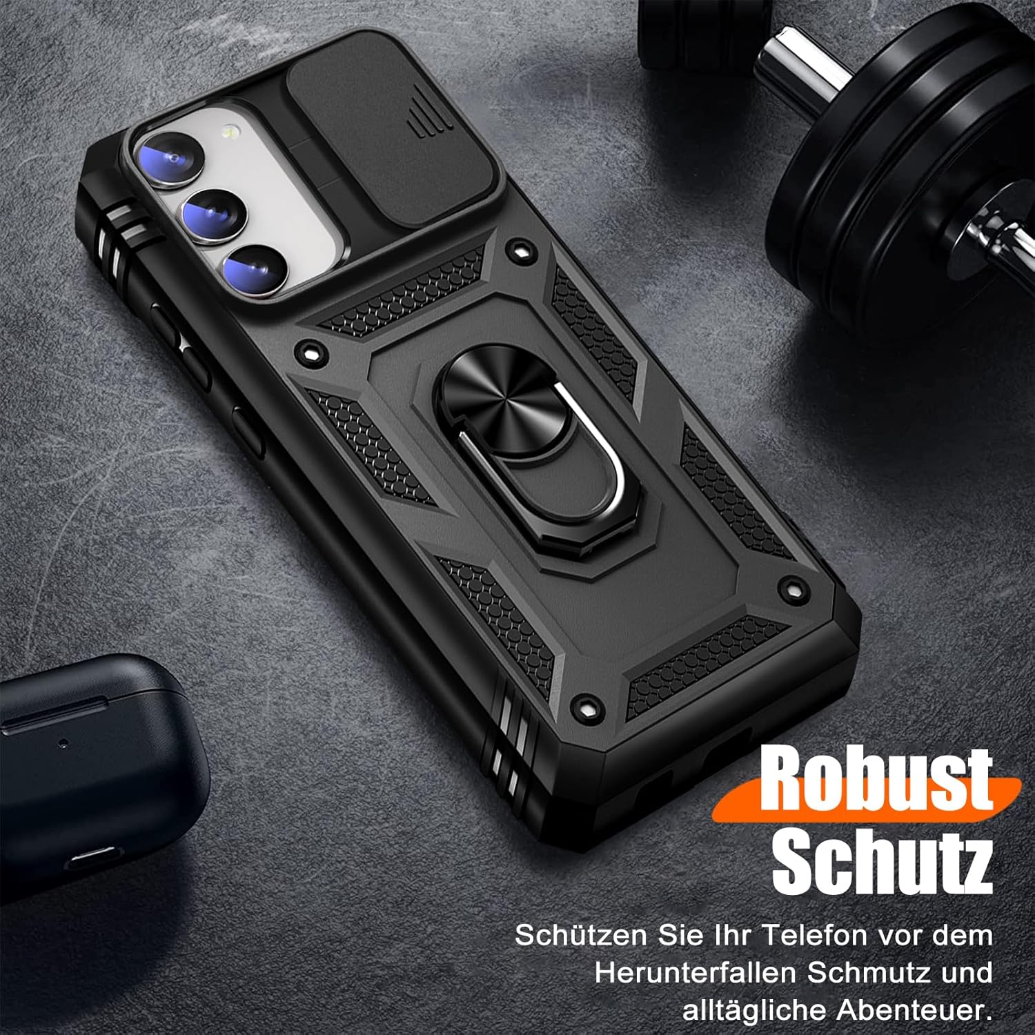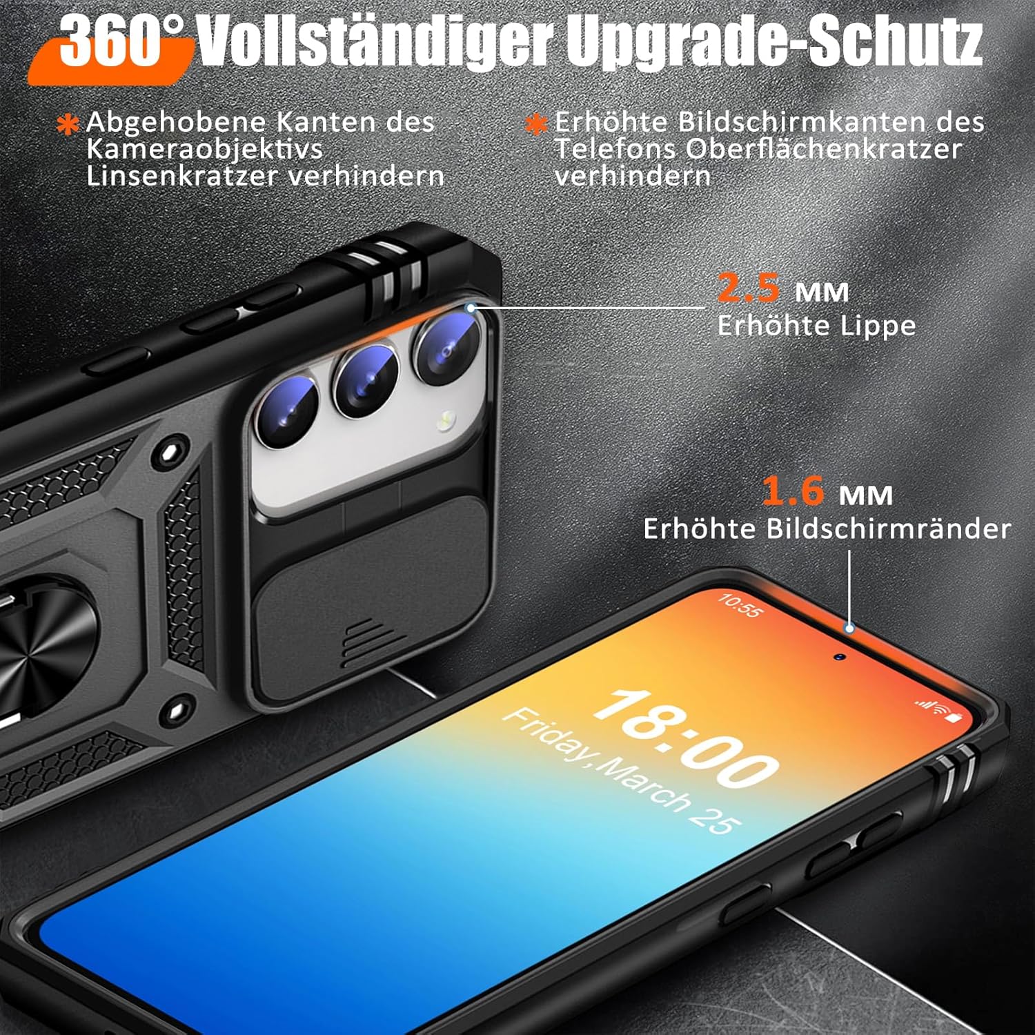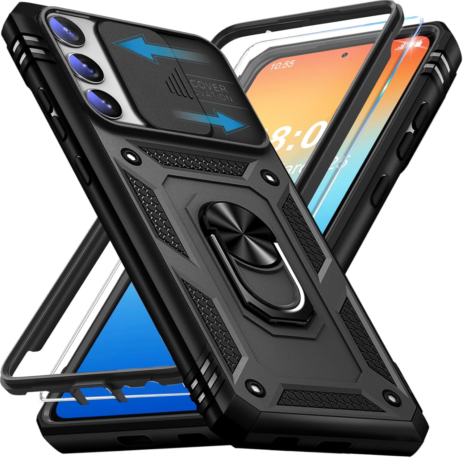 Калъф за мобилен телефон Giyer за Samsung Galaxy S23 5G с протектор за екрана, защитен калъф за Galaxy S23 5G със защита на камерата, въртящ се на 360° метален пръстен, стойка, удароустойчива броня за S23 5G 6.1 инча