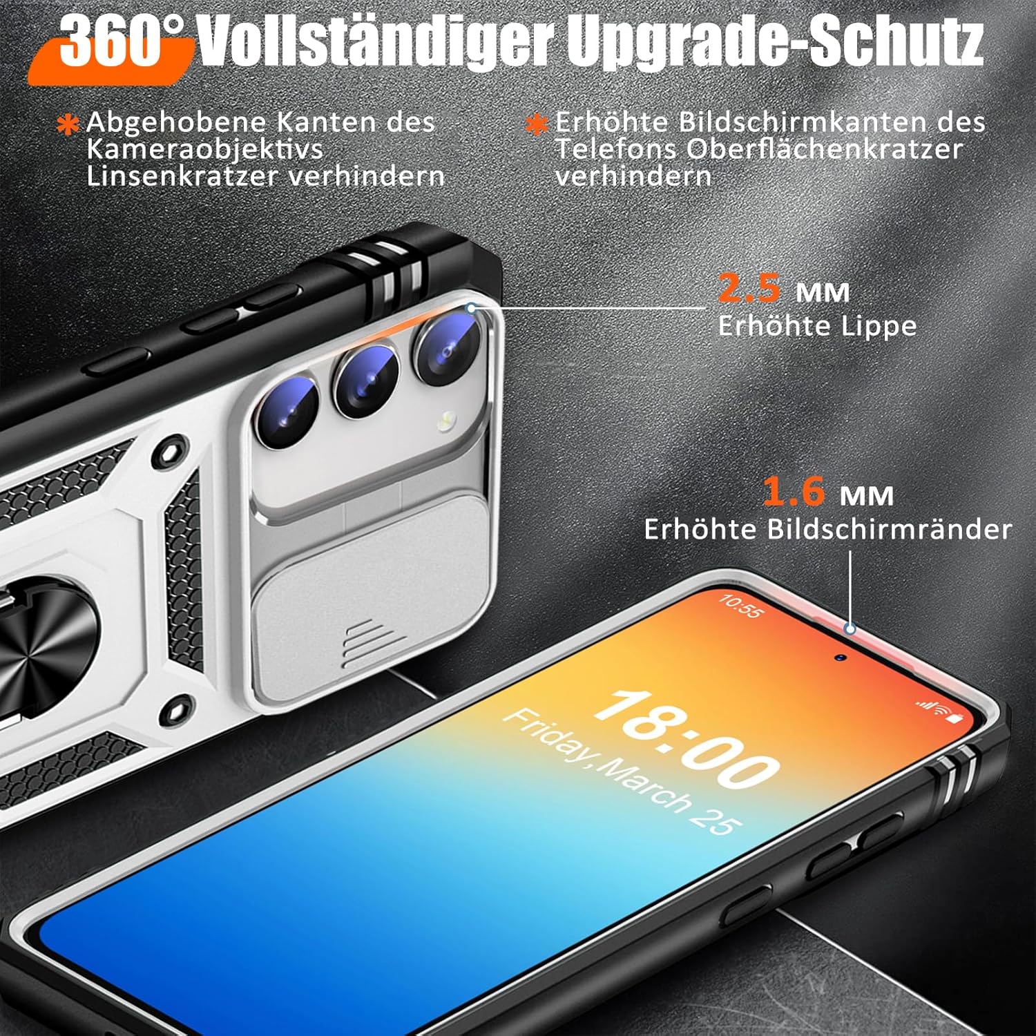 • Защита от военен клас: калъфът за Galaxy S25 използва уникален TPU с ръбове в комбинация с вградени PC 2-в-1 затваряния, за да предпази телефона ви от падания, драскотини и удари. Защитата от военен клас с технология с въздушна възглавница осигурява цялостна защита за вашето оборудване. Дизайн с плъзгач на обектива: Повдигната рамка за защита на камерата. Капачката покрива обектива и го предпазва от прах и драскотини.