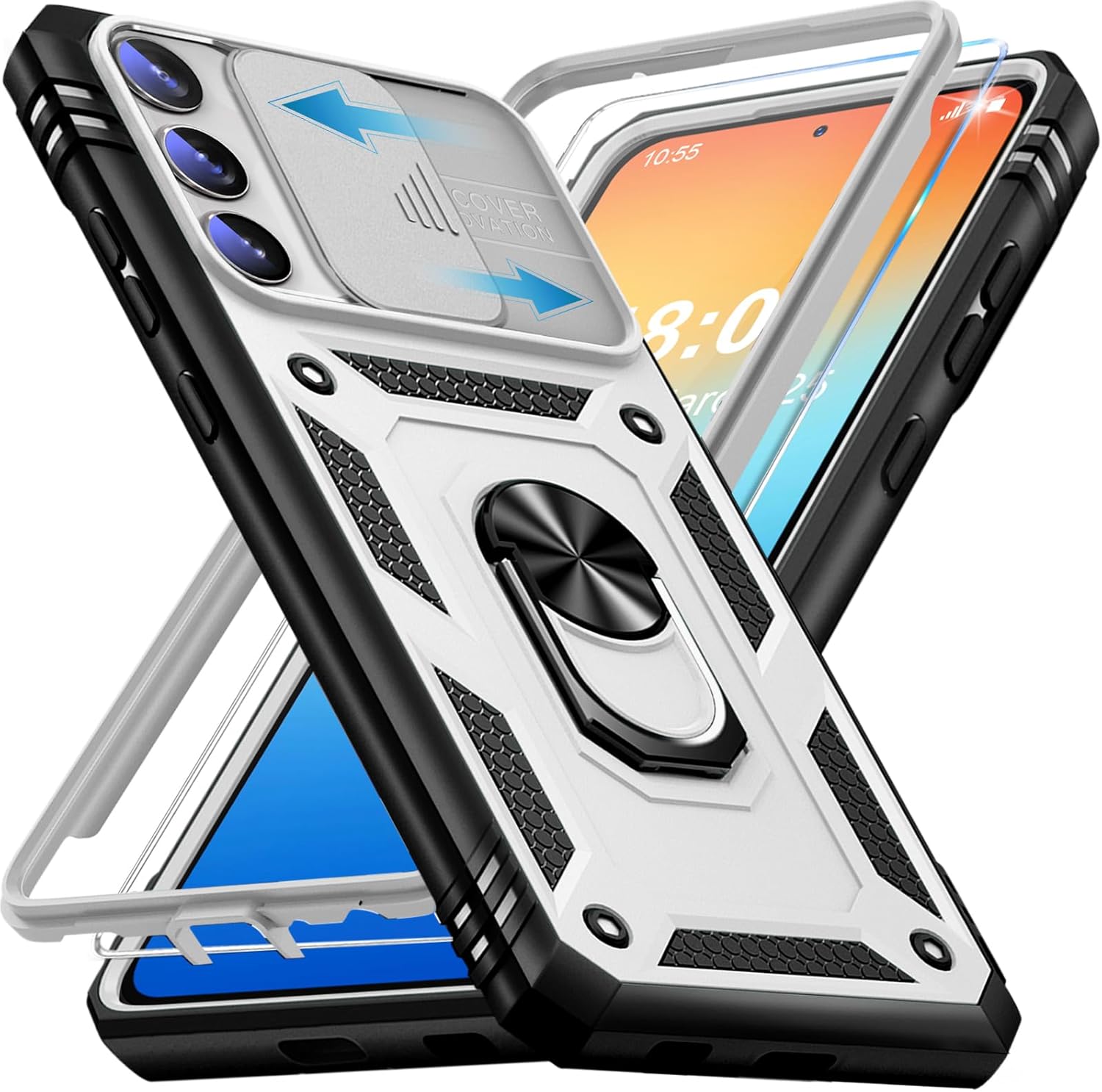 Калъф за мобилен телефон Giyer за Samsung Galaxy S23 5G с протектор за екрана, защитен калъф за Galaxy S23 5G със защита на камерата, въртящ се на 360° метален пръстен, стойка, удароустойчива броня за S23 5G 6.1 инча