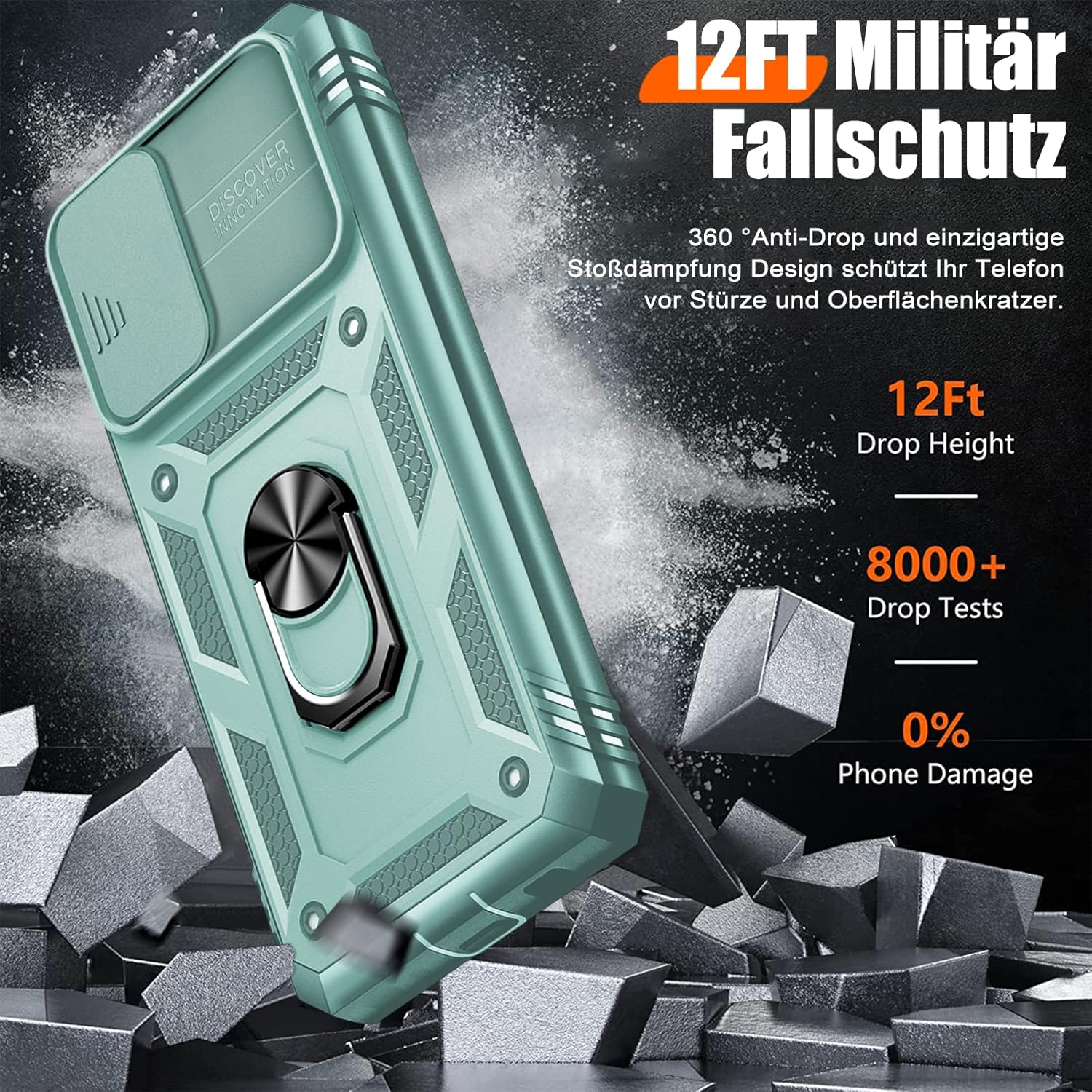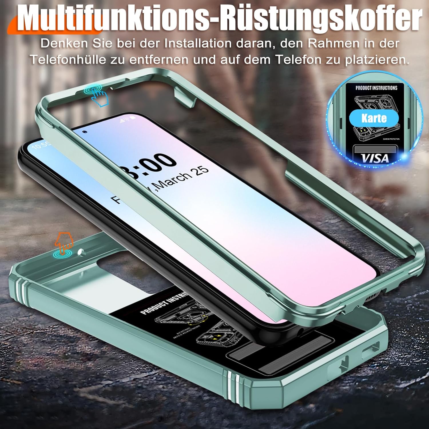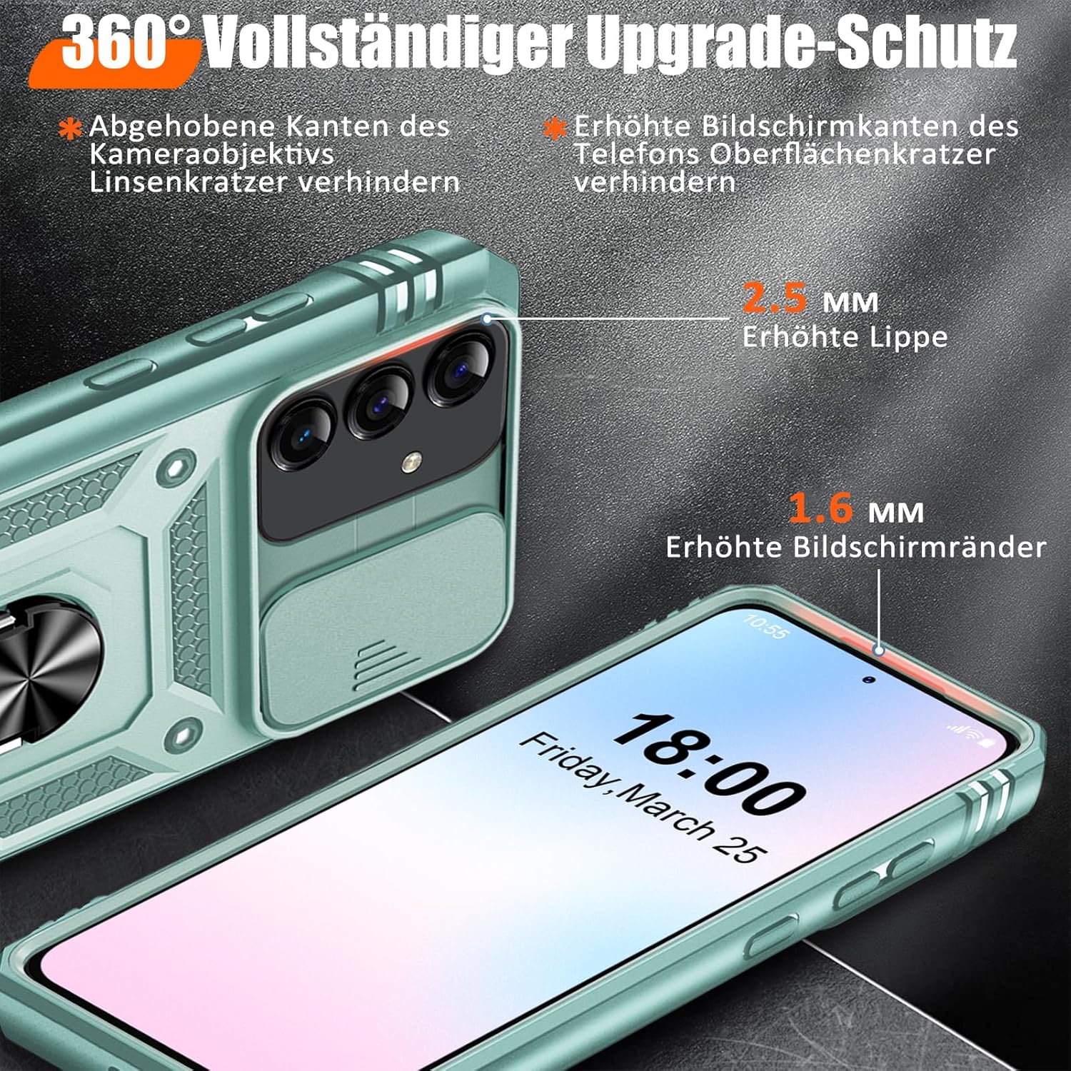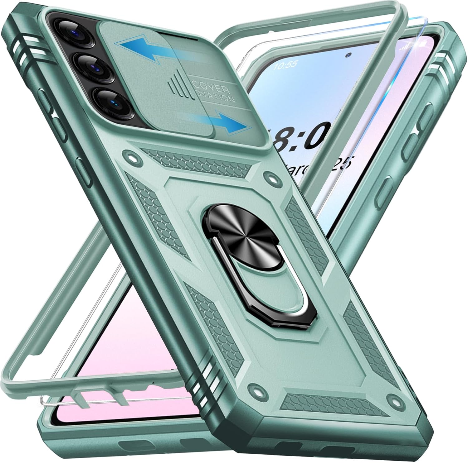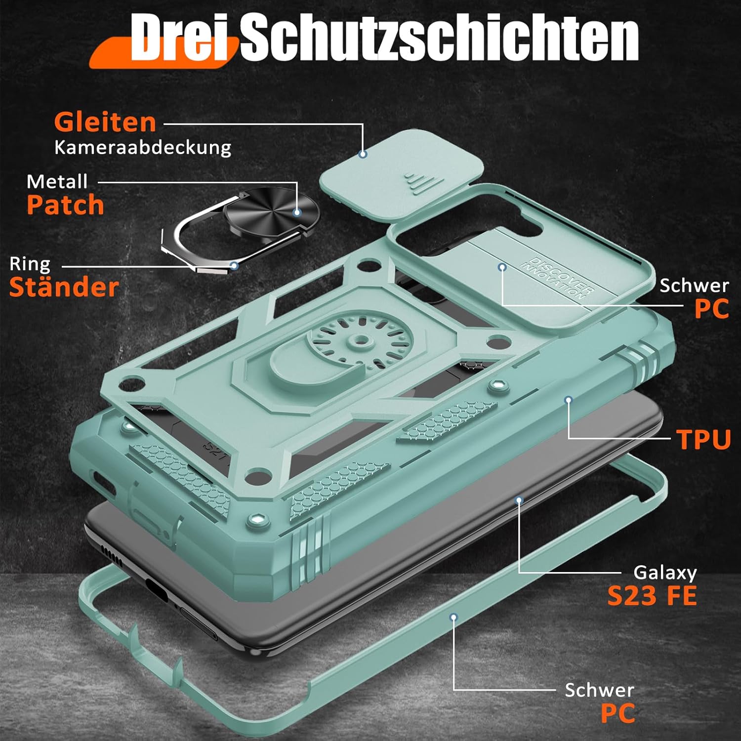 Калъф за мобилен телефон Giyer за Samsung Galaxy S23 FE 5G с протектор за екрана, защитен калъф S23 FE със защита на камерата, слот за карта, 360° метален пръстен, стойка, удароустойчив калъф за Samsung S23 FE
