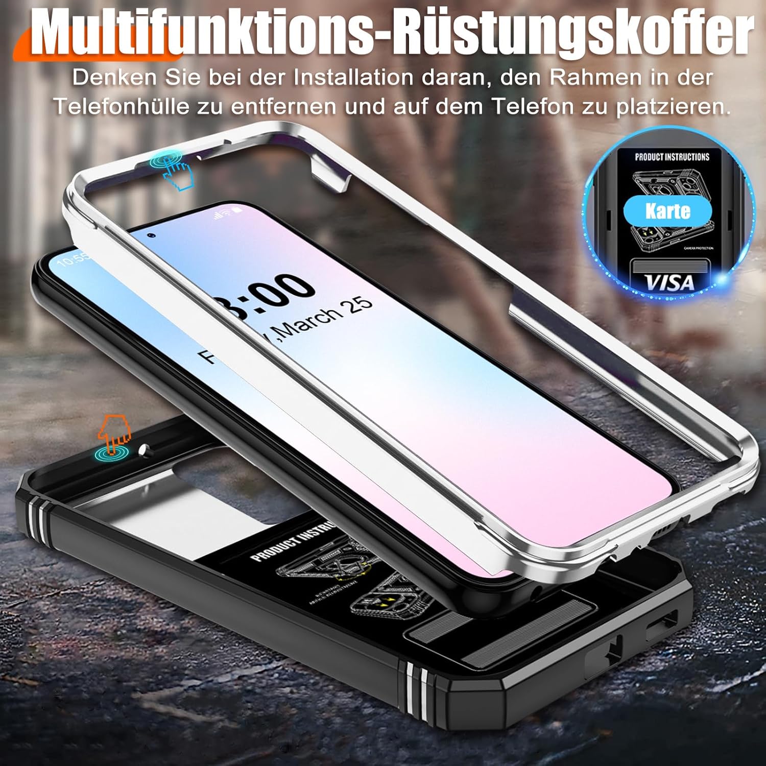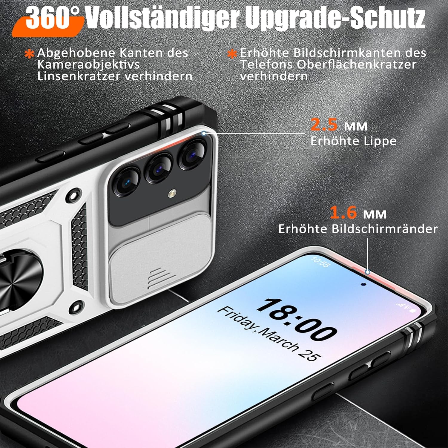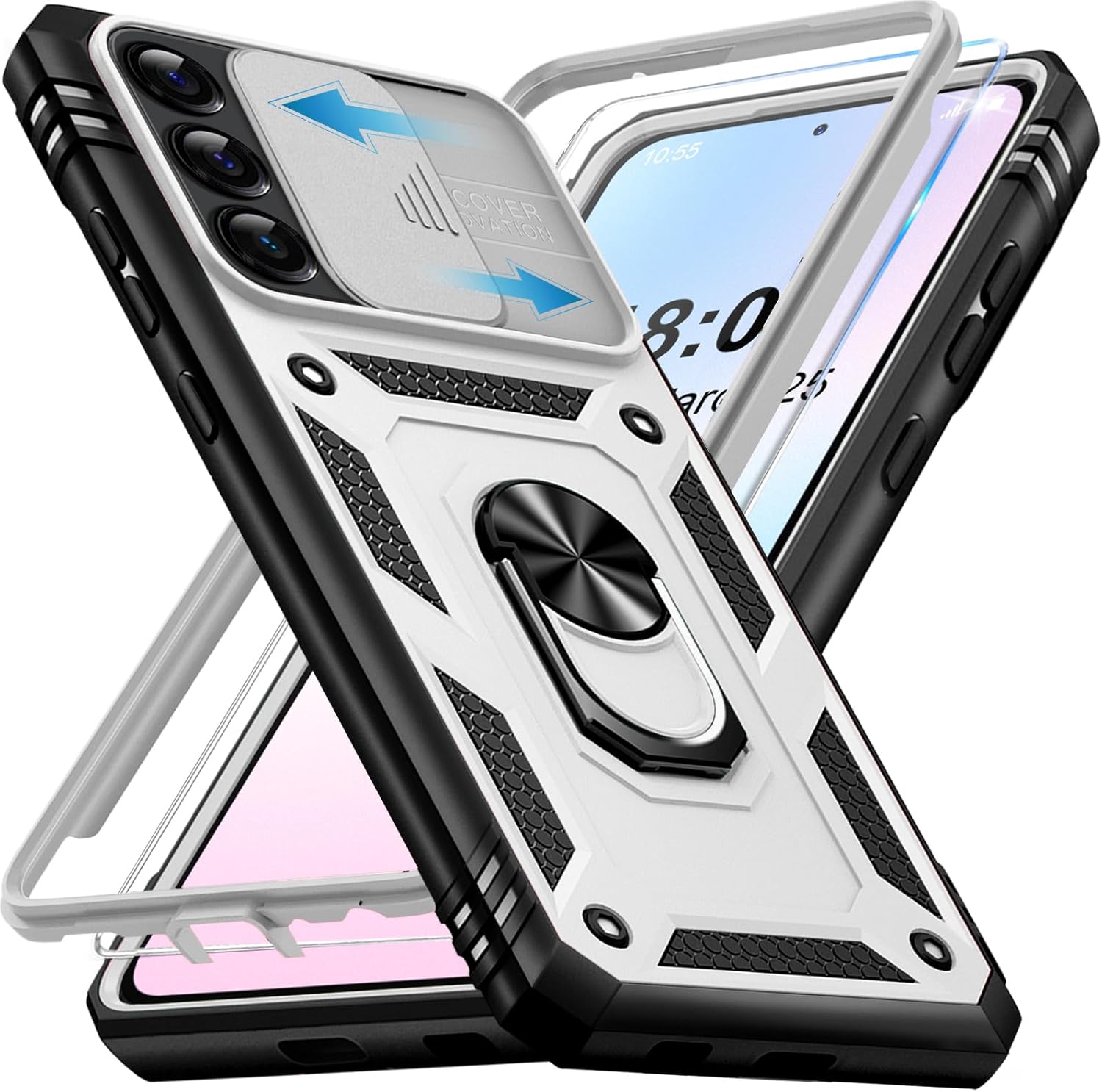 Калъф за мобилен телефон Giyer за Samsung Galaxy S23 FE 5G с протектор за екрана, защитен калъф S23 FE със защита на камерата, слот за карта, 360° метален пръстен, стойка, удароустойчив калъф за Samsung S23 FE