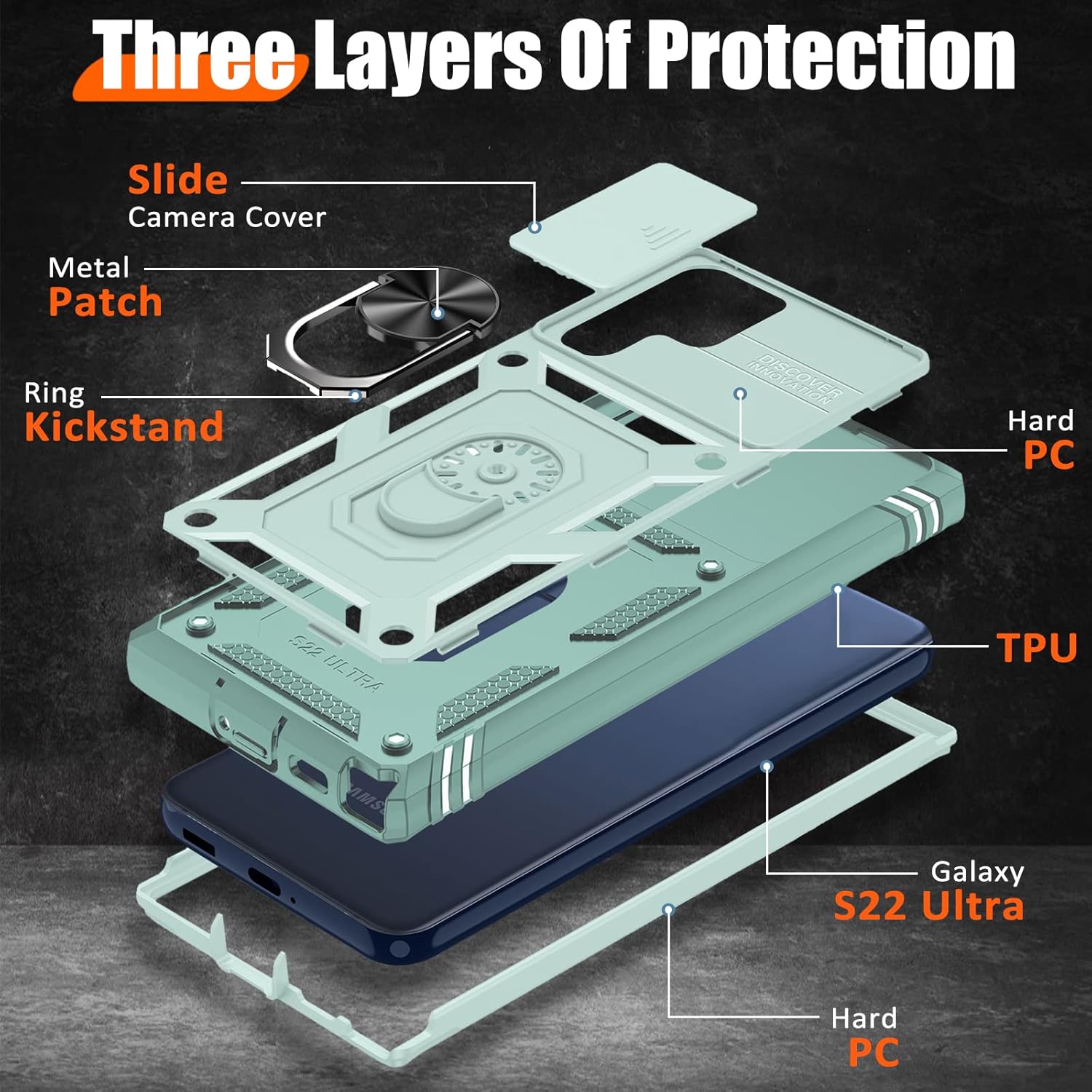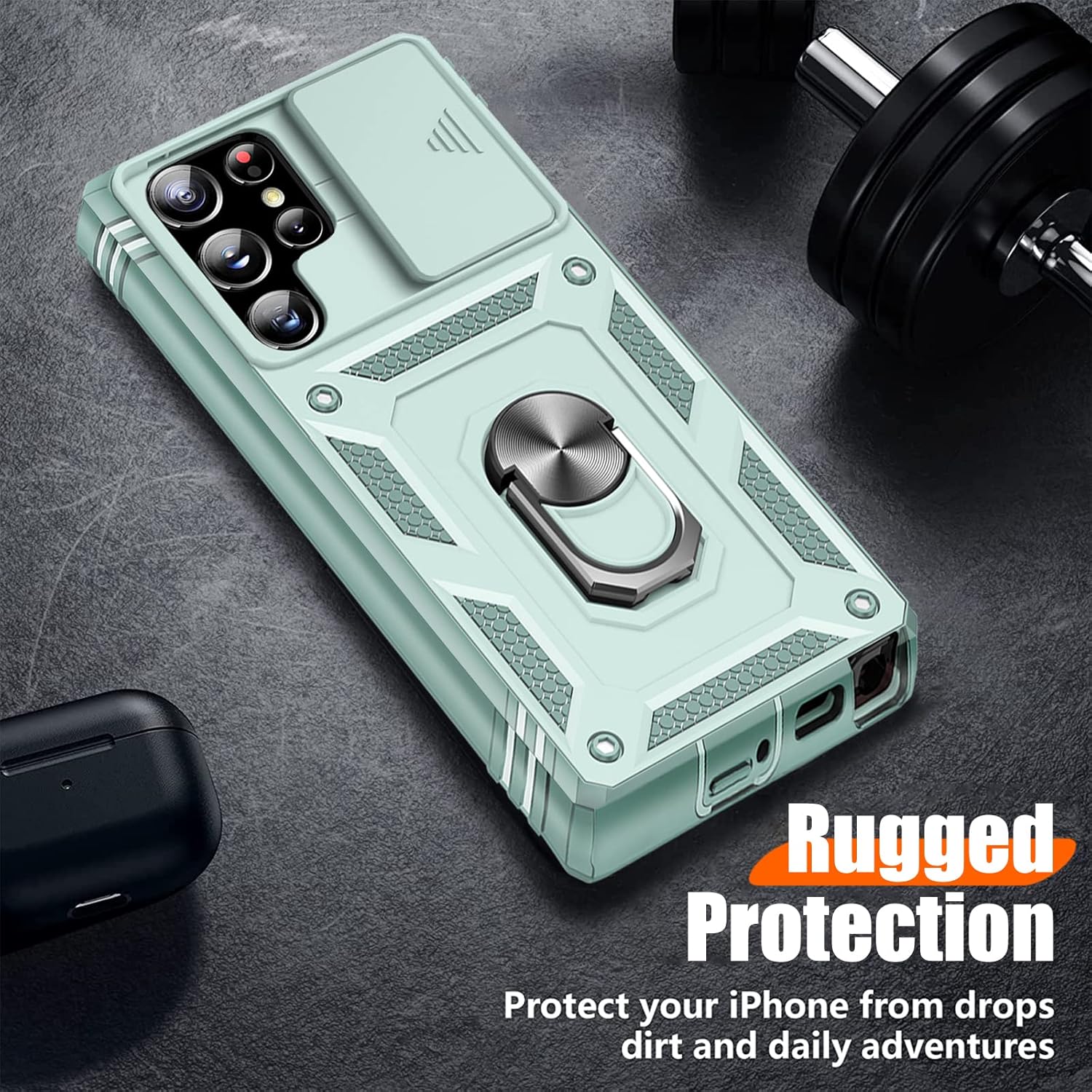Калъф за мобилен телефон Giyer за Samsung Galaxy S23 Ultra 5G, защитен калъф за Galaxy S23 Ultra 5G със защита на камерата, въртяща се на 360° метална стойка с пръстен, удароустойчив калъф за S23 Ultra 5G 6.8 инча