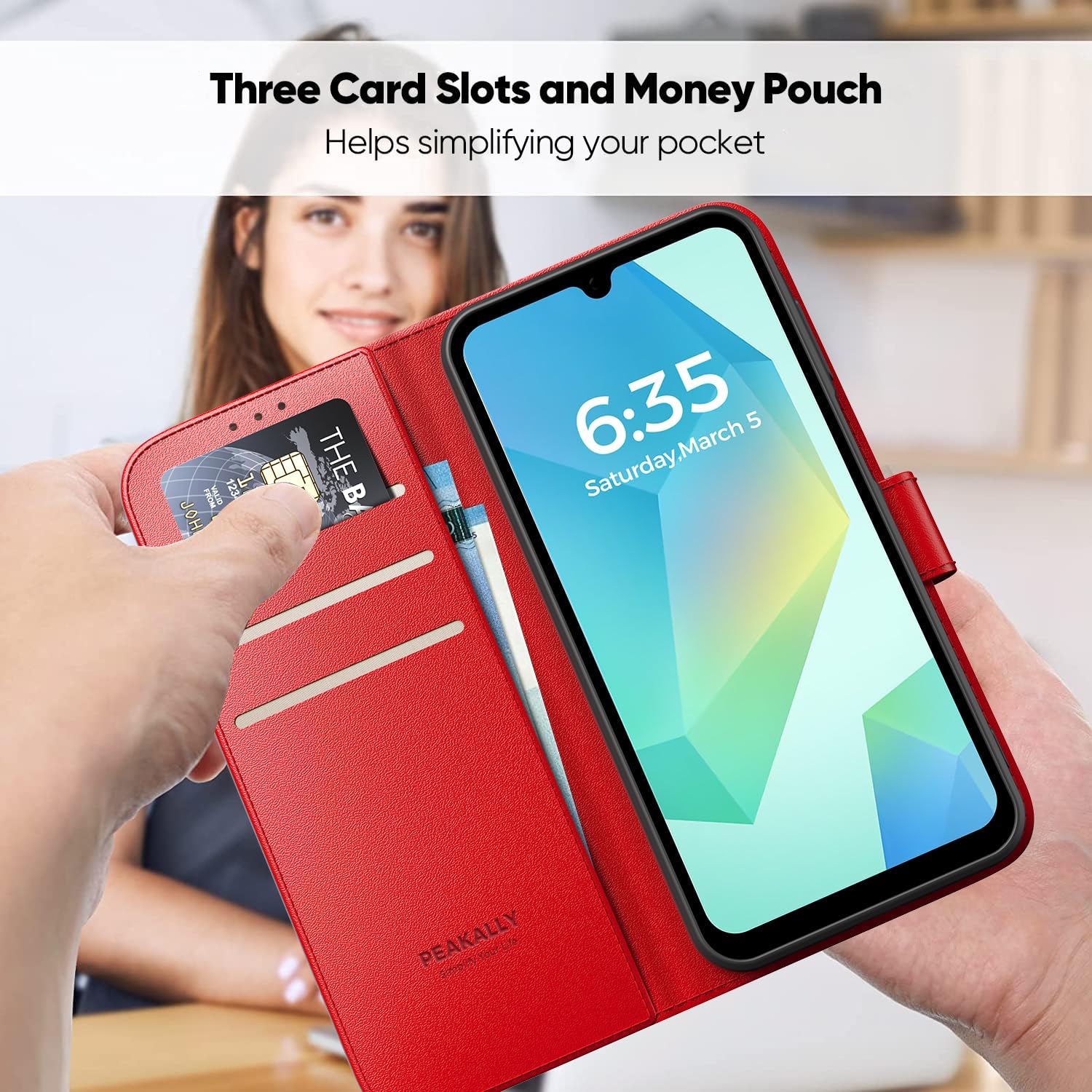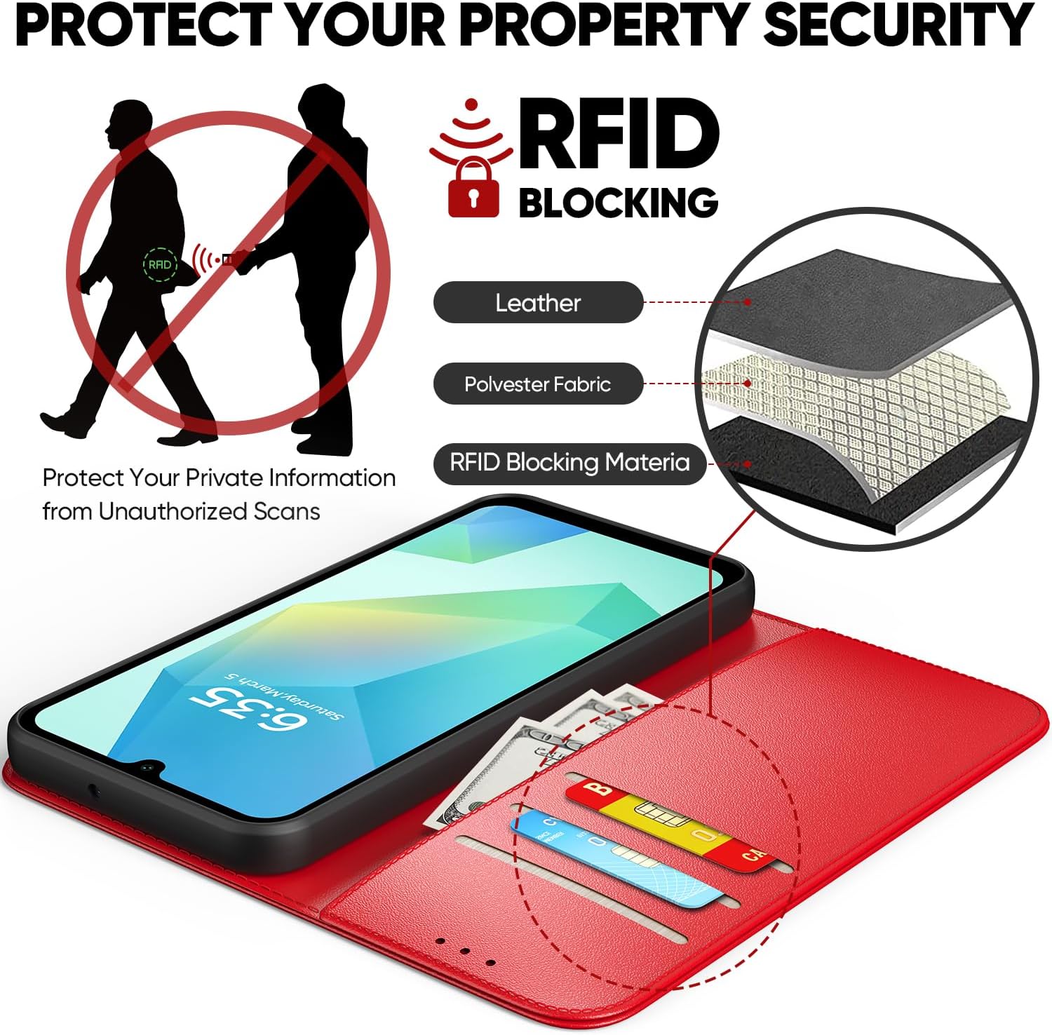• RFID защита и слот за карта: Подходящ за калъф за мобилен телефон Samsung Galaxy A16, вътре има 3 слота за карти и 1 отделение за портфейл. В същото време е въведена подобрена анти-RFID технология. Съхранявайте кредитни карти, визитки и пари в брой. Лесен за употреба без търсене.