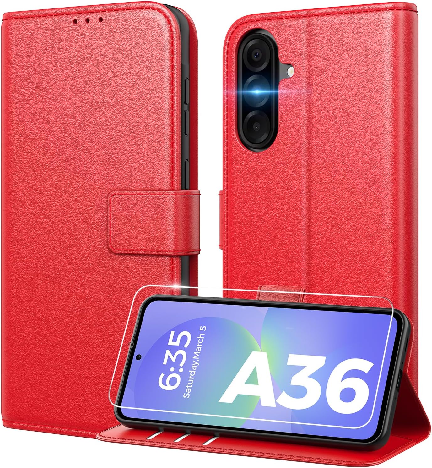 • Съвместими модели: съвместим само със Samsung Galaxy A16 5G / A16 4G. Моля, потвърдете модела на телефона си преди покупка. Комплектът включва: кожен калъф, съвместим със Samsung Galaxy A16 5G x 1, закалено стъкло x 1