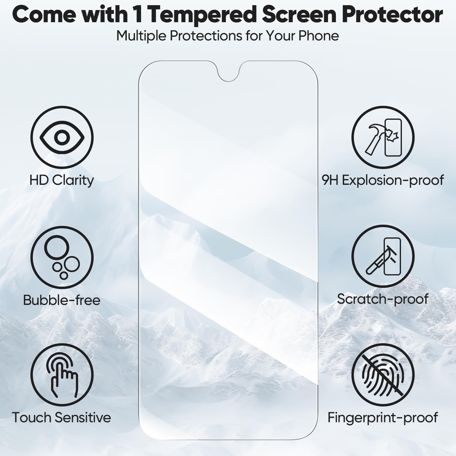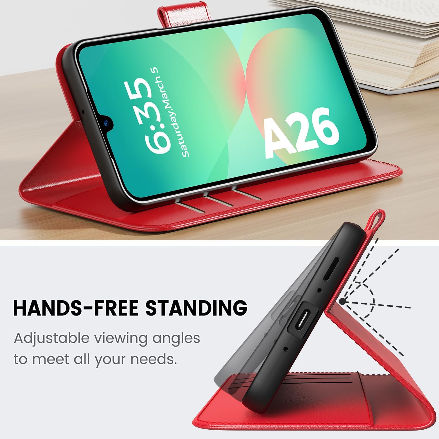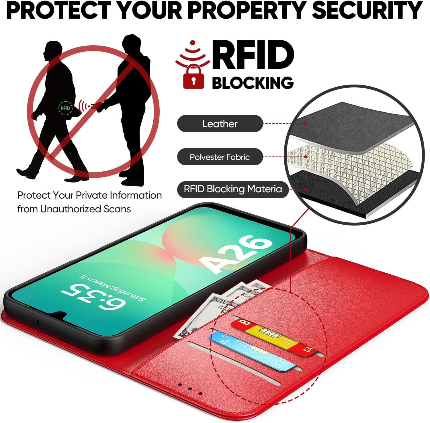 Калъф за мобилен телефон Peakally за Samsung Galaxy A26 5G [С 1 парче закалено стъкло] [Премиум PU кожа] [RFID блокиране] [Слот за карта] [Стойка] Флип калъф за Galaxy A26 5G / A26 4G