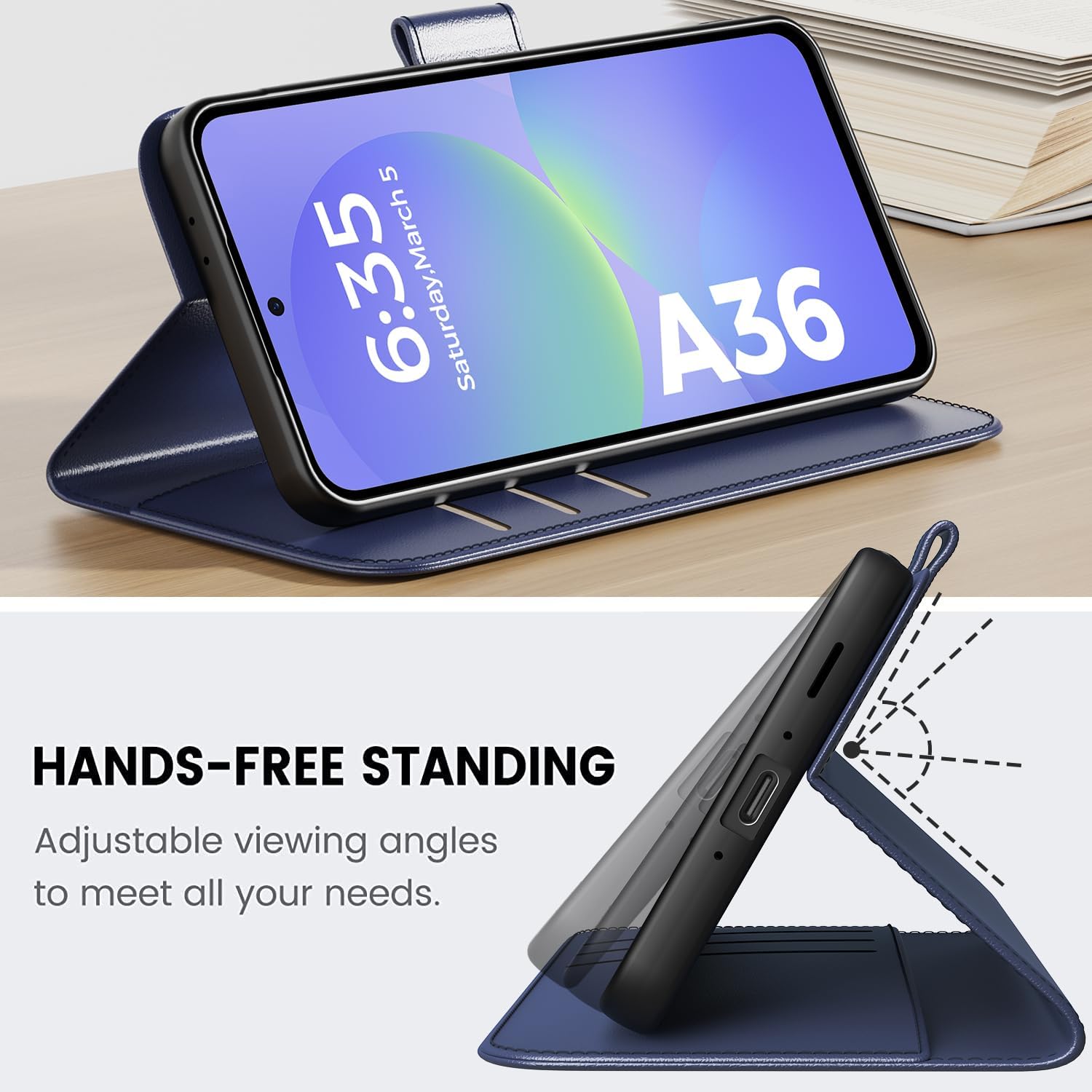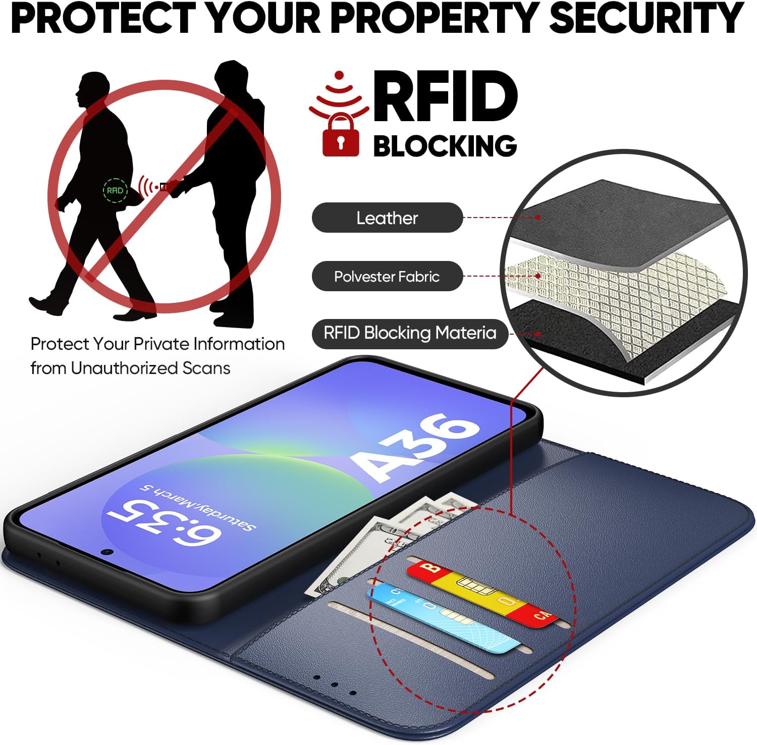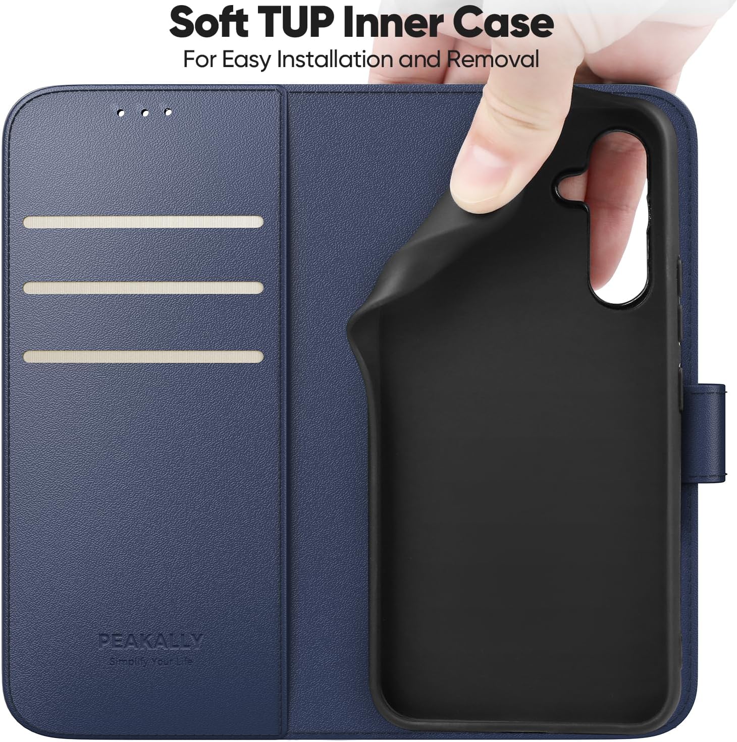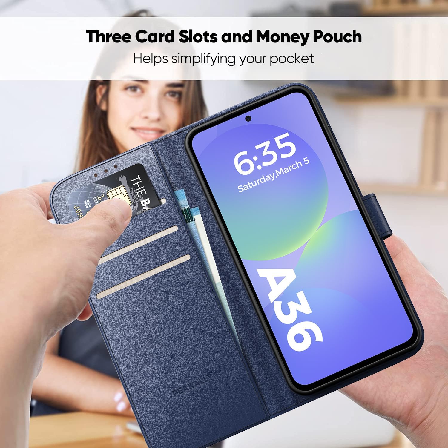 Калъф за мобилен телефон Peakally за Samsung Galaxy A36 5G [С 1 парче закалено стъкло] [Премиум PU кожа] [RFID блокиране] [Слот за карта] Флип калъф, съвместим с Galaxy A36 5G / A36