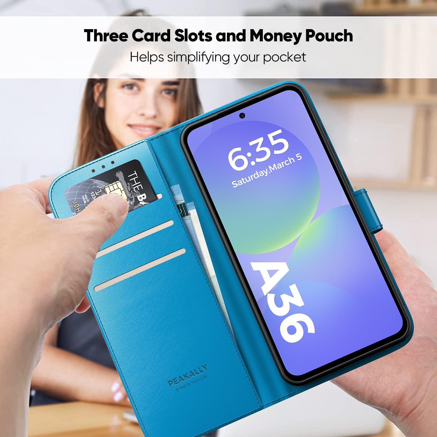 Калъф за мобилен телефон Peakally за Samsung Galaxy A36 5G [С 1 парче закалено стъкло] [Премиум PU кожа] [RFID блокиране] [Слот за карта] Флип калъф за Galaxy A36 5G / A36 4G - ярък