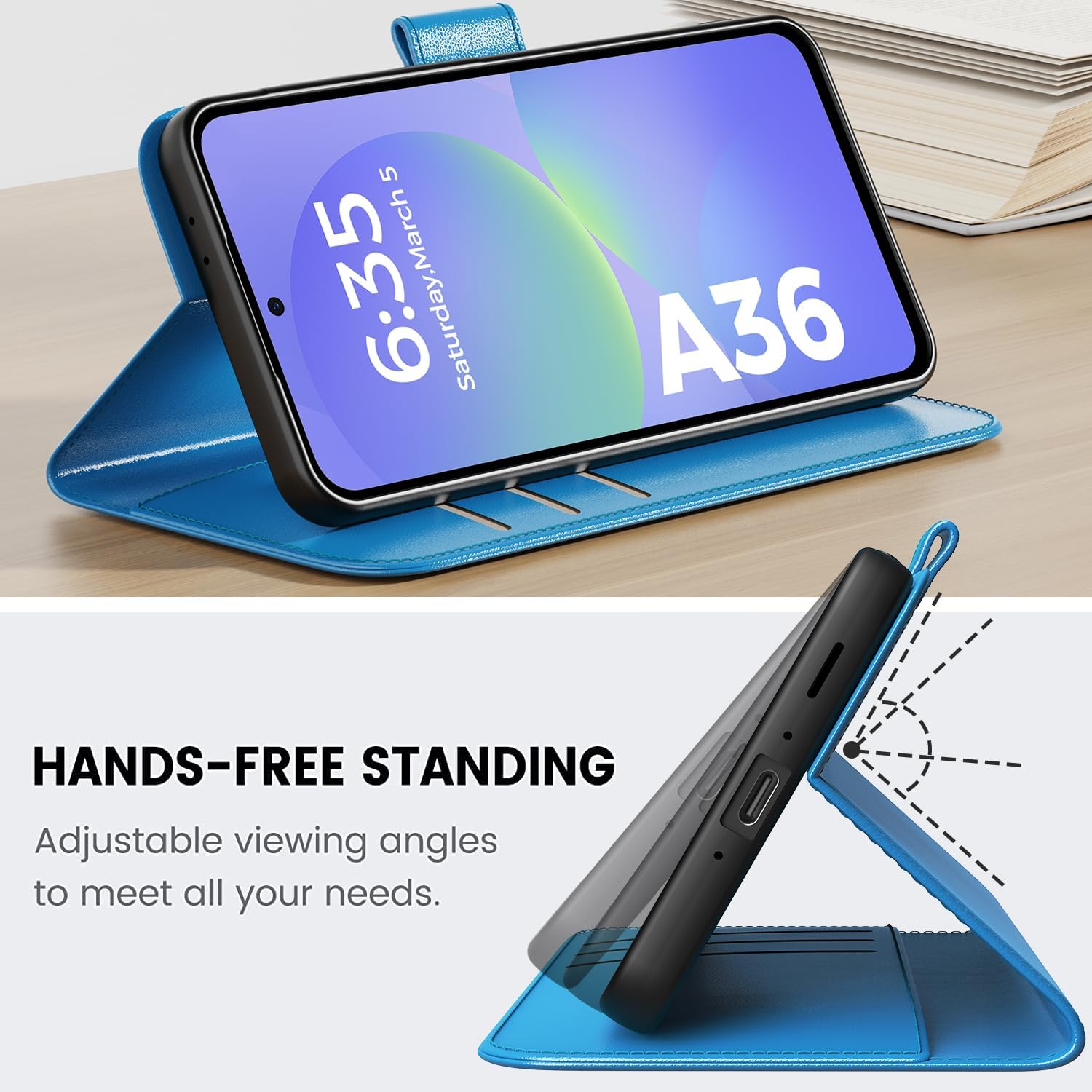 • [360° защита] Външната част на флип калъфа за Samsung Galaxy A16 5G е изработена от издръжлива PU кожа и осигурява удобно докосване и максимална защита от прах и драскотини. Вътрешната обвивка е изработена от TPU силикон, който е с висока устойчивост на удар и предотвратява надрасквания и драскотини. Осигурява ви максимална защита за вашия мобилен телефон.