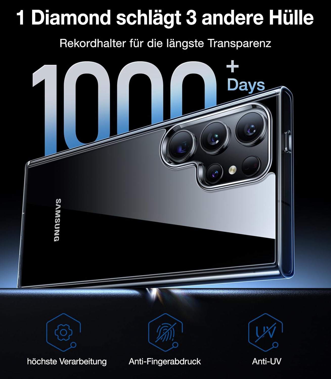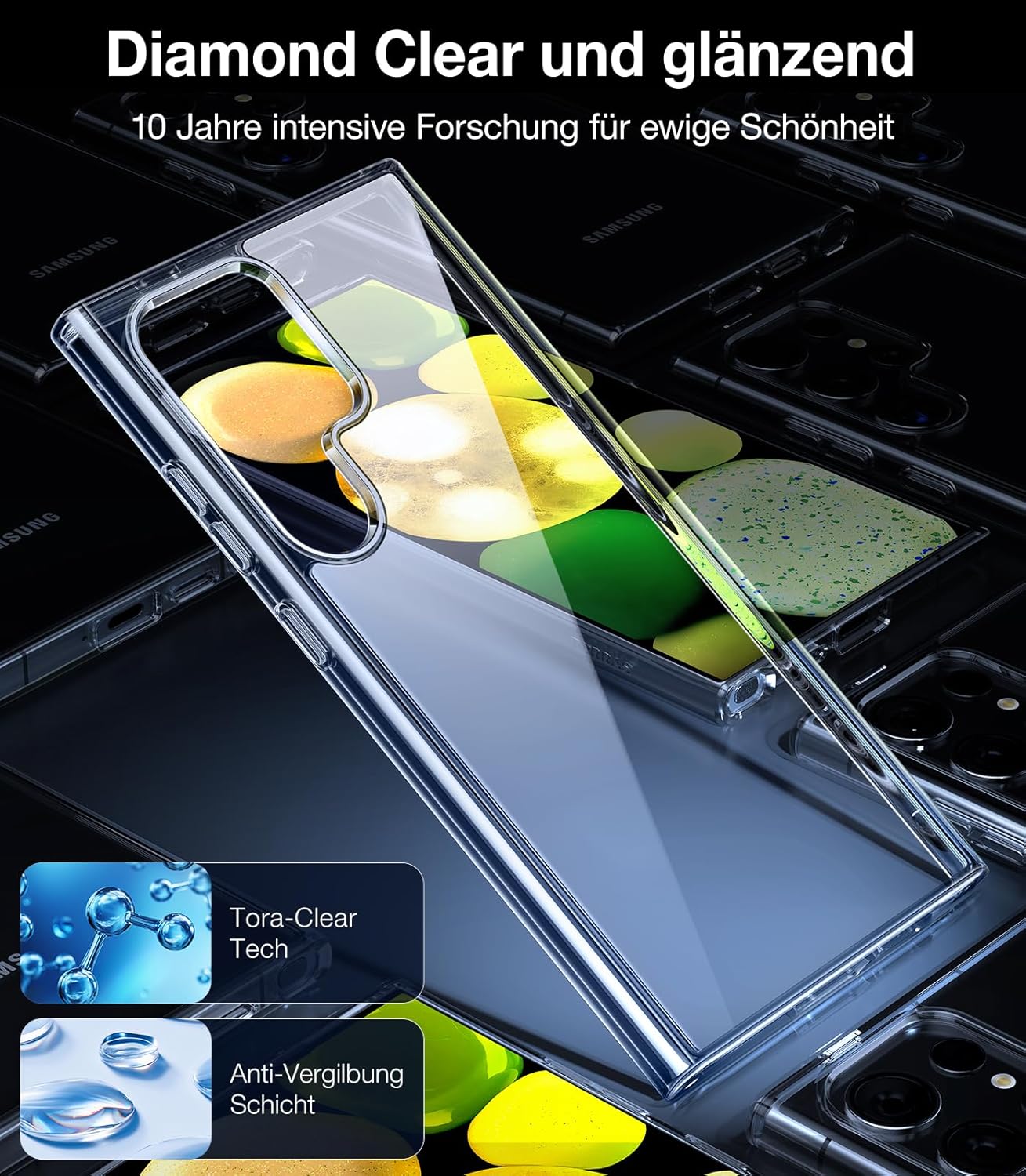 Калъф за мобилен телефон TORRAS Diamond Series за Samsung Galaxy S24 Ultra 5G, удароустойчив, устойчив на надраскване, стилен външен вид, прозрачен, №1 против пожълтяване, сертифициран от военни производители.