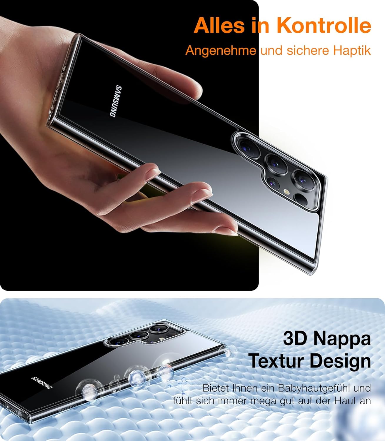 • Луксозно усещане, ексклузивно регулиране: всяко докосване напомня за интериора на луксозен спортен автомобил. Този аксесоар за S25 Ultra е с подобрена 3D напа структура с фино лазерно гравиране за особено деликатен захват. Гърбът е покрит с олеофобно и хидрофобно нано покритие, което предотвратява пръстови отпечатъци и замърсявания и запазва калъфа да изглежда като нов. Това ще защити вашия Samsung Galaxy S25 Ultra със стил и лукс.