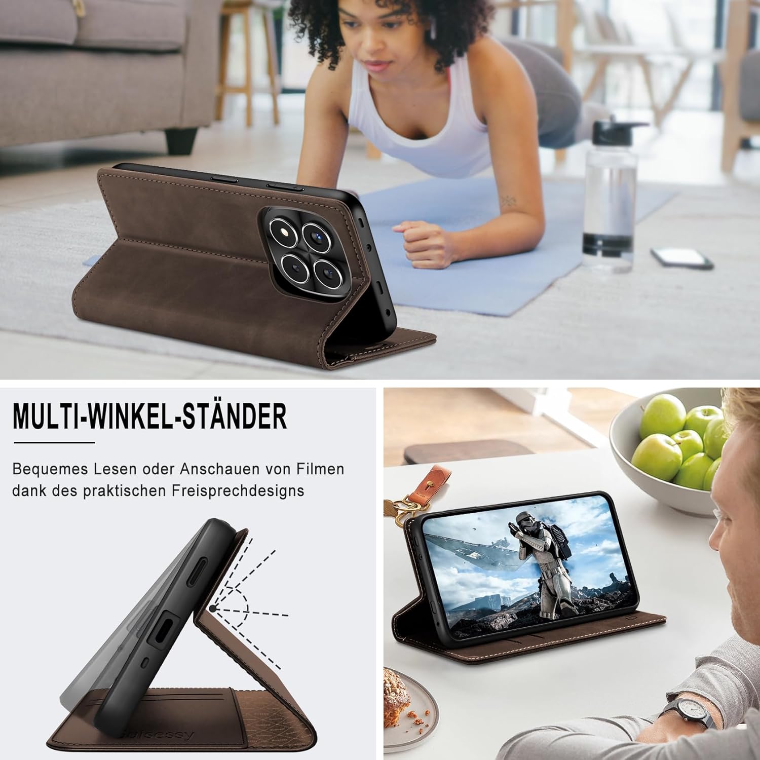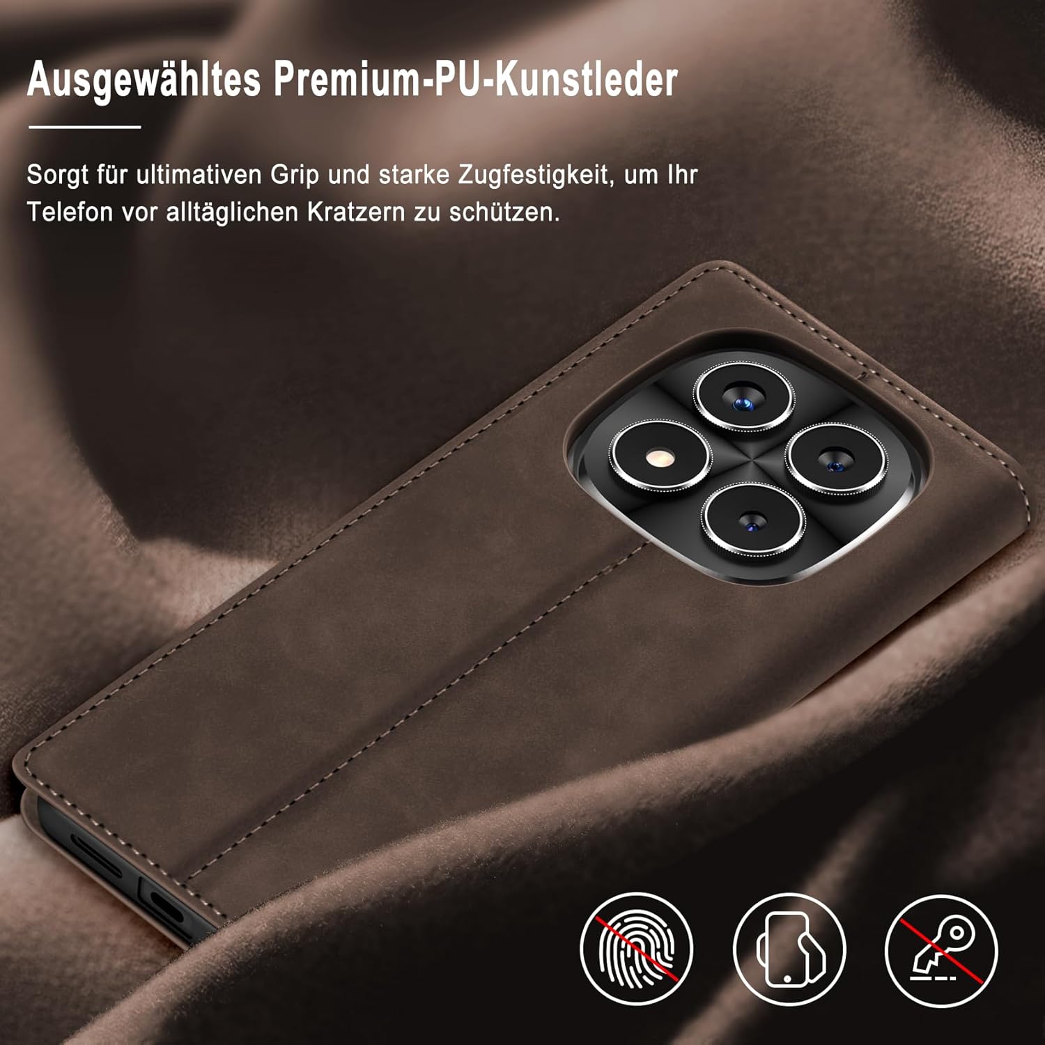 • Премиум PU кожа: Този калъф-портфейл за Samsung Galaxy S25 FE 5G е изработен от висококачествена изкуствена кожа PU и мек и гладък силиконов TPU. Елегантен външен вид, качествената PU има деликатен захват и силна якост на опън, но също така е удароустойчив и осигурява максимална защита от замърсявания, удари и драскотини, осигурявайки отлична 360-градусова всестранна защита.