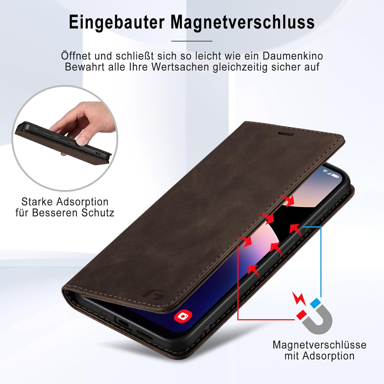 • Вградено магнитно закопчаване: Калъфът за мобилен телефон Guisessy за Samsung Galaxy S25 FE има вградено магнитно закопчаване, може лесно да се отваря и затваря, прави използването на телефона по-лесно и удобно. Вграденото силно магнитно закопчаване подобрява магнитната връзка, предпазва телефона ви, когато не се използва, като ефективно предотвратява случайно отваряне на калъфа.
