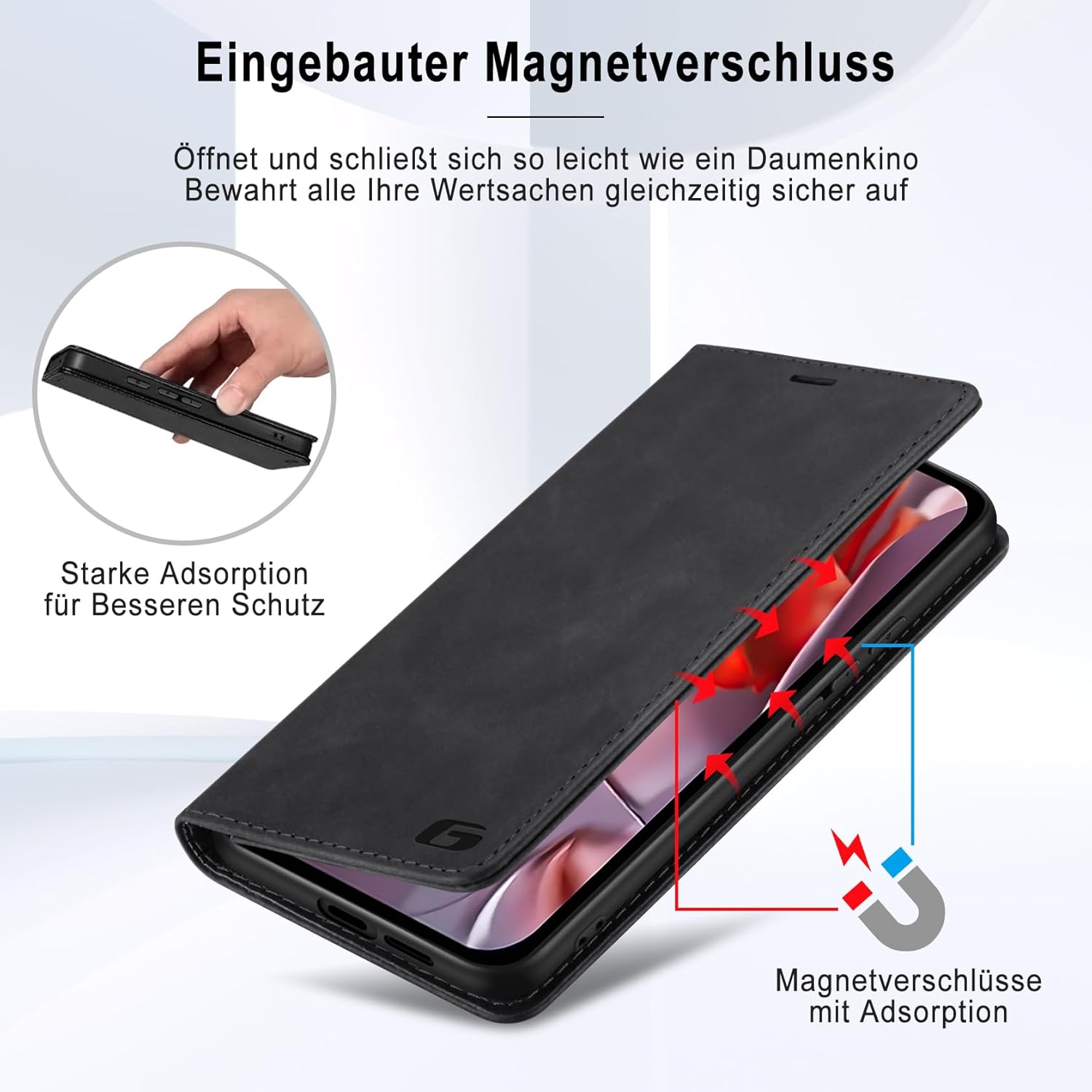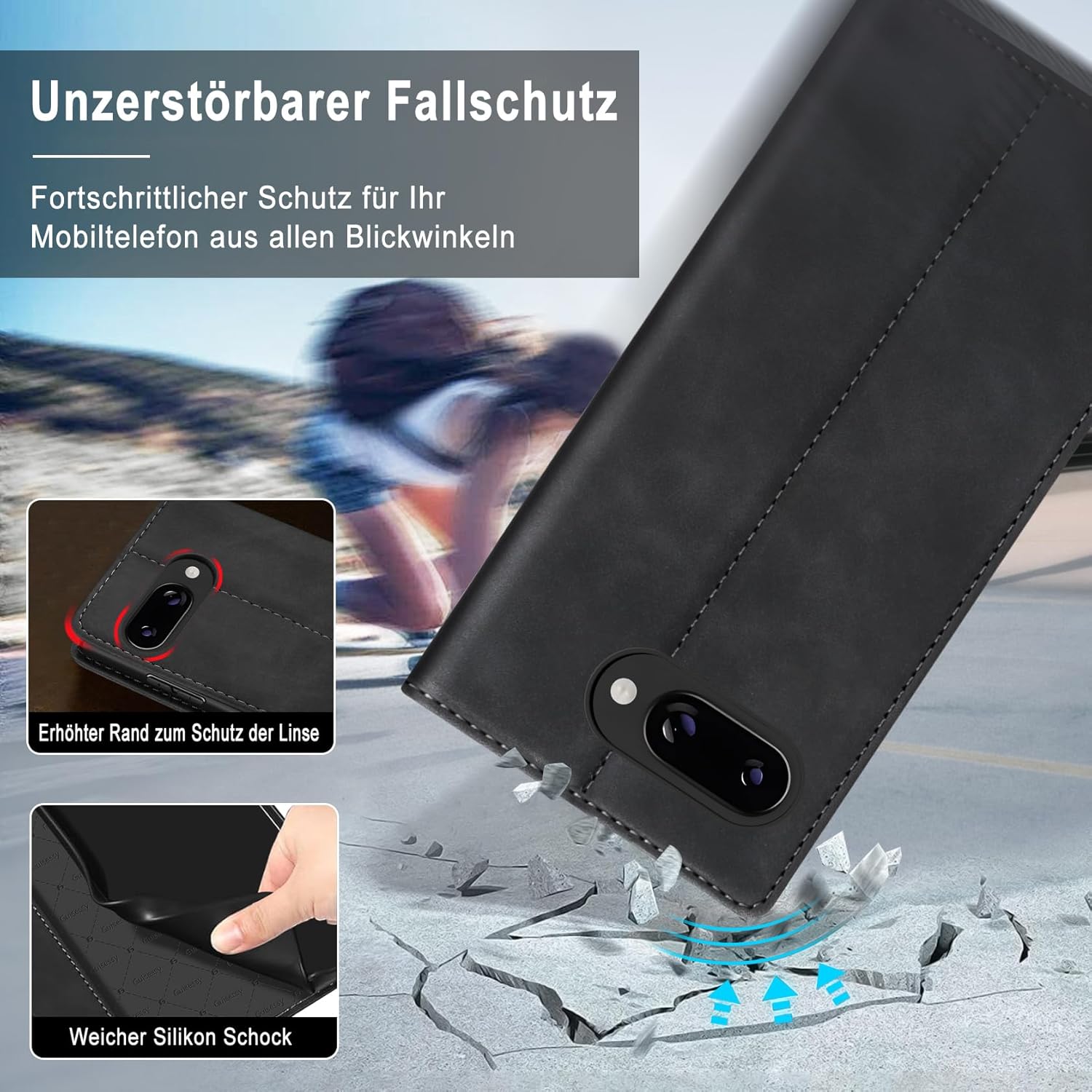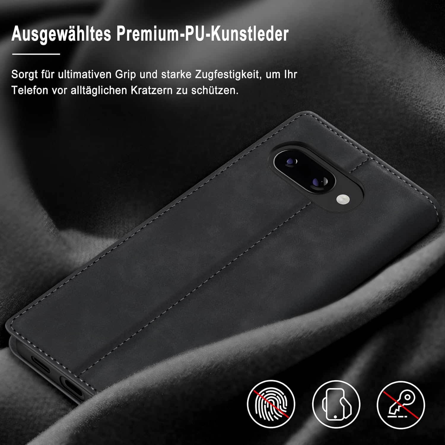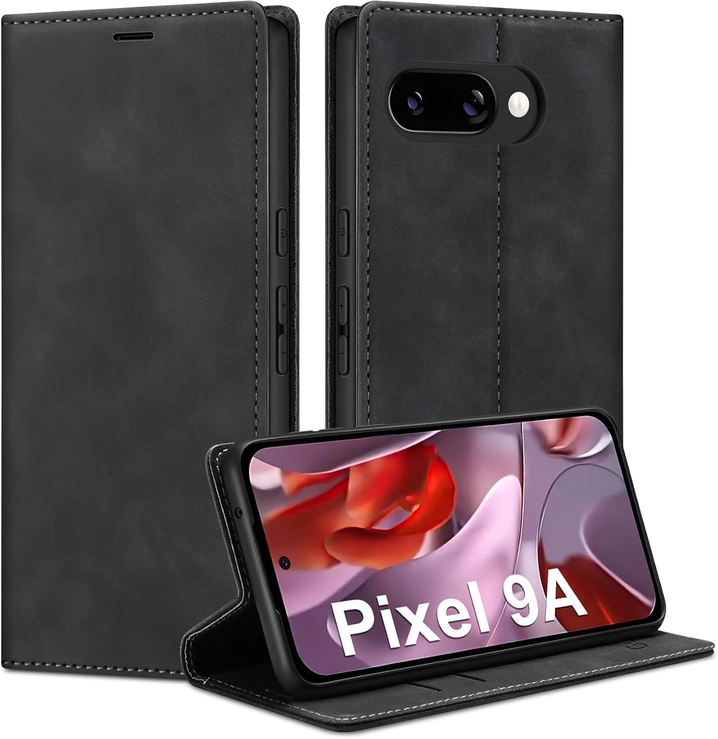 Калъф за мобилен телефон за Google Pixel 9a, кожен, първокласен сгъваем портфейл с магнитен слот за карти, функция стойка, защитен калъф, удароустойчив калъф за Google Pixel 9a, черен