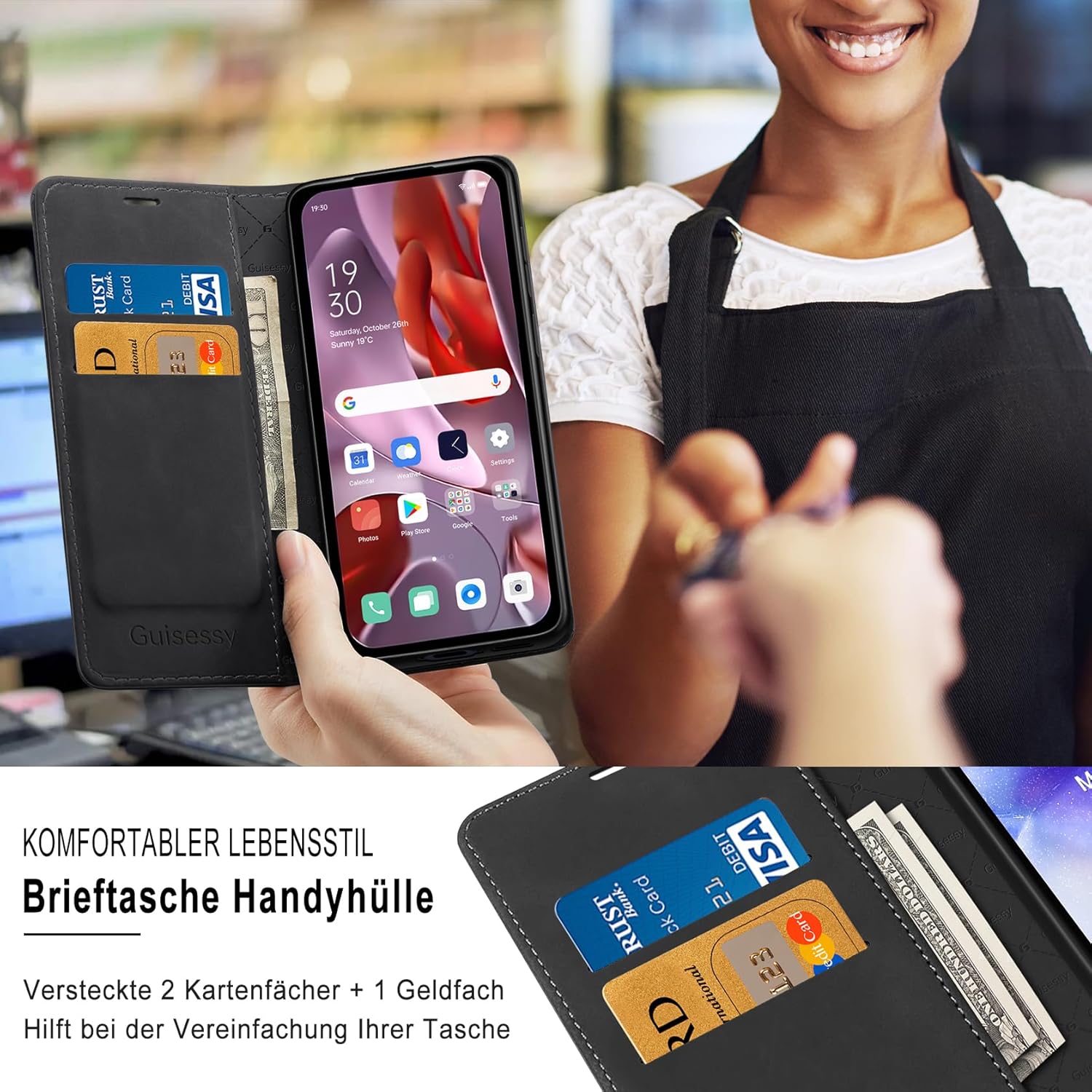 • Вградено магнитно закопчаване: Калъфът за мобилен телефон Guisessy за Samsung Galaxy S25 FE има вградено магнитно закопчаване, може лесно да се отваря и затваря, прави използването на телефона по-лесно и удобно. Вграденото силно магнитно закопчаване подобрява магнитната връзка, предпазва телефона ви, когато не се използва, като ефективно предотвратява случайно отваряне на калъфа.