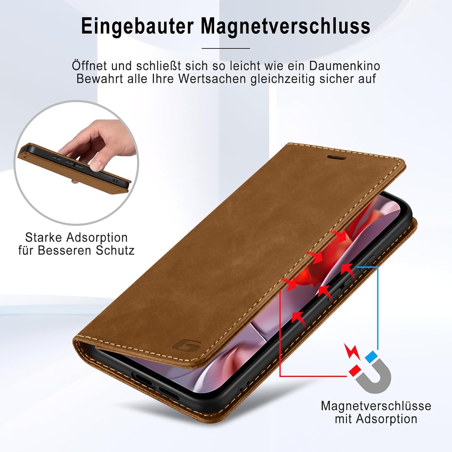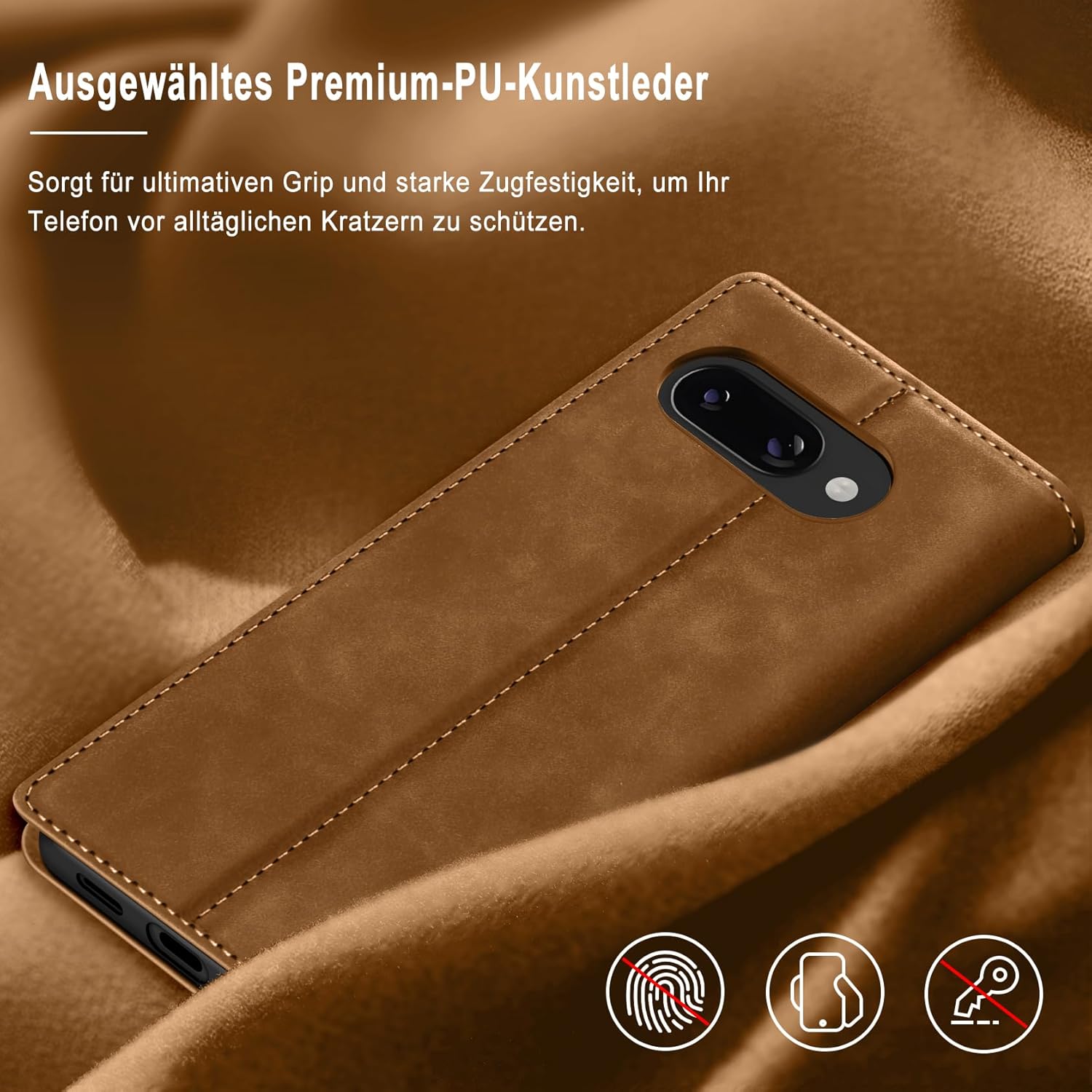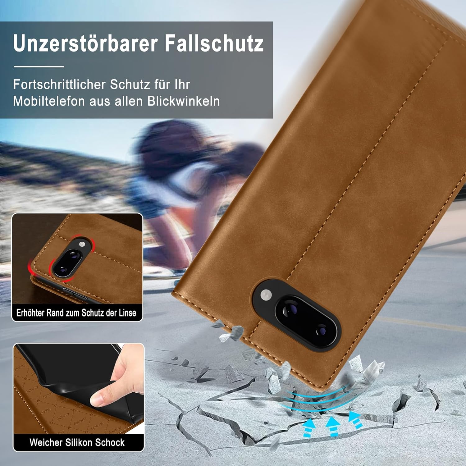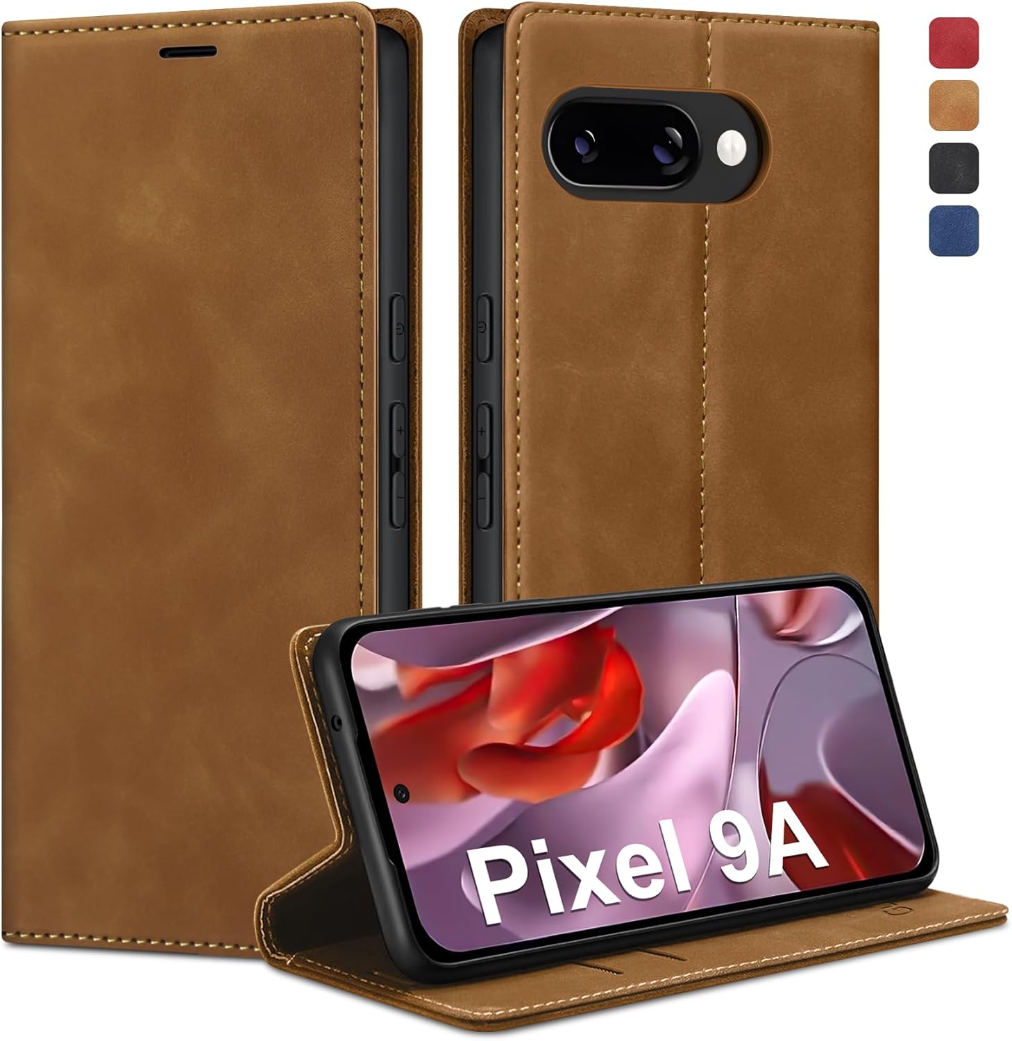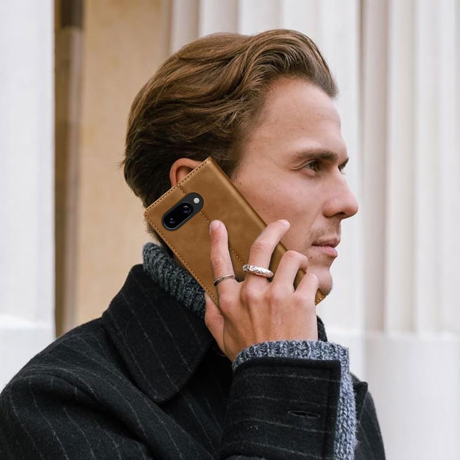 Калъф за мобилен телефон за Google Pixel 9a, кожен, първокласен сгъваем портфейл с магнитен слот за карти, функция стойка, защитен калъф, удароустойчив калъф за Google Pixel 9a, кафяв