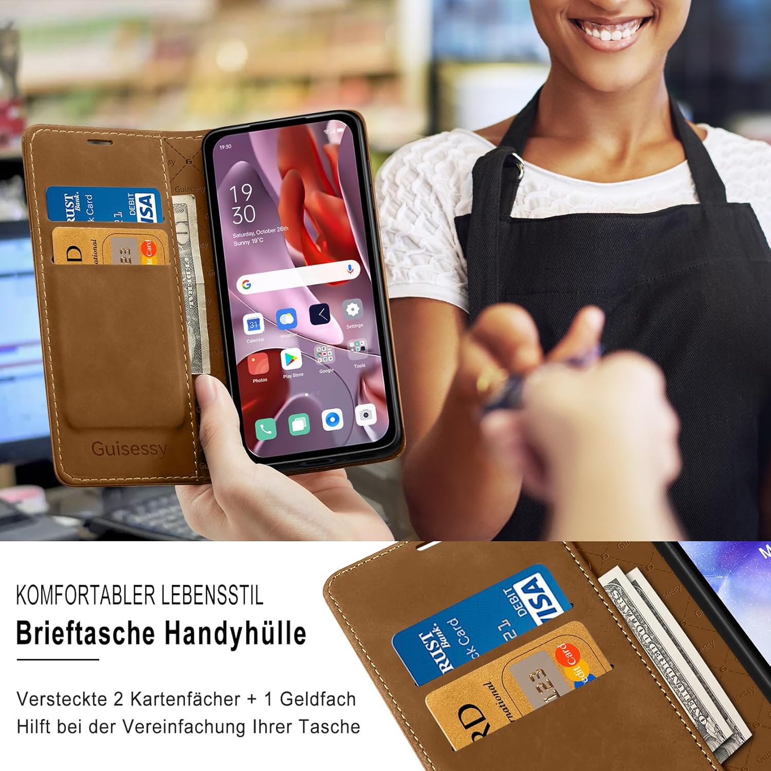 • Вградено магнитно закопчаване: Калъфът за мобилен телефон Guisessy за Samsung Galaxy S25 FE има вградено магнитно закопчаване, може лесно да се отваря и затваря, прави използването на телефона по-лесно и удобно. Вграденото силно магнитно закопчаване подобрява магнитната връзка, предпазва телефона ви, когато не се използва, като ефективно предотвратява случайно отваряне на калъфа.