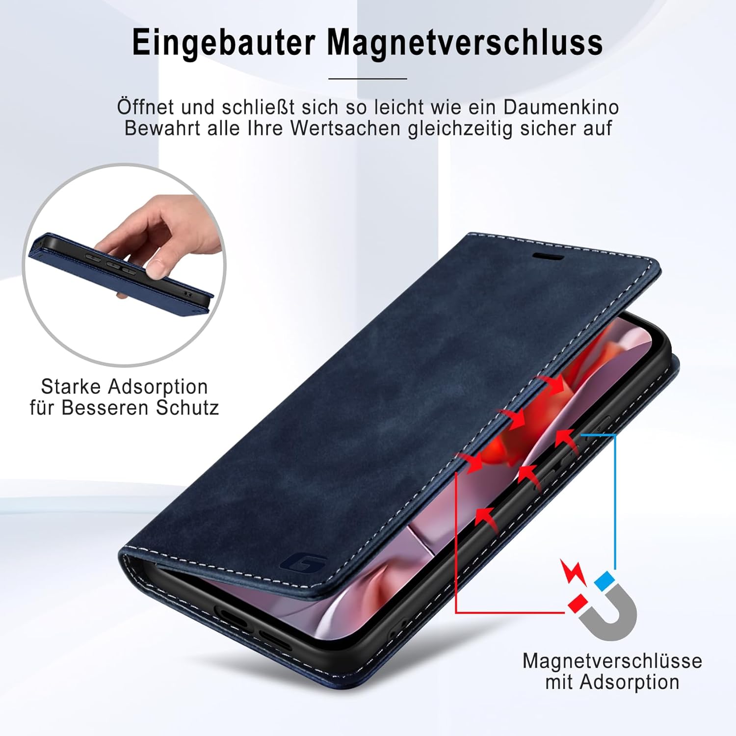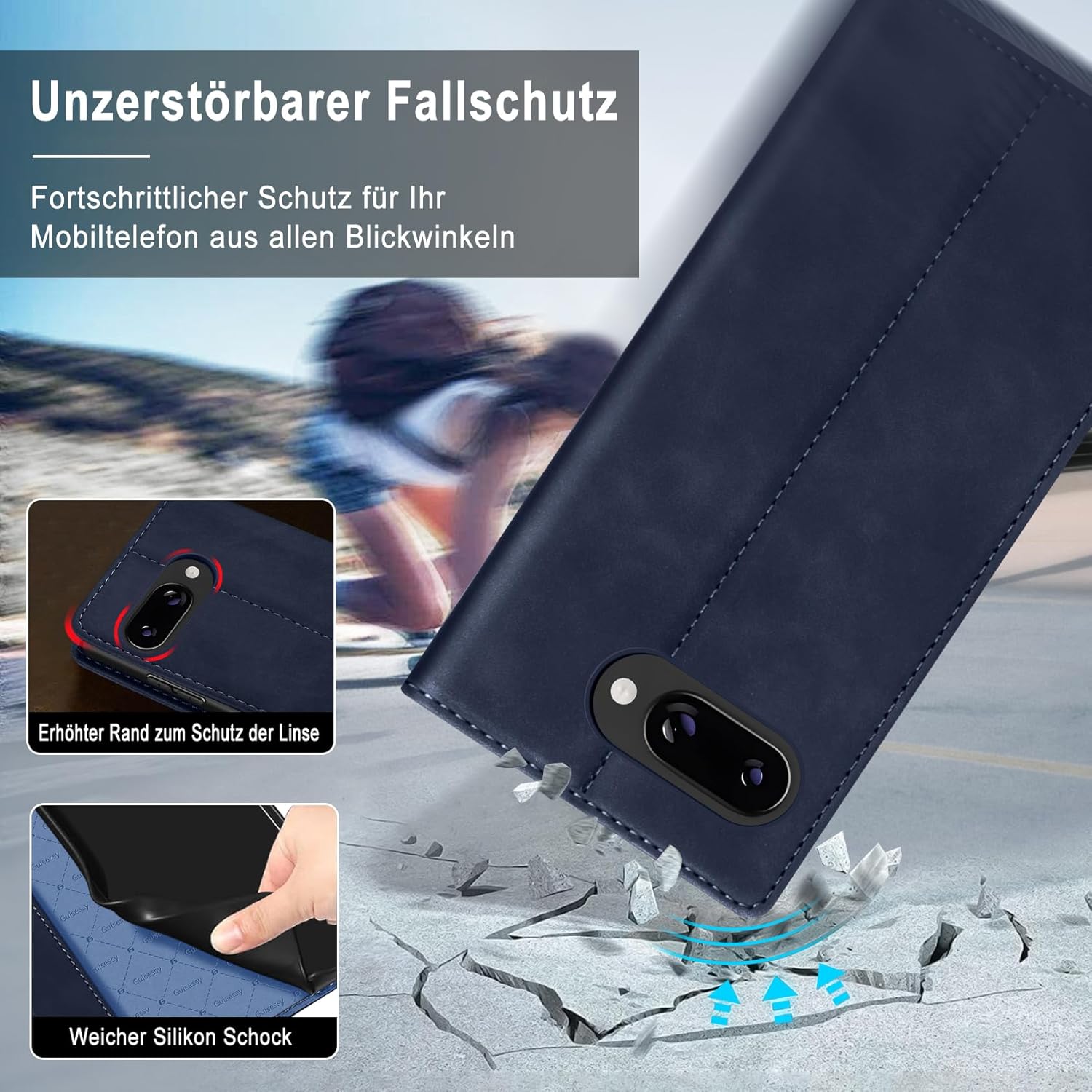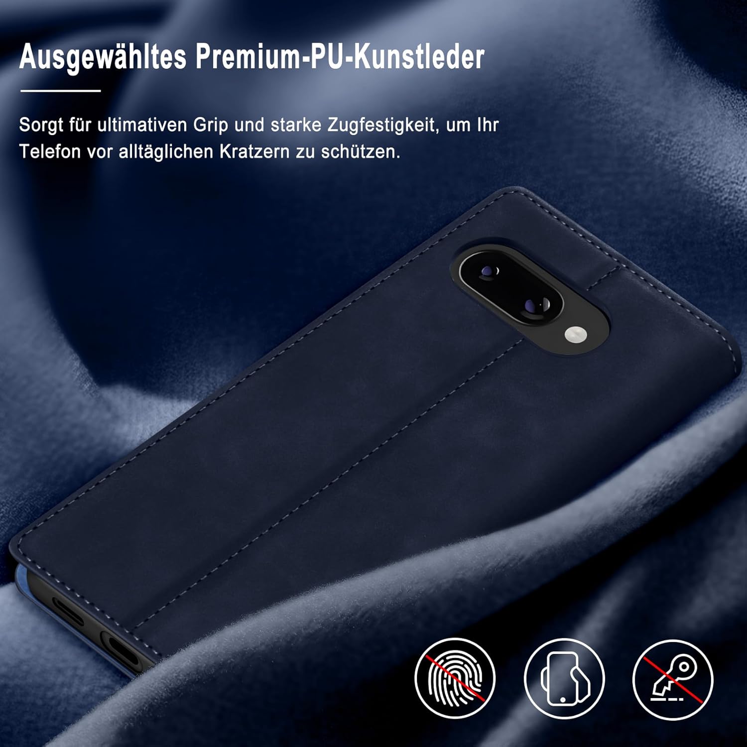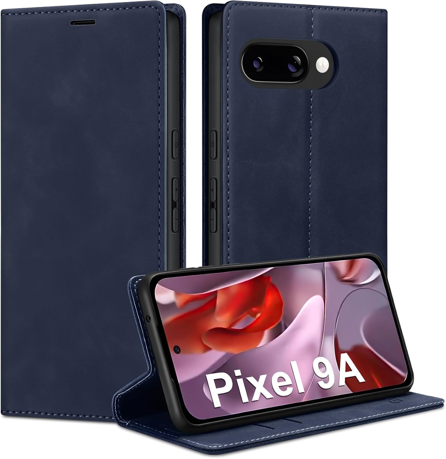 Калъф за мобилен телефон за Google Pixel 9a, кожен, първокласен сгъваем портфейл с магнитен слот за карти, функция стойка, защитен калъф, удароустойчив калъф за Google Pixel 9a, син