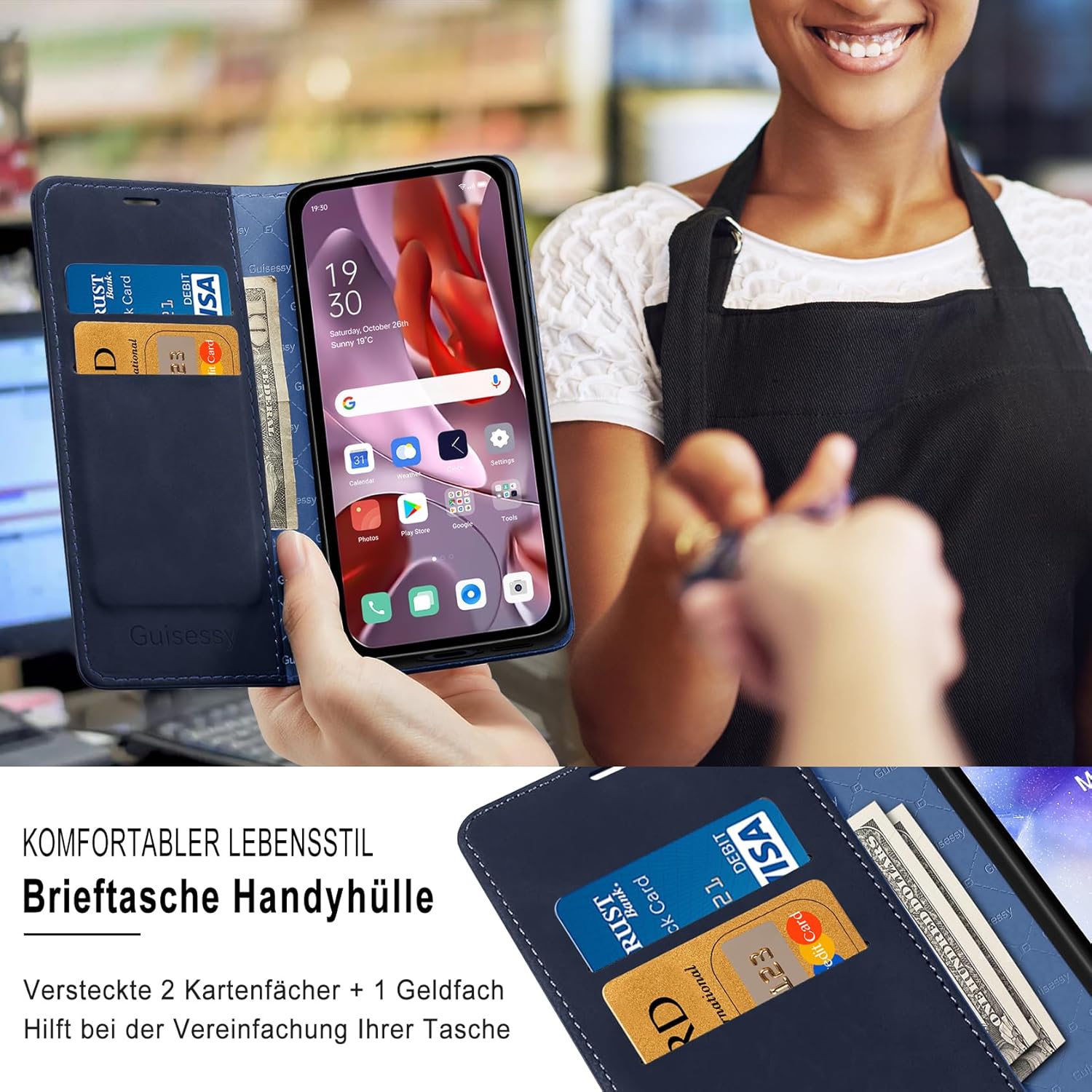• Вградено магнитно закопчаване: Калъфът за мобилен телефон Guisessy за Samsung Galaxy S25 FE има вградено магнитно закопчаване, може лесно да се отваря и затваря, прави използването на телефона по-лесно и удобно. Вграденото силно магнитно закопчаване подобрява магнитната връзка, предпазва телефона ви, когато не се използва, като ефективно предотвратява случайно отваряне на калъфа.