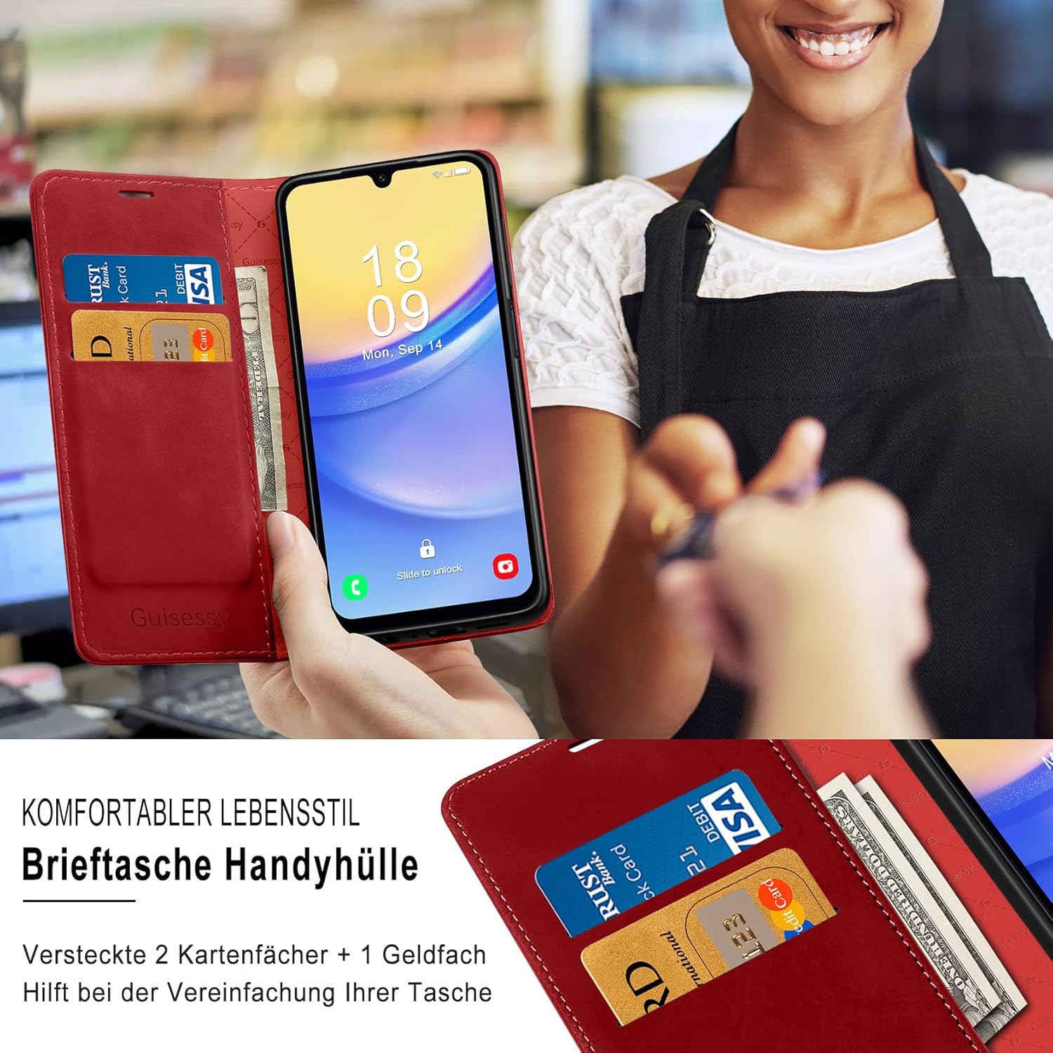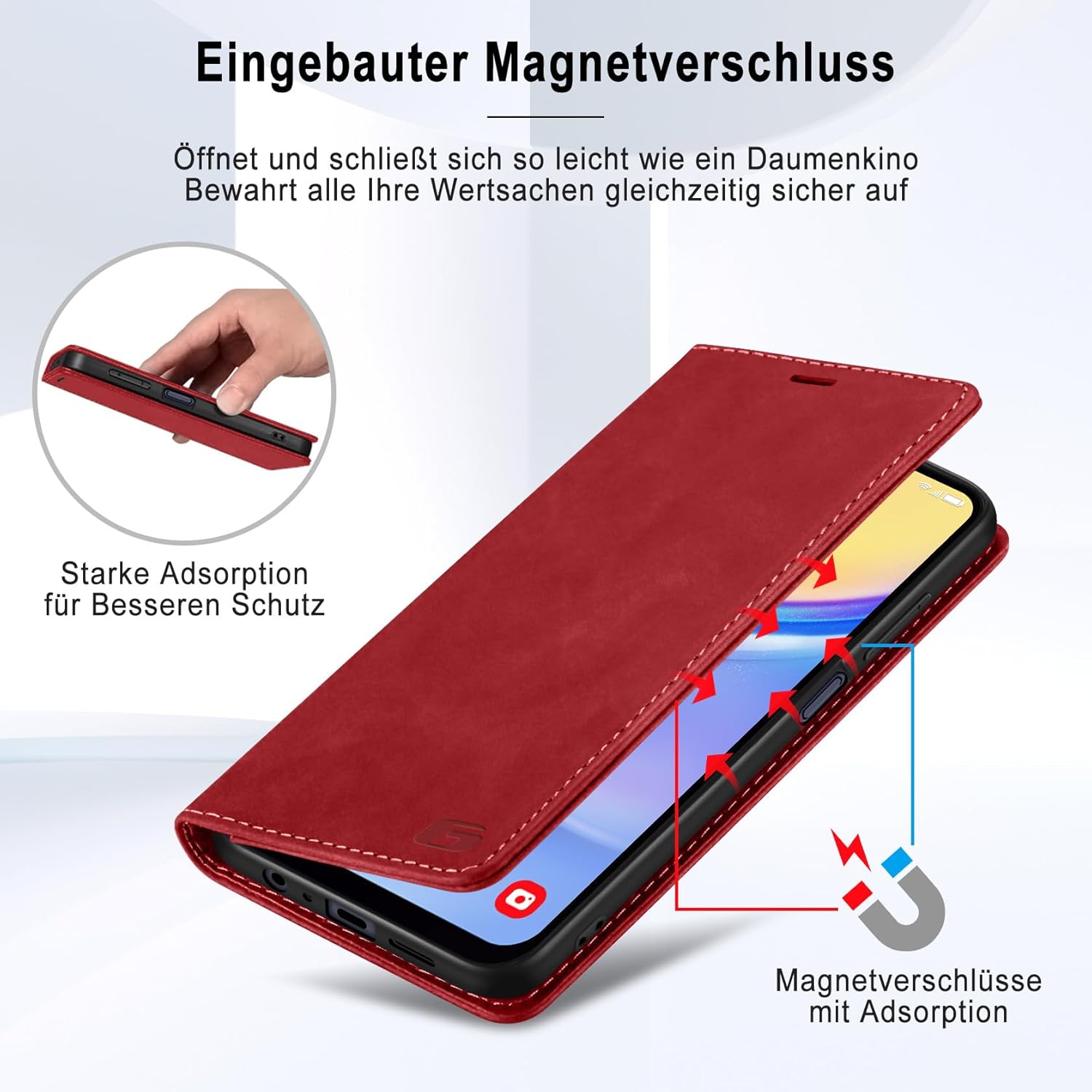 • Вградено магнитно закопчаване: Калъфът за мобилен телефон Guisessy за Samsung Galaxy S25 FE има вградено магнитно закопчаване, може лесно да се отваря и затваря, прави използването на телефона по-лесно и удобно. Вграденото силно магнитно закопчаване подобрява магнитната връзка, предпазва телефона ви, когато не се използва, като ефективно предотвратява случайно отваряне на калъфа.
