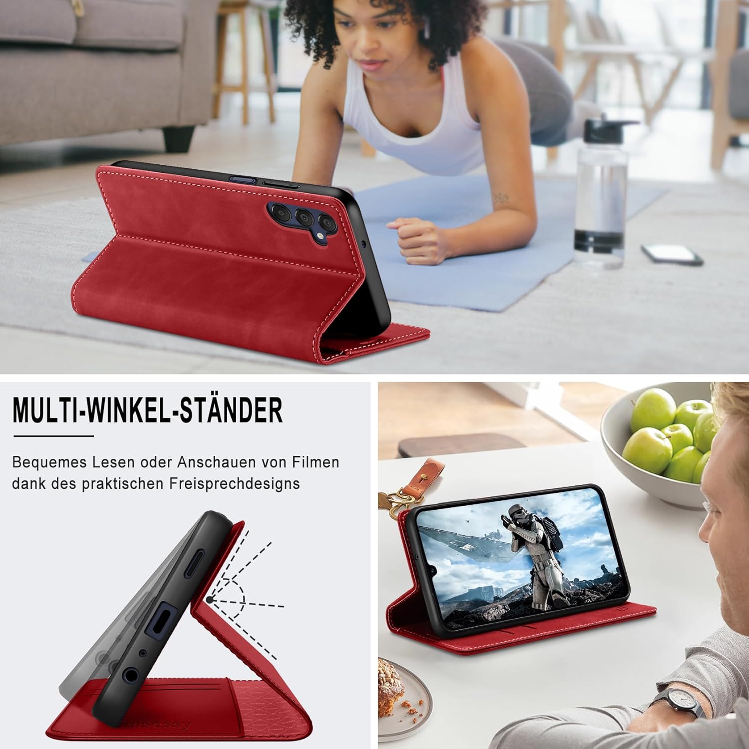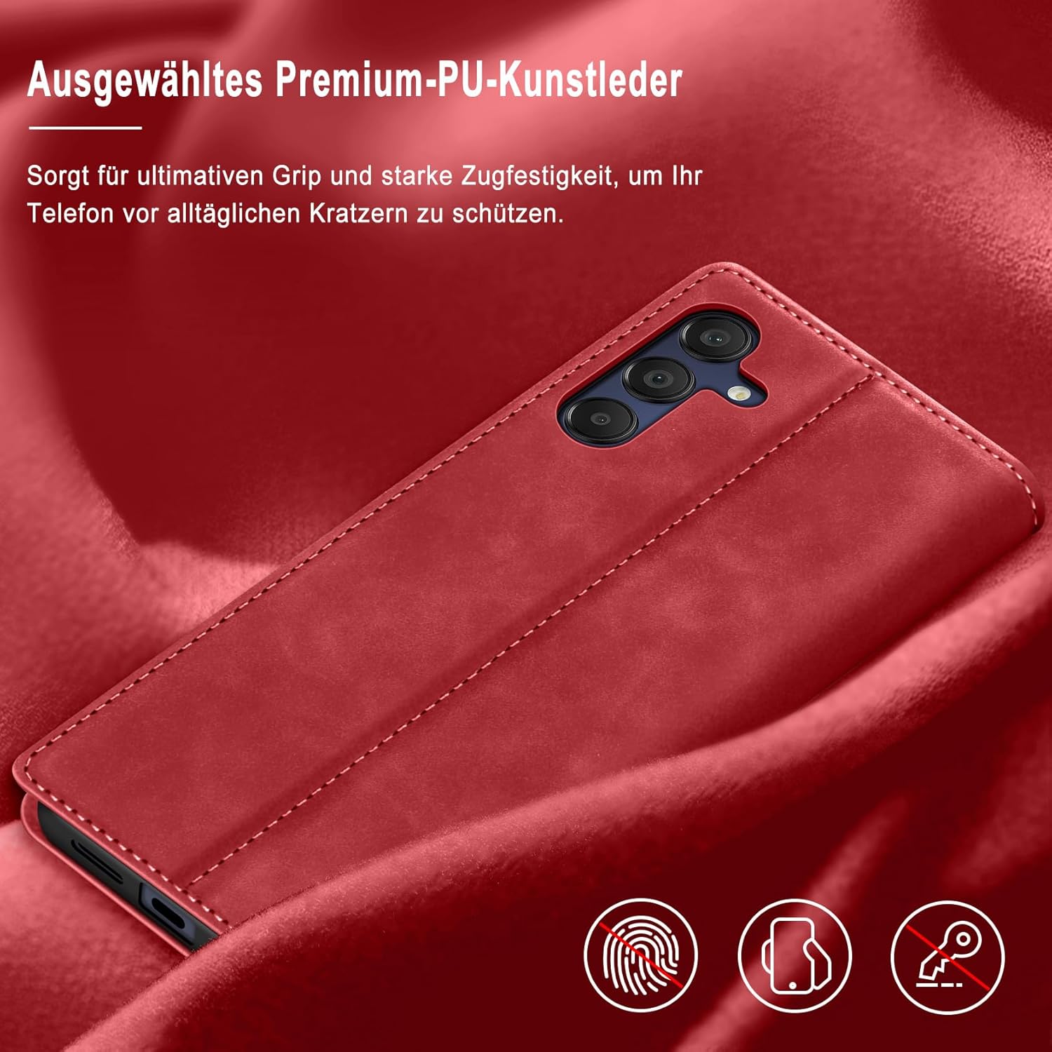 • Премиум PU кожа: Този калъф-портфейл за Samsung Galaxy S25 FE 5G е изработен от висококачествена изкуствена кожа PU и мек и гладък силиконов TPU. Елегантен външен вид, качествената PU има деликатен захват и силна якост на опън, но също така е удароустойчив и осигурява максимална защита от замърсявания, удари и драскотини, осигурявайки отлична 360-градусова всестранна защита.