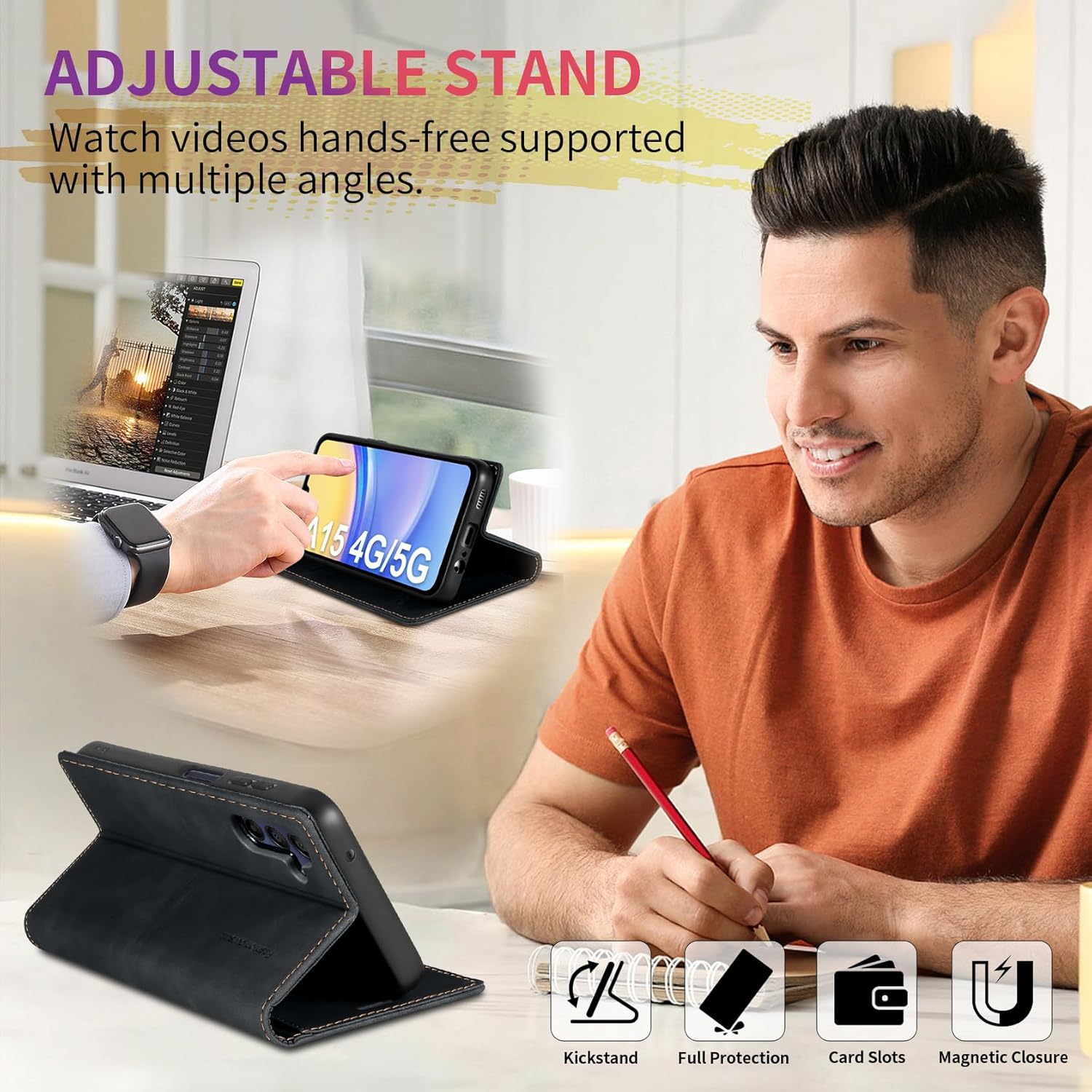 • Функция за стойка: нашият съвместим със Samsung Galaxy S25 FE защитен калъф държи телефона ви в хоризонтално положение, което улеснява гледането на филми с множество ъгли на гледане, разговорите с приятели в свободното време и правенето на групови снимки с ограничено време.