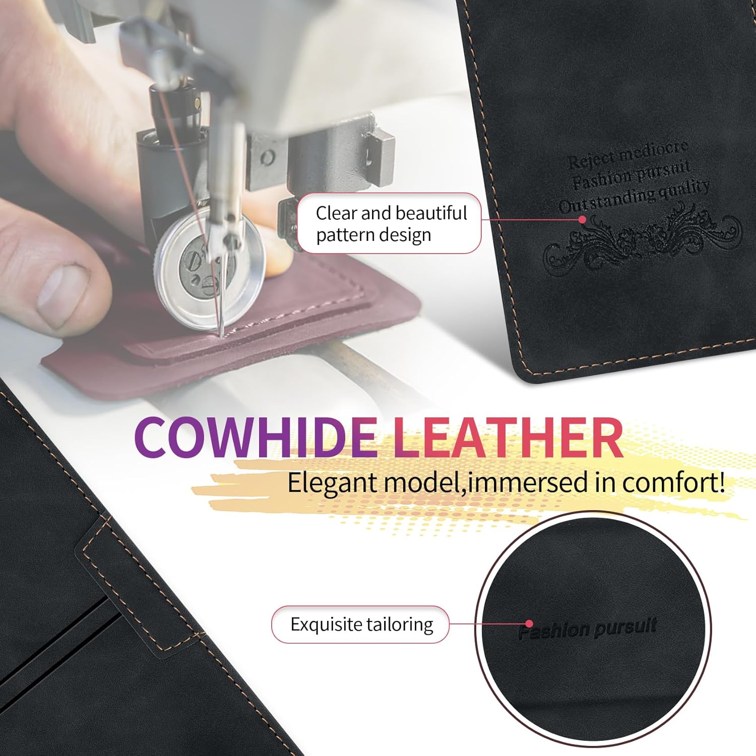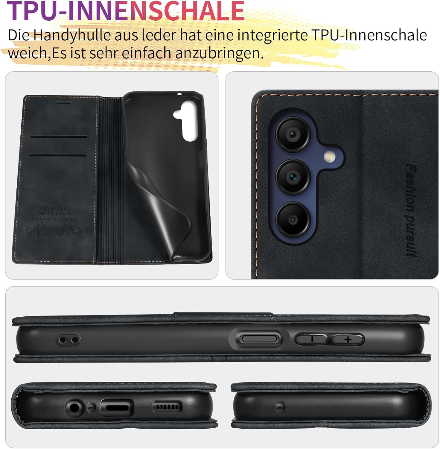 • Премиум PU кожа: Този калъф-портфейл за Samsung Galaxy S25 FE 5G е изработен от висококачествена изкуствена кожа PU и мек и гладък силиконов TPU. Елегантен външен вид, качествената PU има деликатен захват и силна якост на опън, но също така е удароустойчив и осигурява максимална защита от замърсявания, удари и драскотини, осигурявайки отлична 360-градусова всестранна защита.